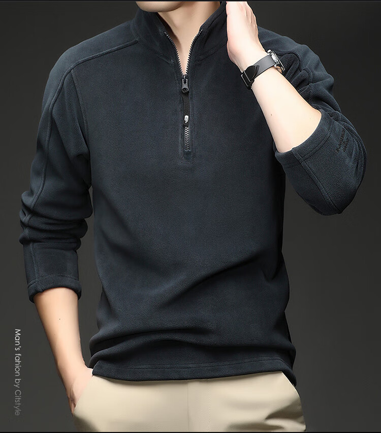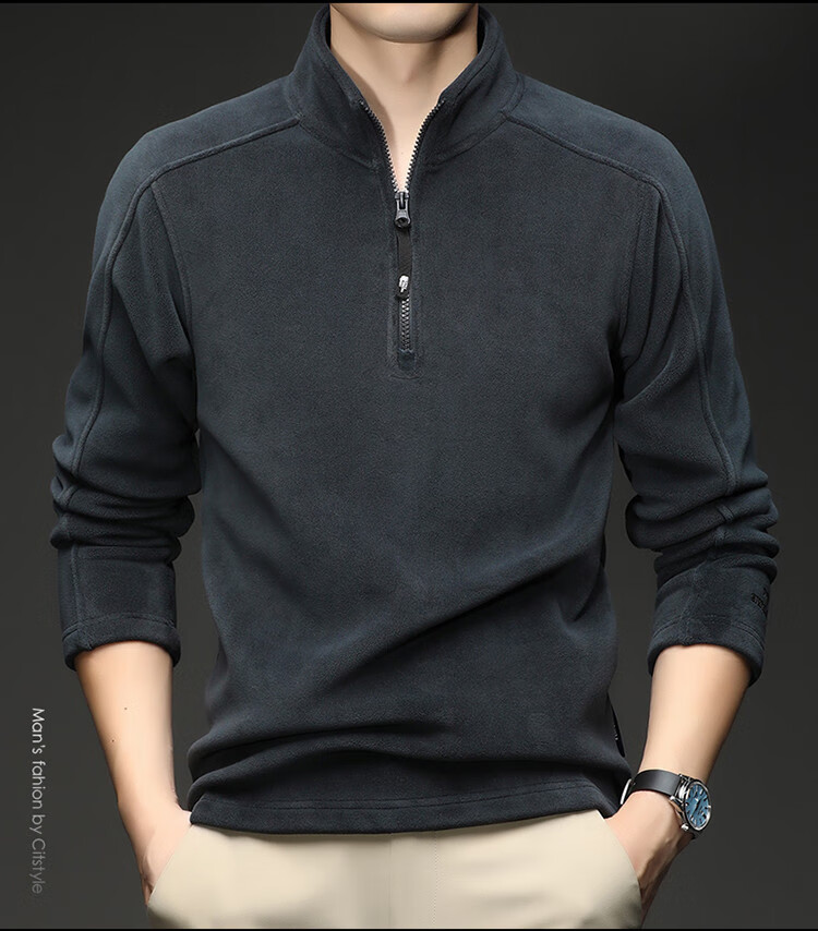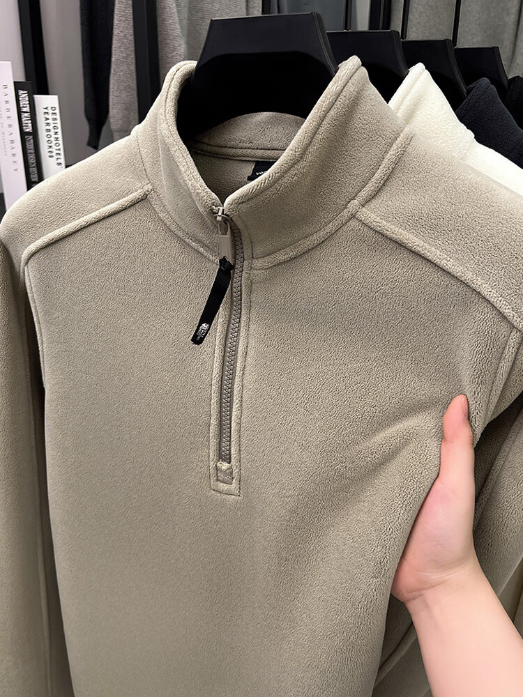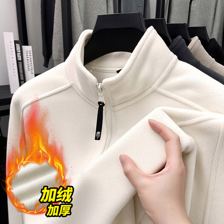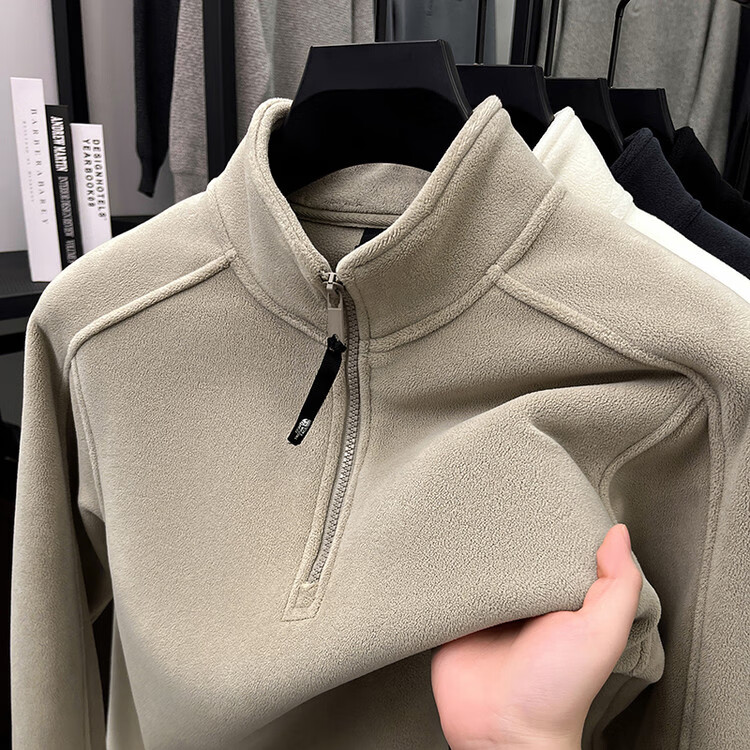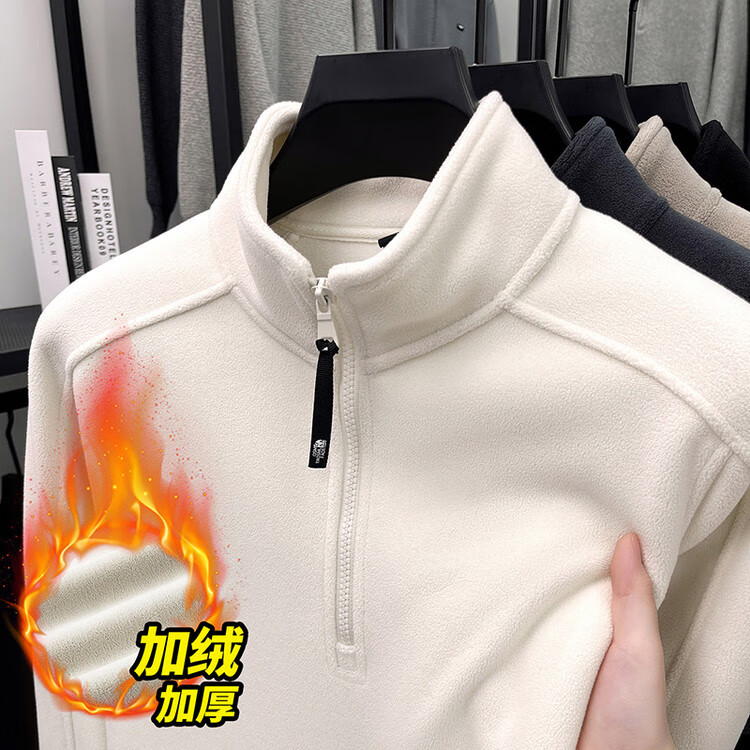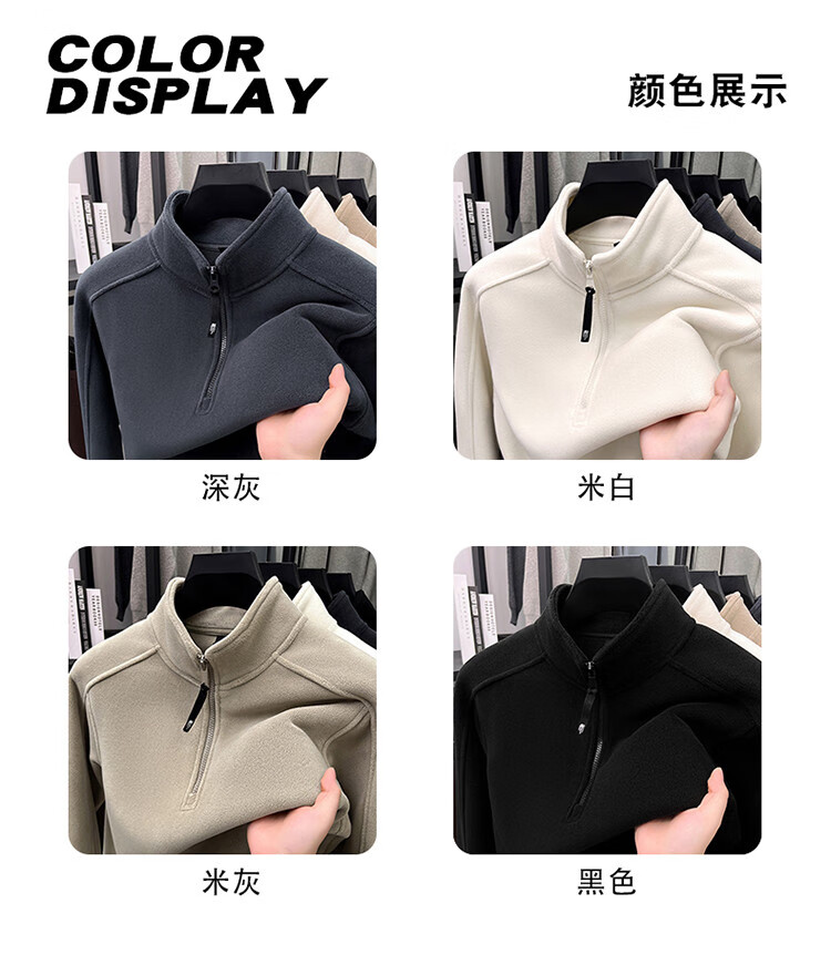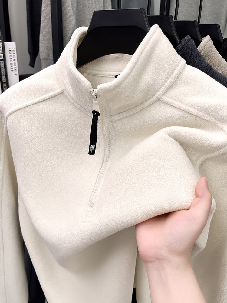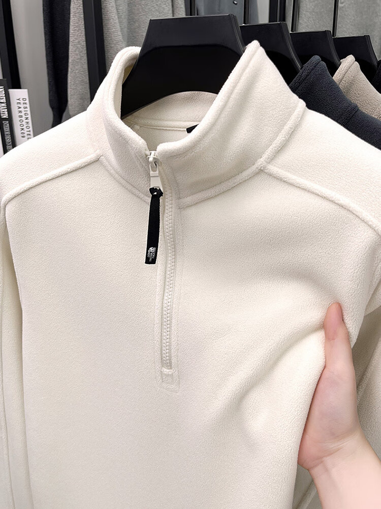 nasawassup轻奢奥粒绒半拉链立领卫衣男士春秋冬季加厚保暖舒适摇粒绒打底衫 黑色 XL
