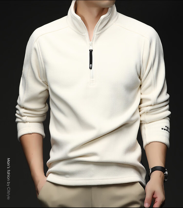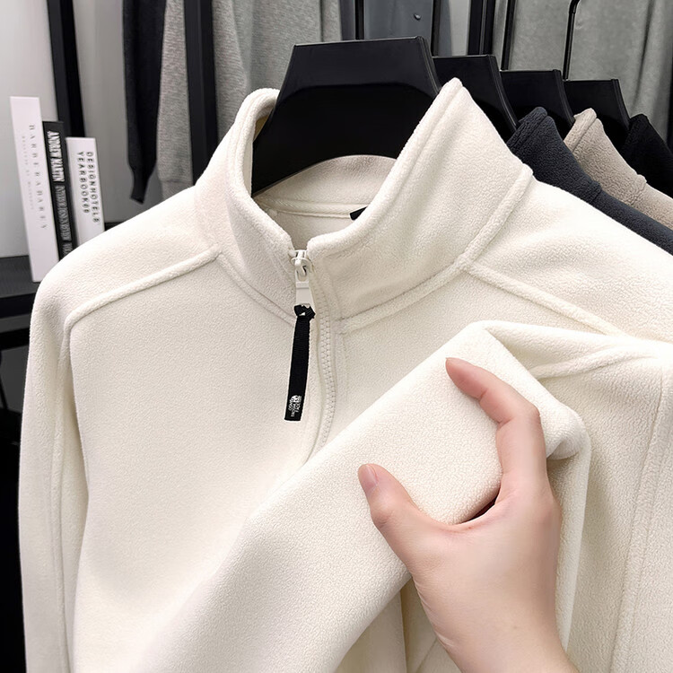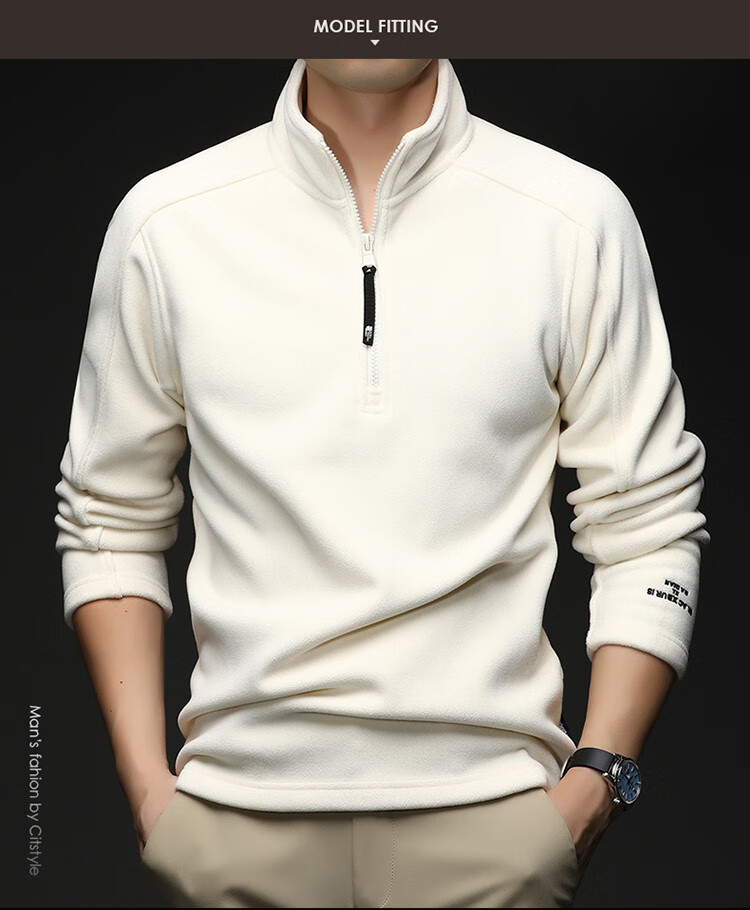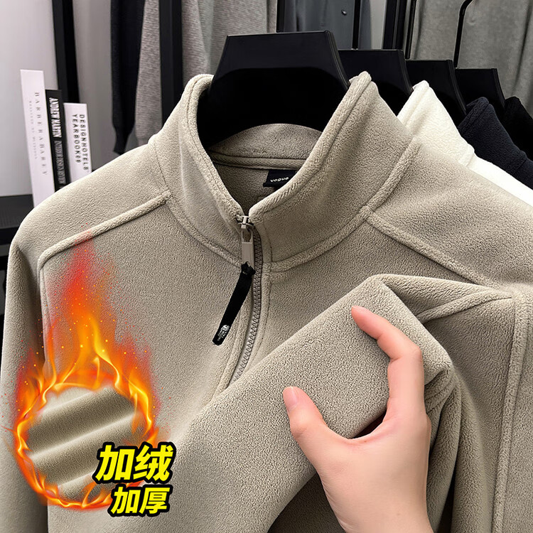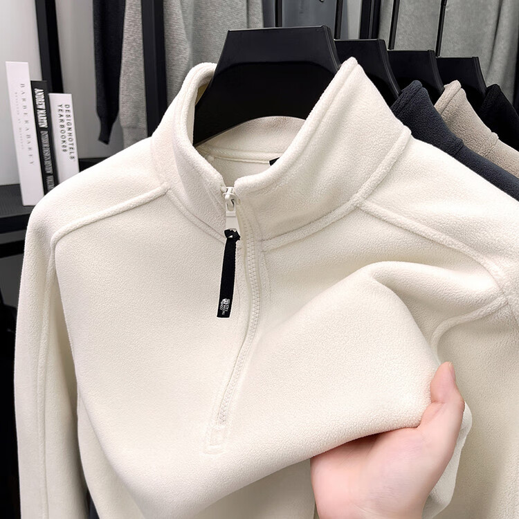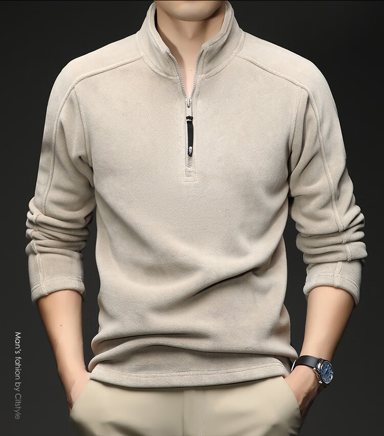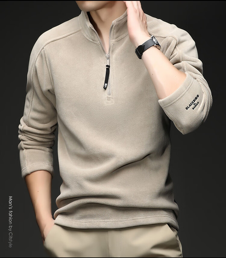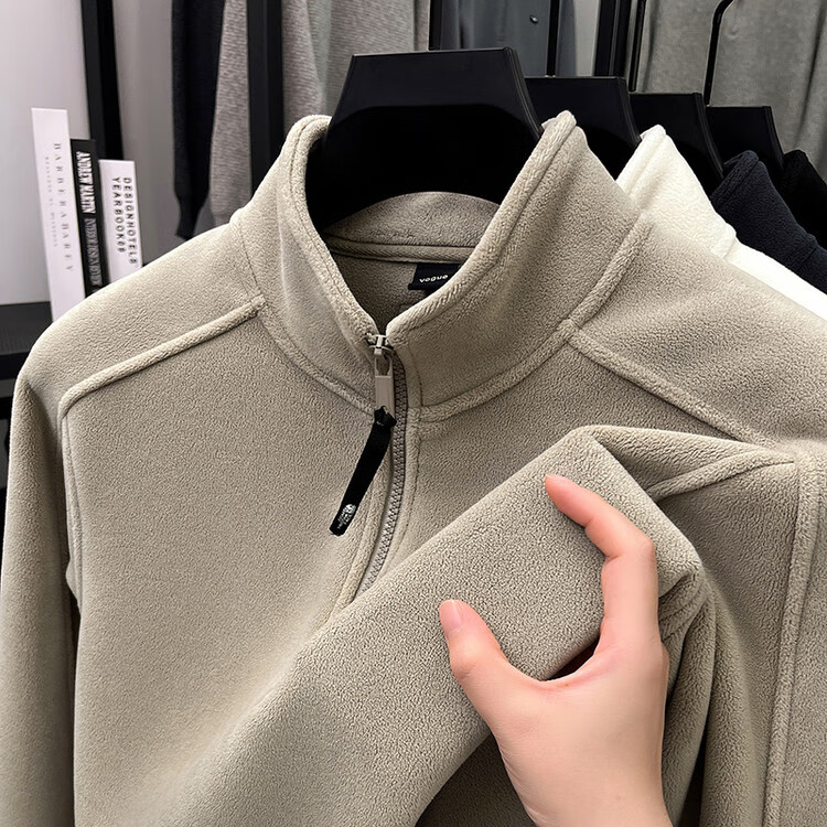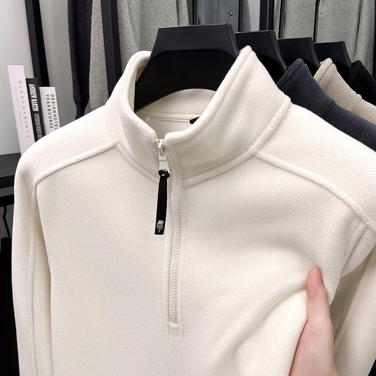nasawassup轻奢奥粒绒半拉链立领卫衣男士春秋冬季加厚保暖舒适摇粒绒打底衫 黑色 XL