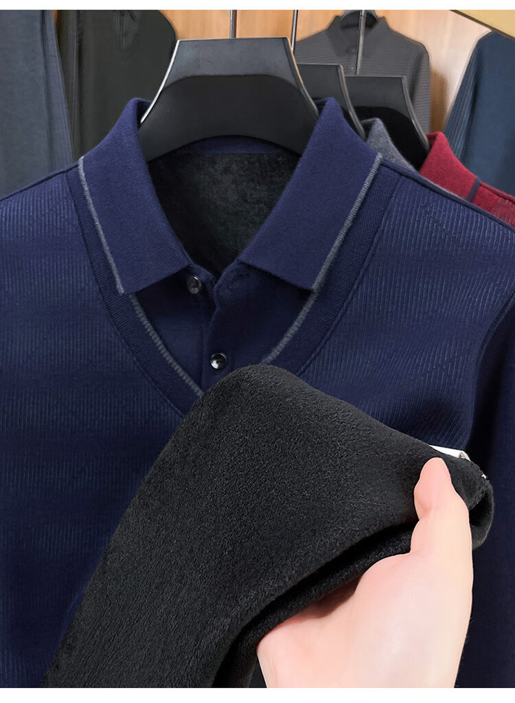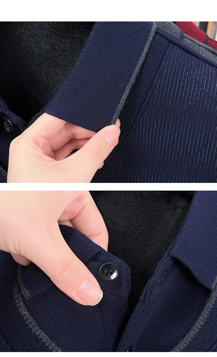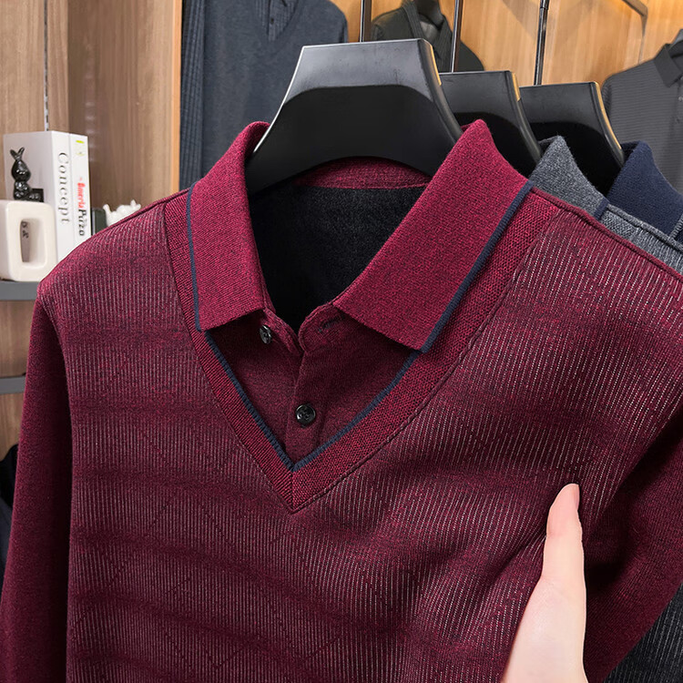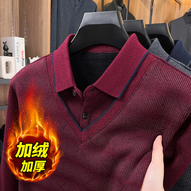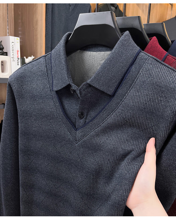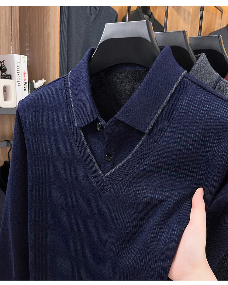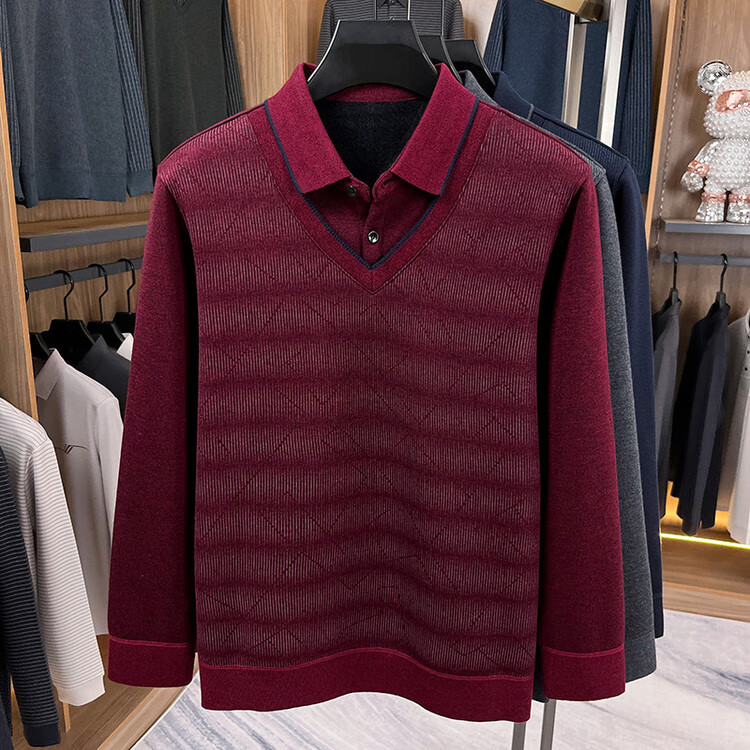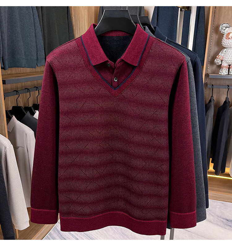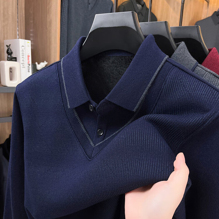 Nasawassup light luxury men's middle-aged and elderly fake two-piece sweatshirt shirt collar plus velvet thickening warm dad sweater base sweater navy blue XL 52