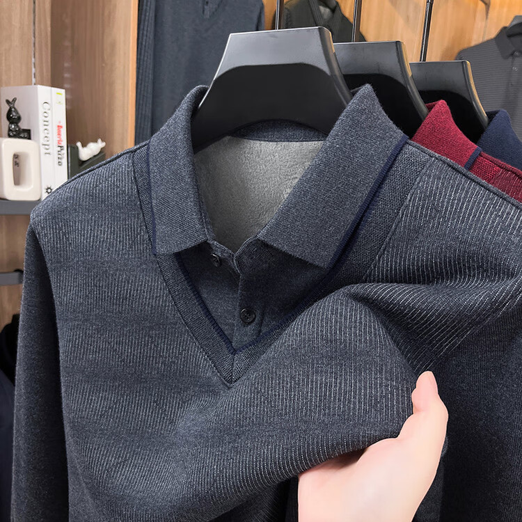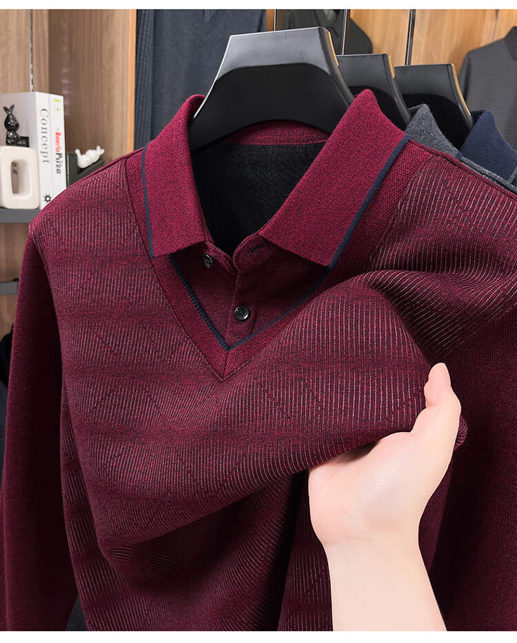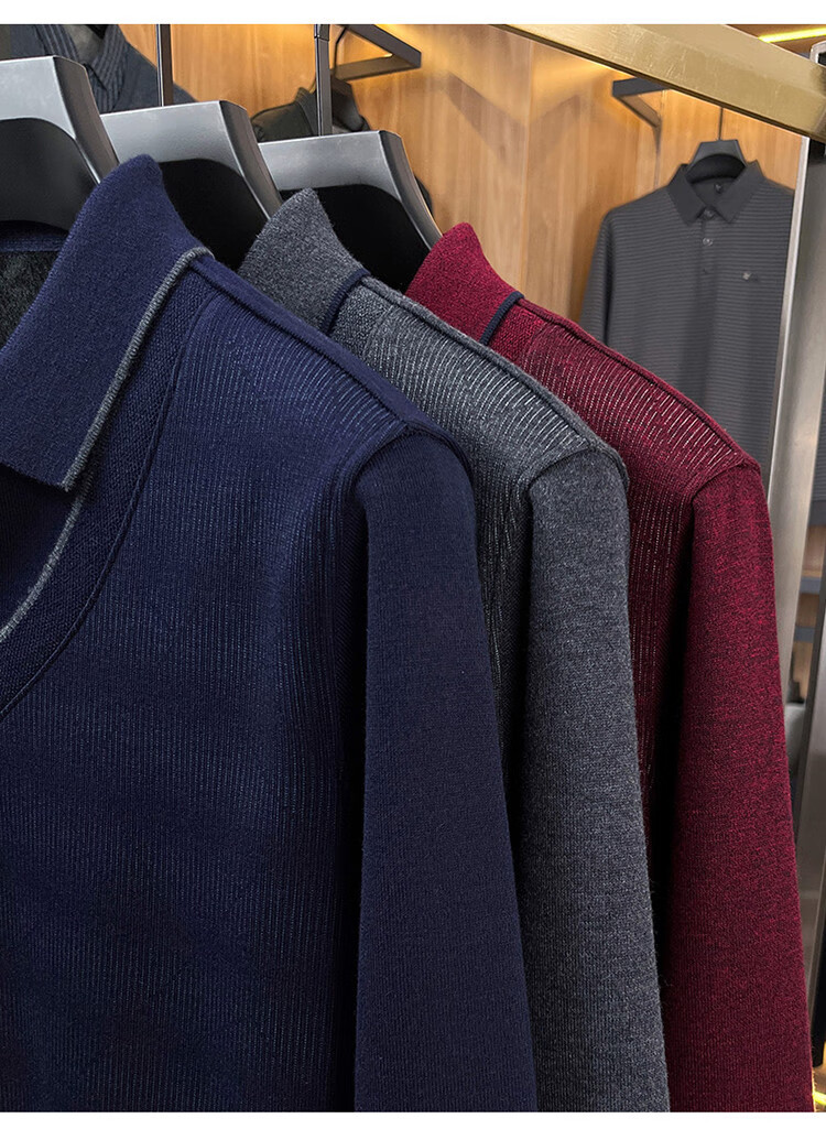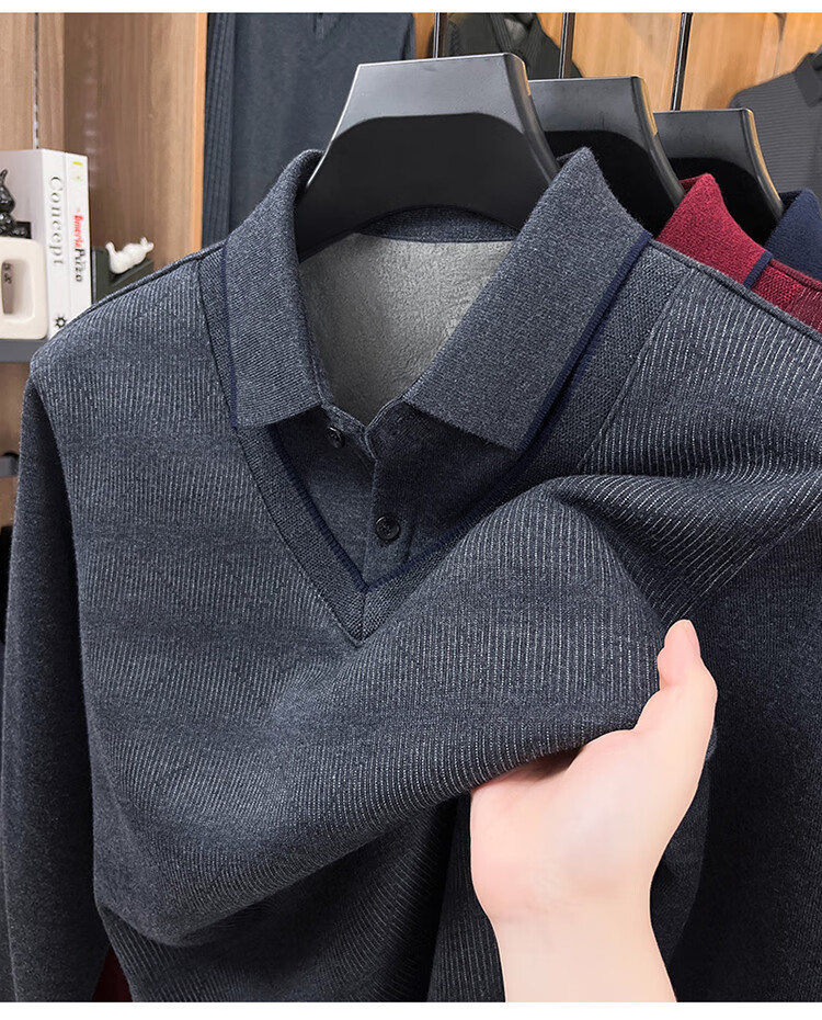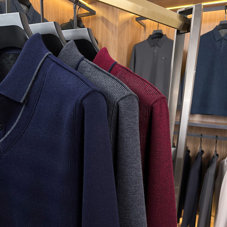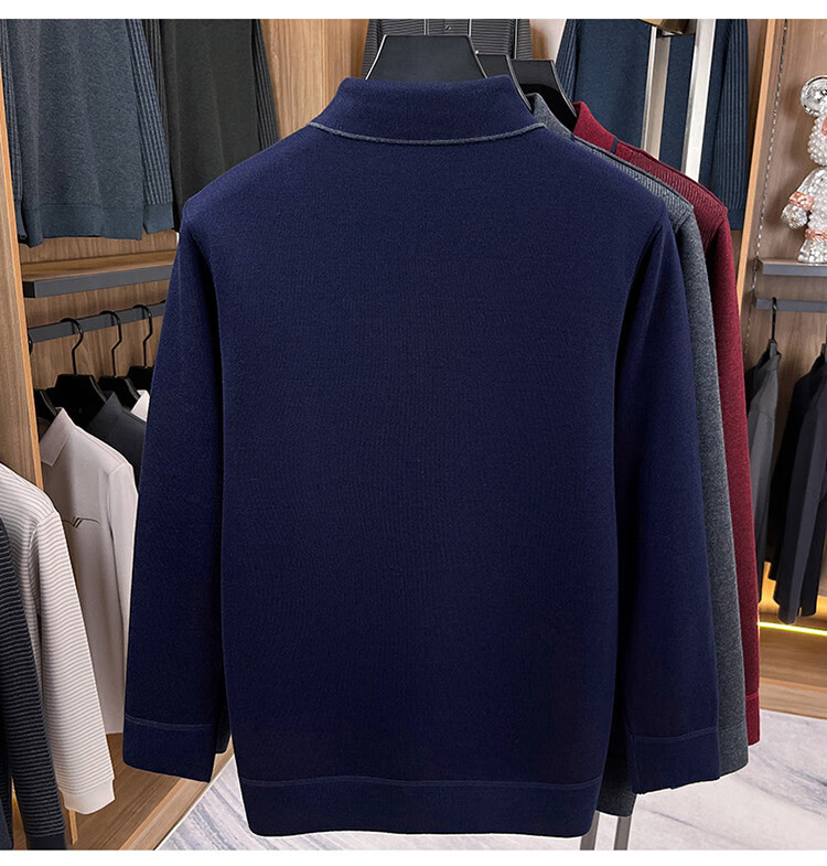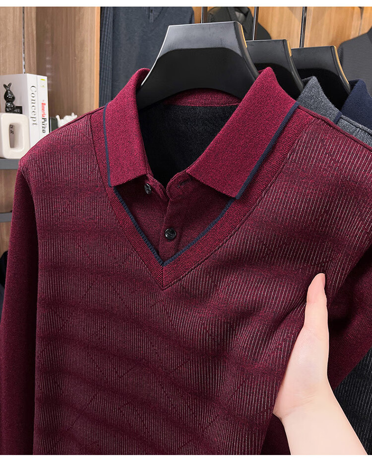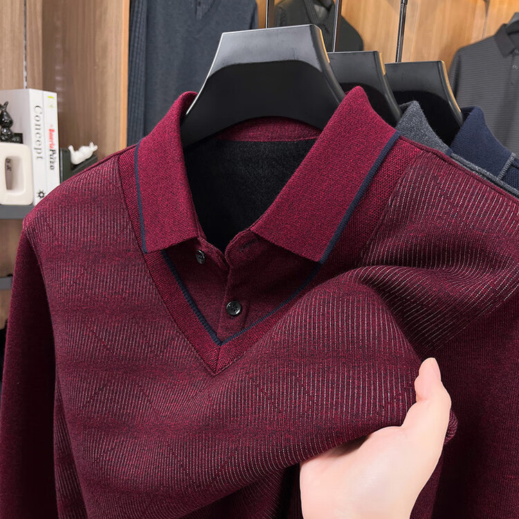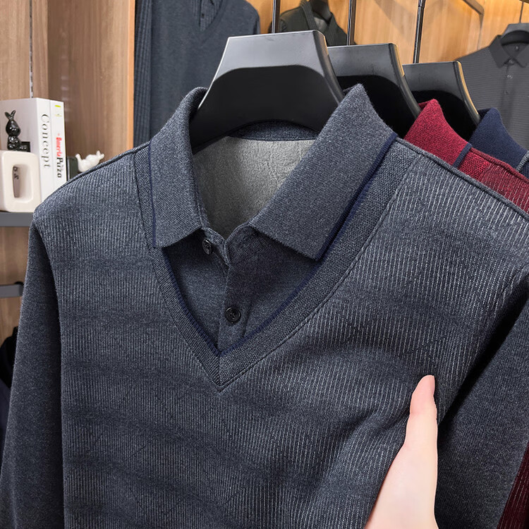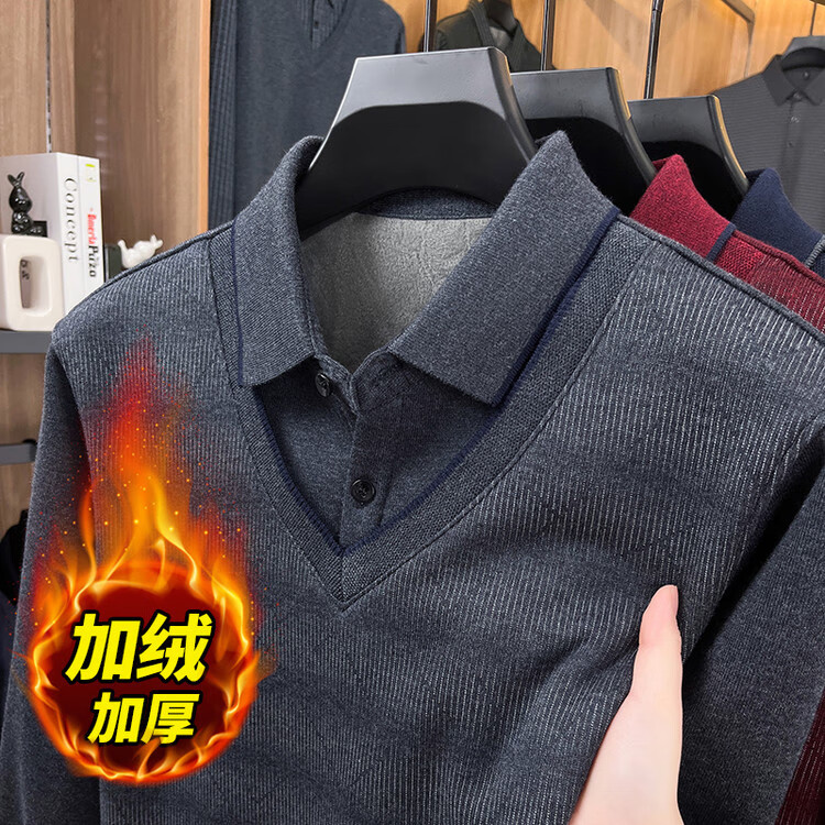 Nasawassup light luxury men's middle-aged and elderly fake two-piece sweatshirt shirt collar plus velvet thickening warm dad sweater base sweater navy blue XL 52
