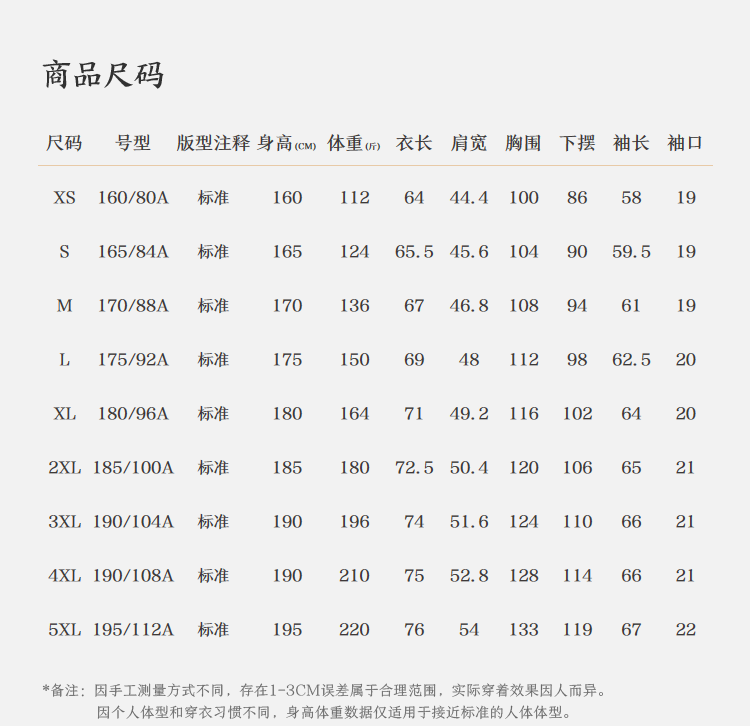 China (cm) 160-165/84-86 165-170 / 88-90 167-172 / 92-96 168-173 / 98-102 170-176 / 106-110