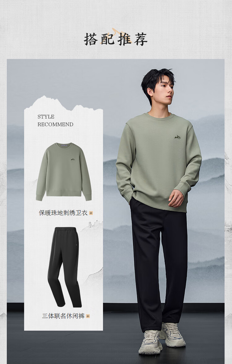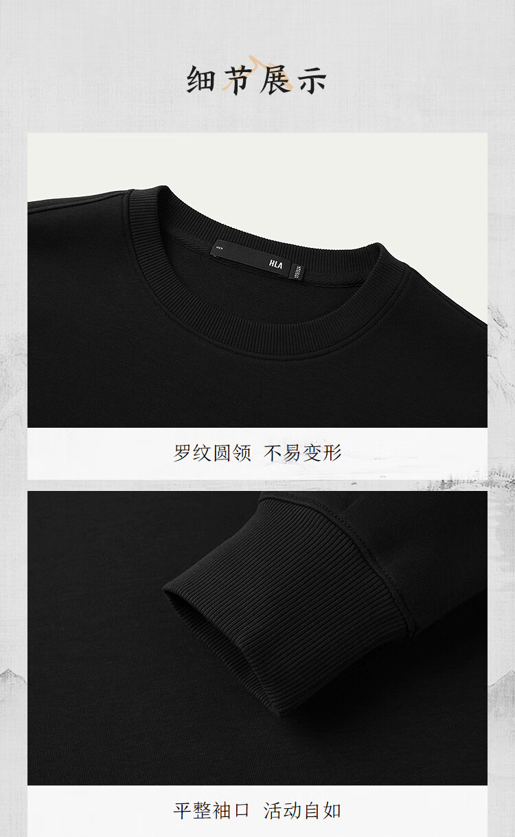 海澜之家(HLA)卫衣男秋山不在高系列圆领大码绣花柔软长袖男 黑色8S【加绒】 XL 180/96A 推荐151~164斤