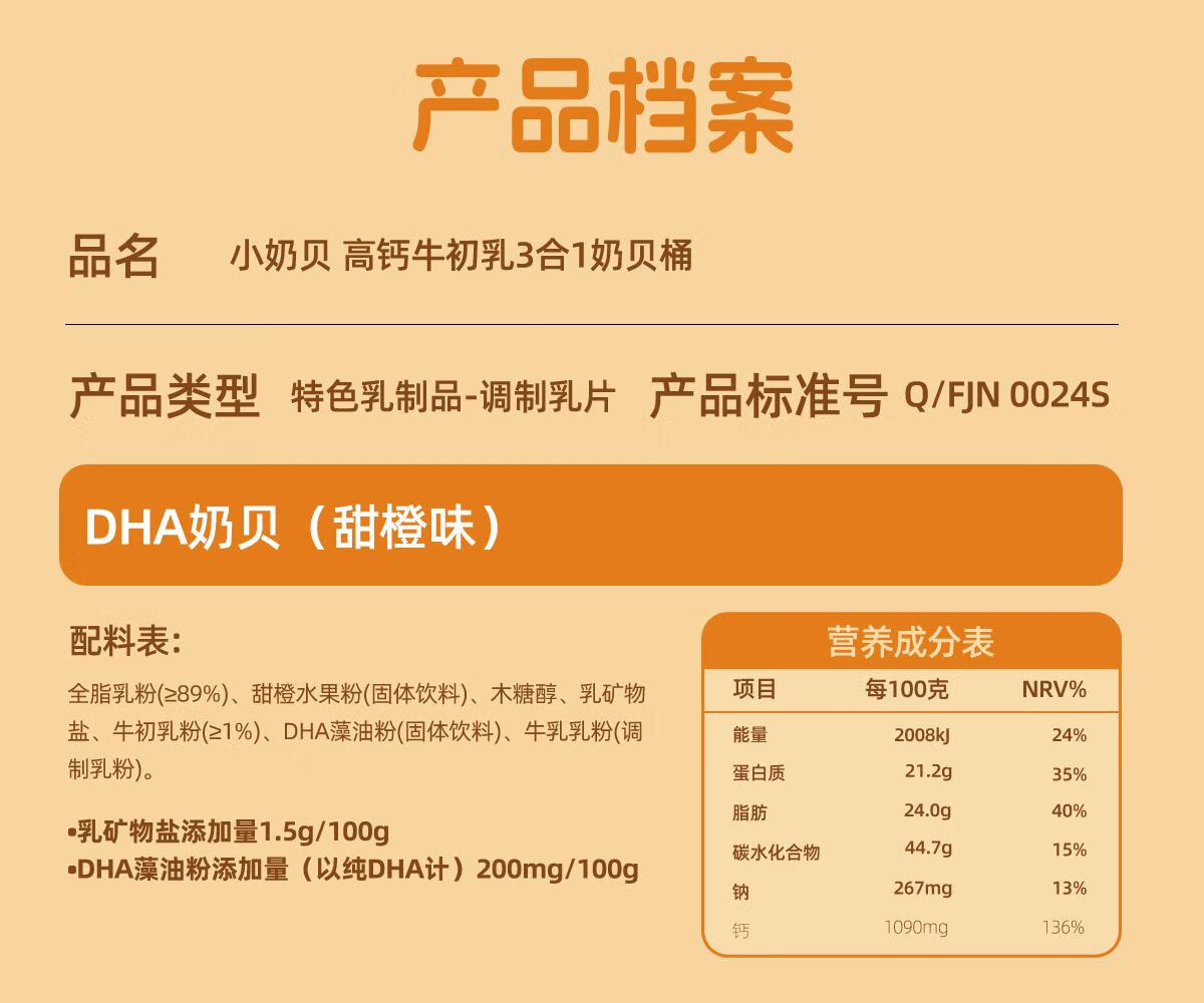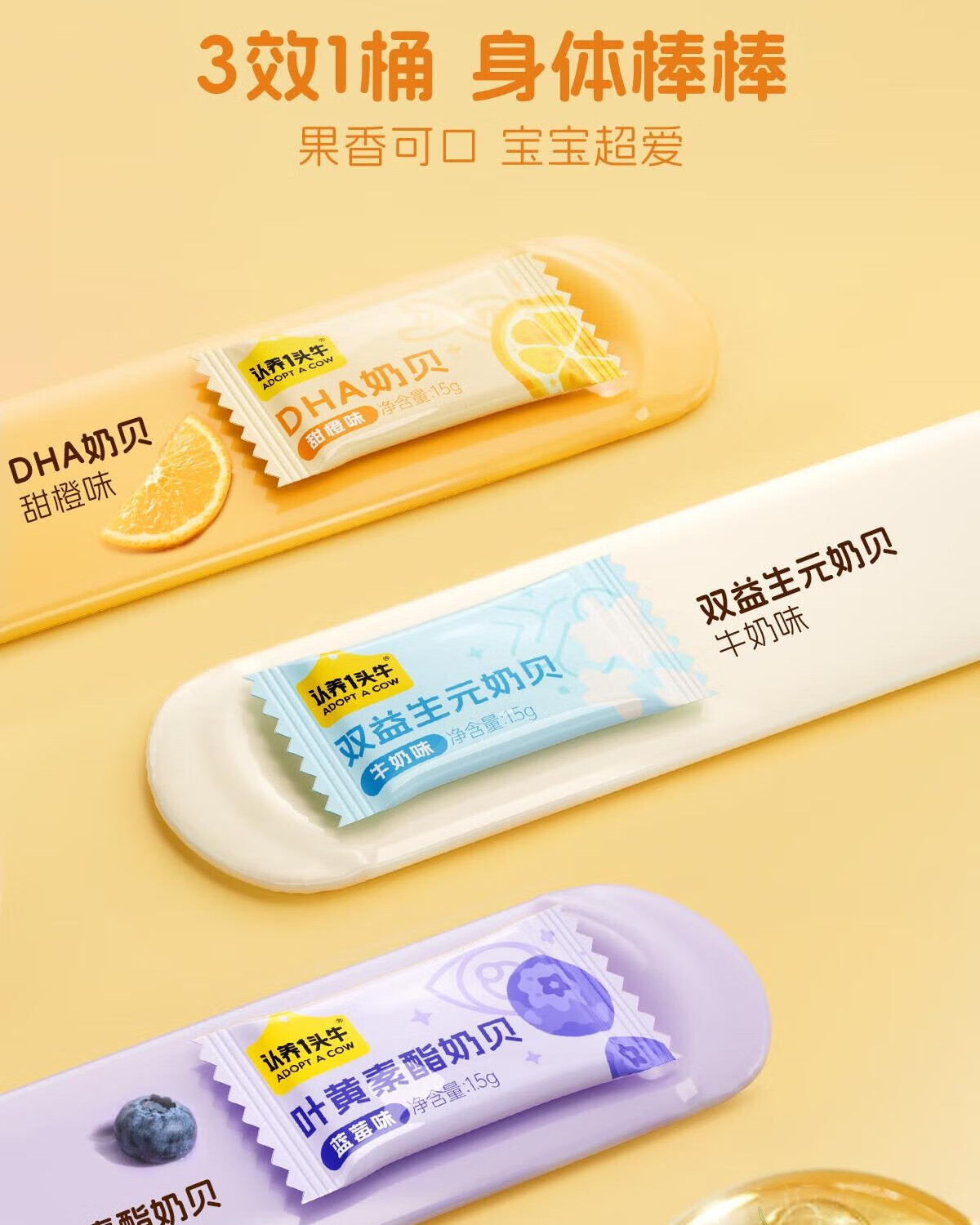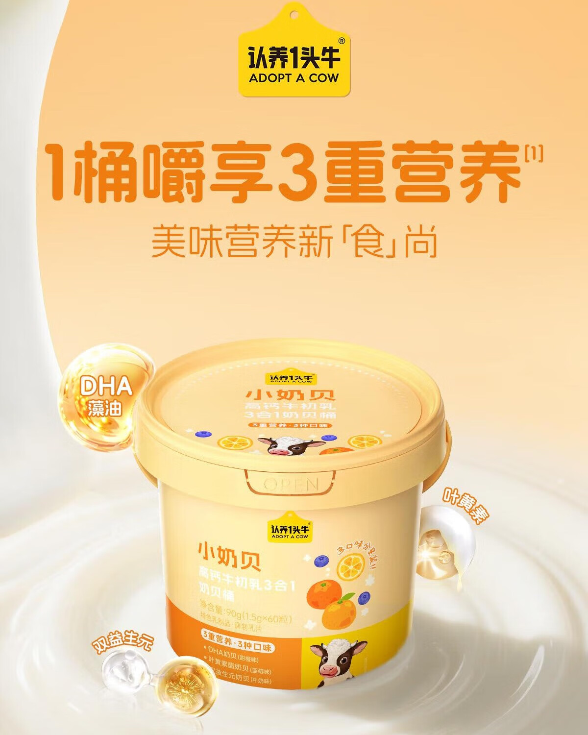 认养一头牛小奶贝高钙牛初乳DHA叶黄素益生元【10倍牛奶钙3重营养】 8罐【甜橙味+牛奶味+蓝莓味】
