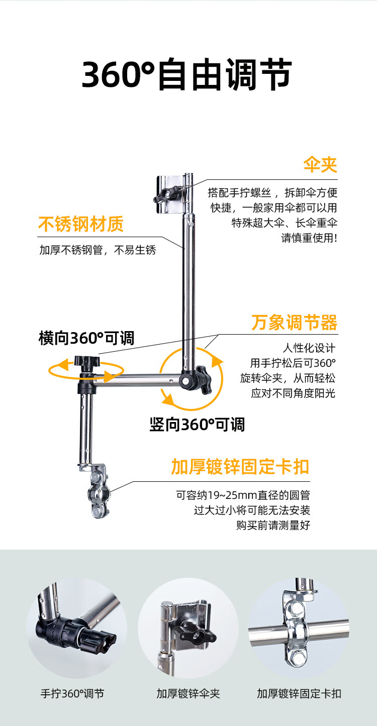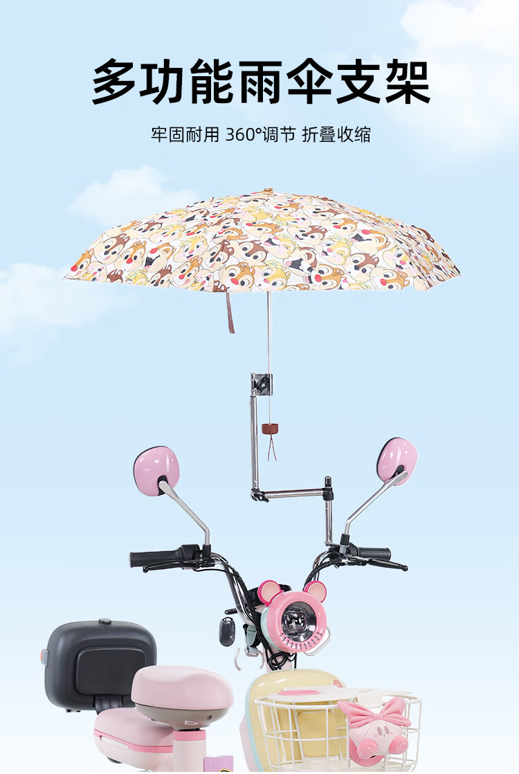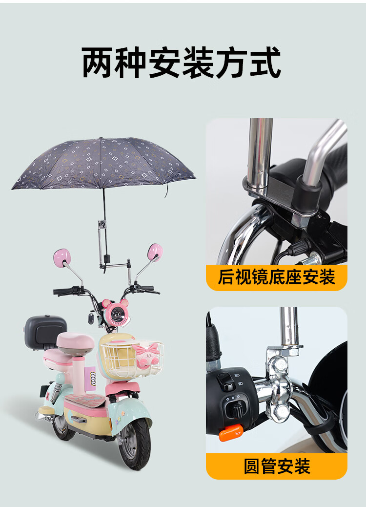 山头林村电动车雨伞支架电动车自行车撑伞架单车支架夹推车婴儿车固定神器 G1款-折叠支架(有后视镜选)