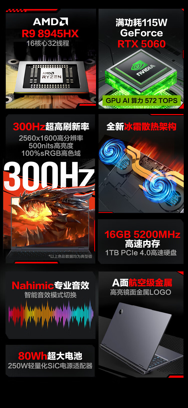 Mechanical Revolution (MECHREVO) Jiaolong 16Pro 16-Zoll neuer Gaming-Laptop 5050/5060/5070Ti Gaming-Laptop Flaggschiff AMD Ryzen R7/R9HX High-Brush AI-Design-Laptop R7 H255/5060/24G/Upgrade 1T/Trendy Grey