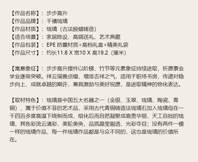 Millennium Glazed Zibo Glazed Bubu Gaosheng Crafts Ornaments Light Luxury Desktop High-Level Sensation Business Gifts for Leadership Promotion Bubu Gaosheng (100% Liuli) can be customized with free engraving