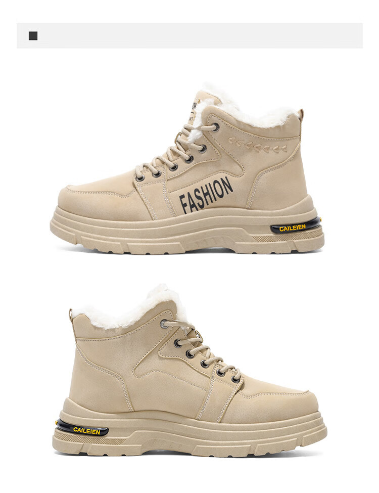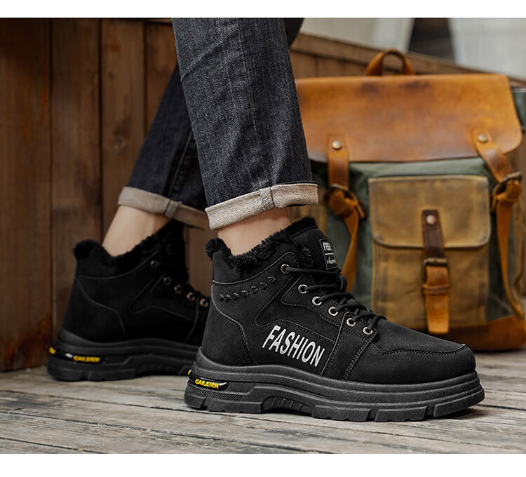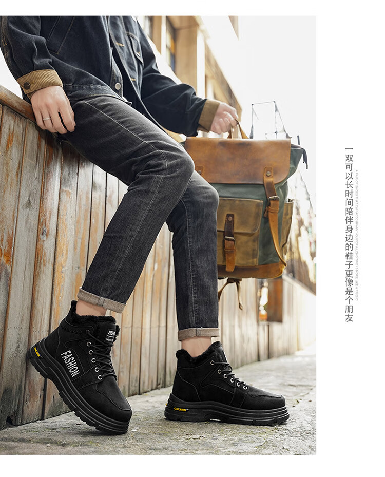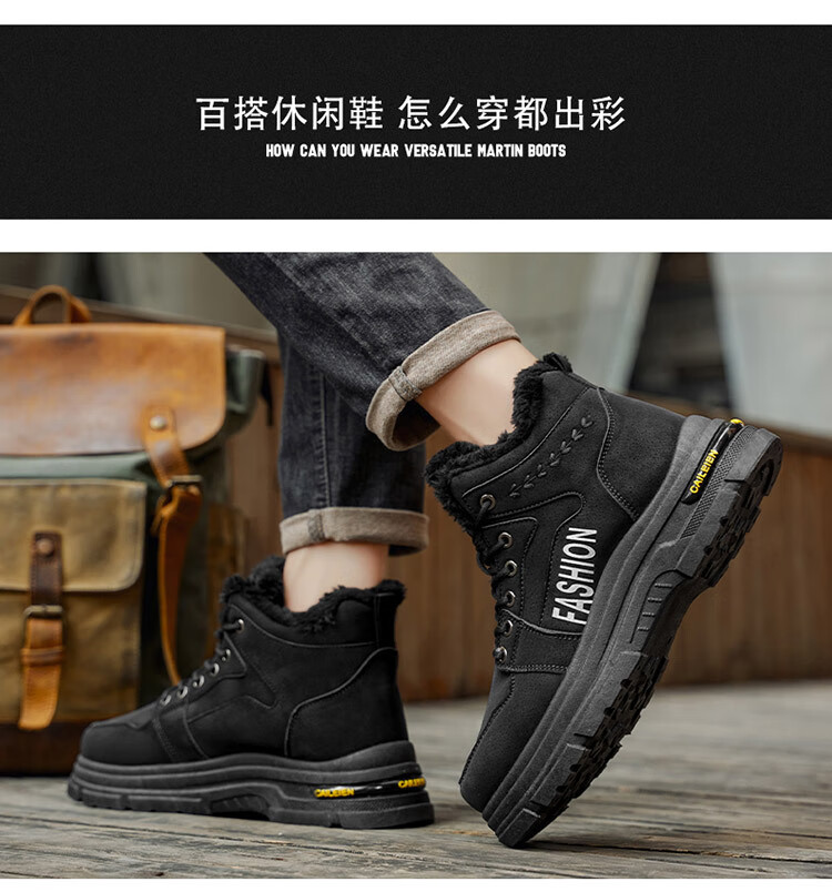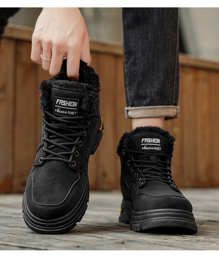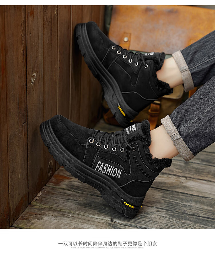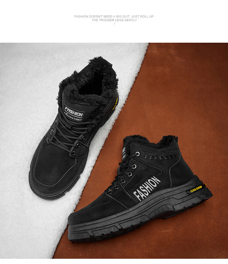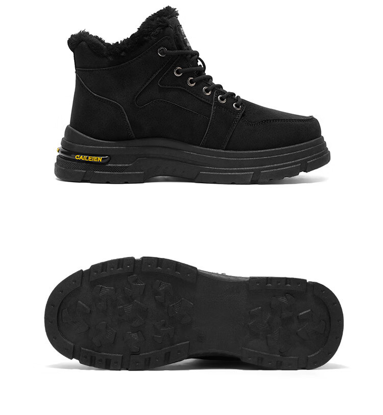 Снегоступы мужские зимние мужские туфли плюс бархатные высокие рабочие туфли нескользящие утолщенные теплые хлопчатобумажные туфли короткие сапоги страхование труда Ботинки Мартина черные плюс бархат 42