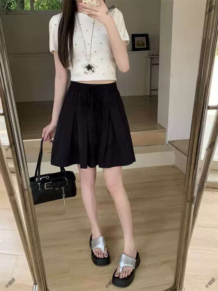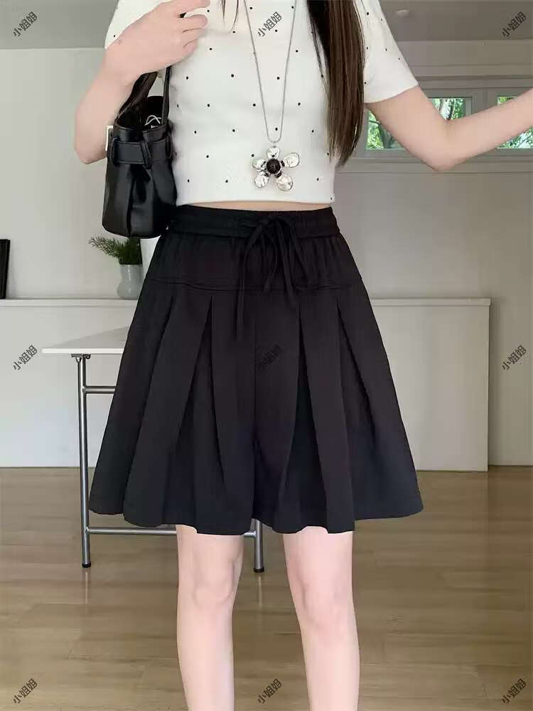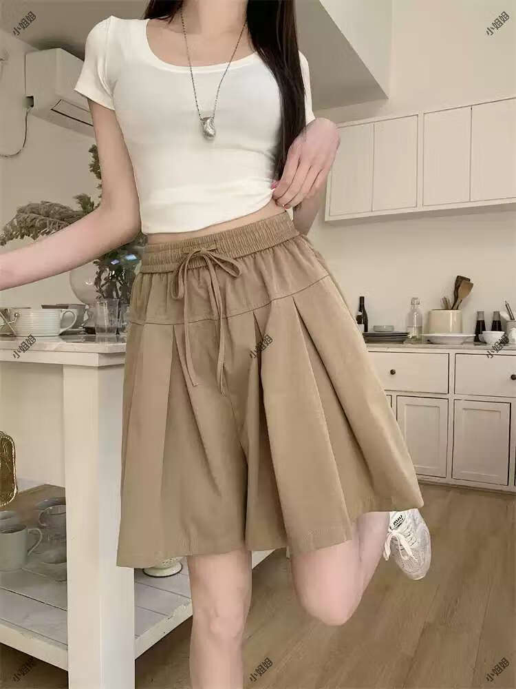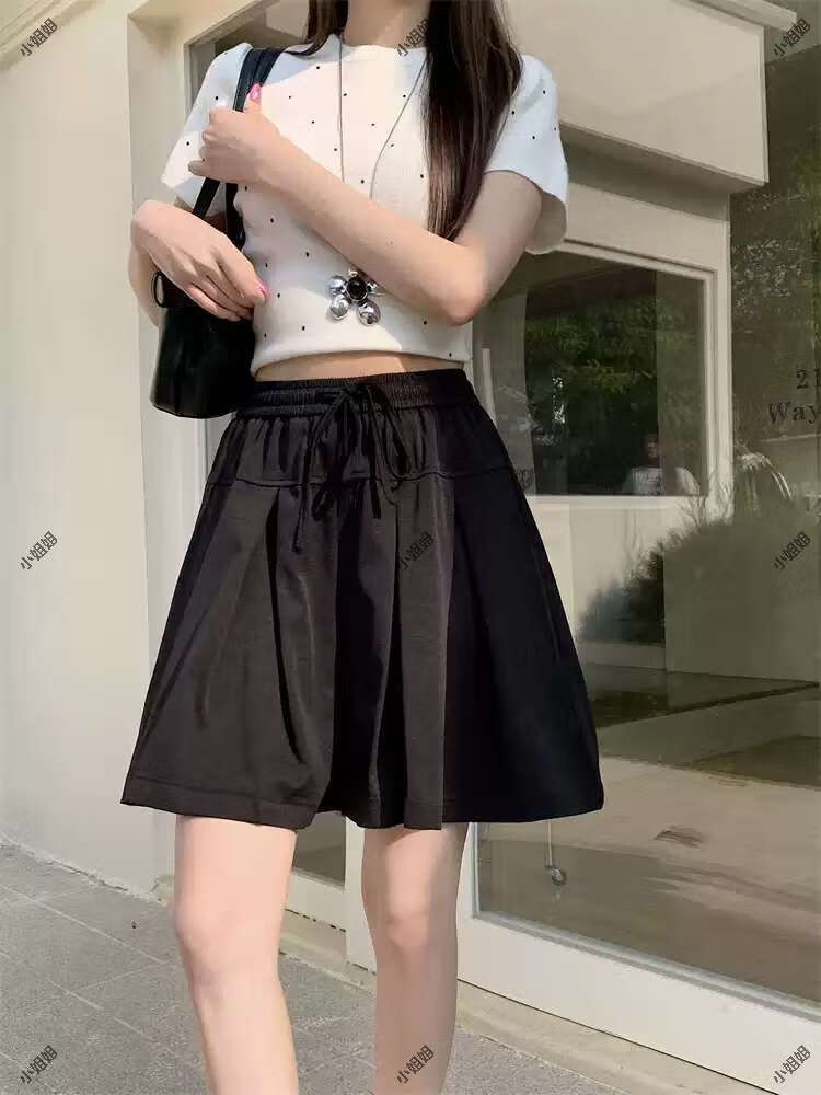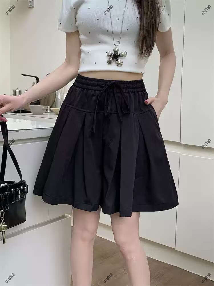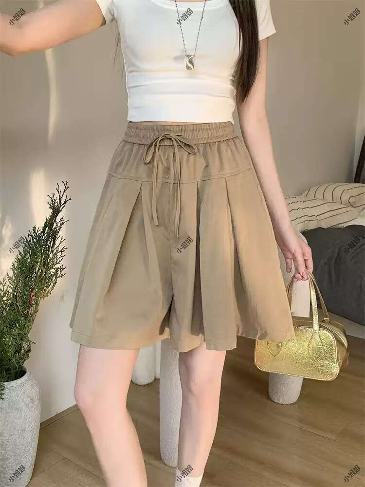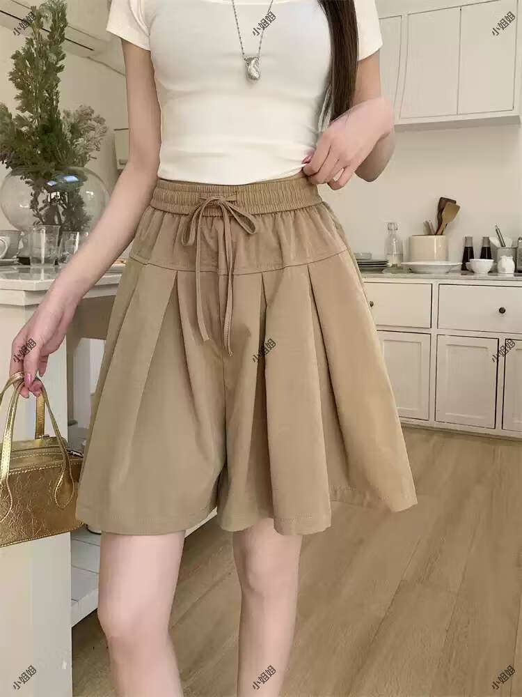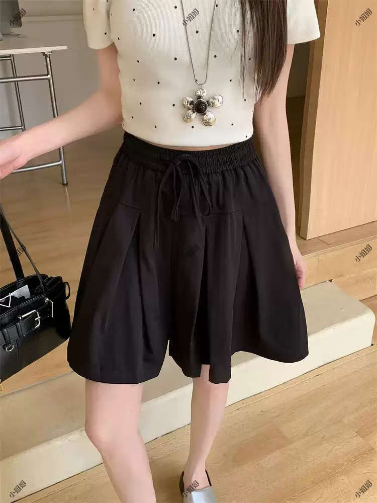 大码复古薄款休闲裤女2025新款夏季高腰阔腿裤胖MM显瘦五分短裤子 黑色 M M建议90100斤