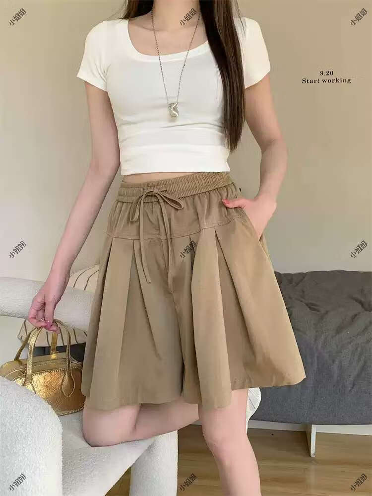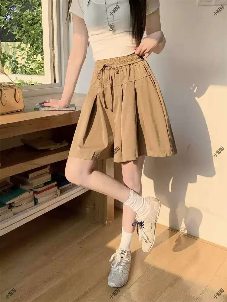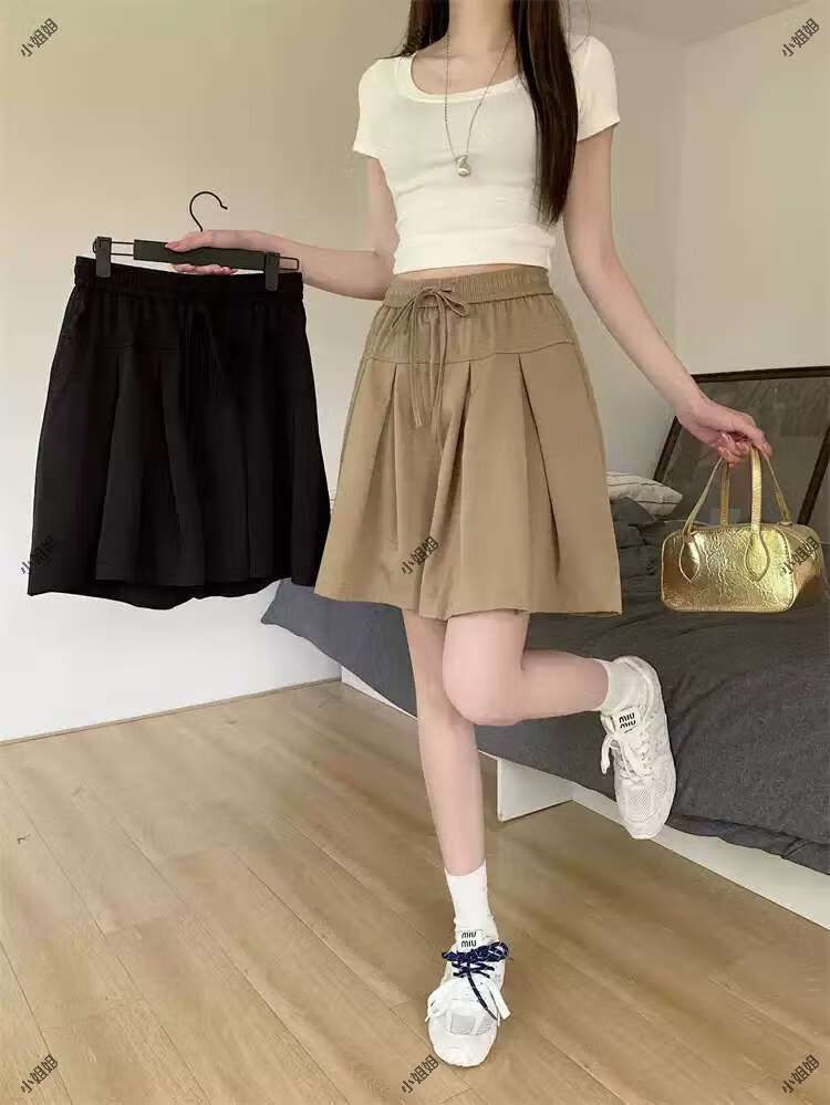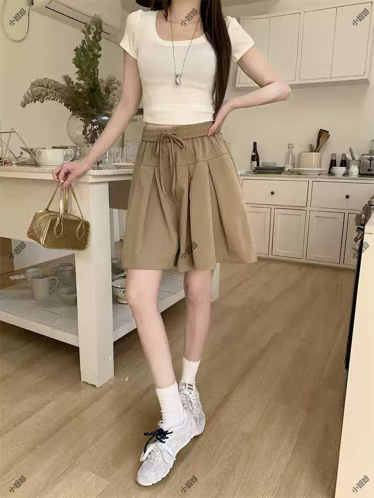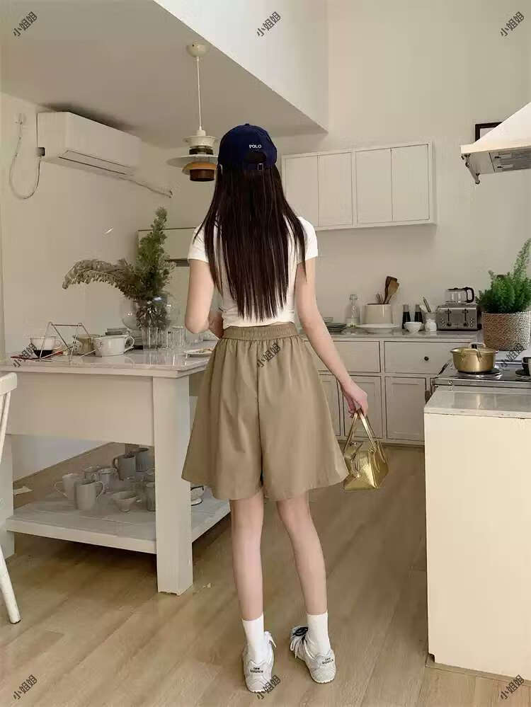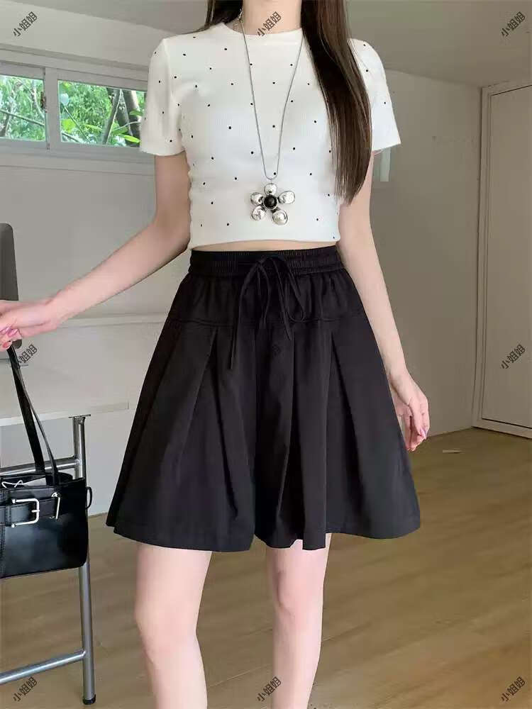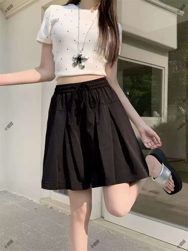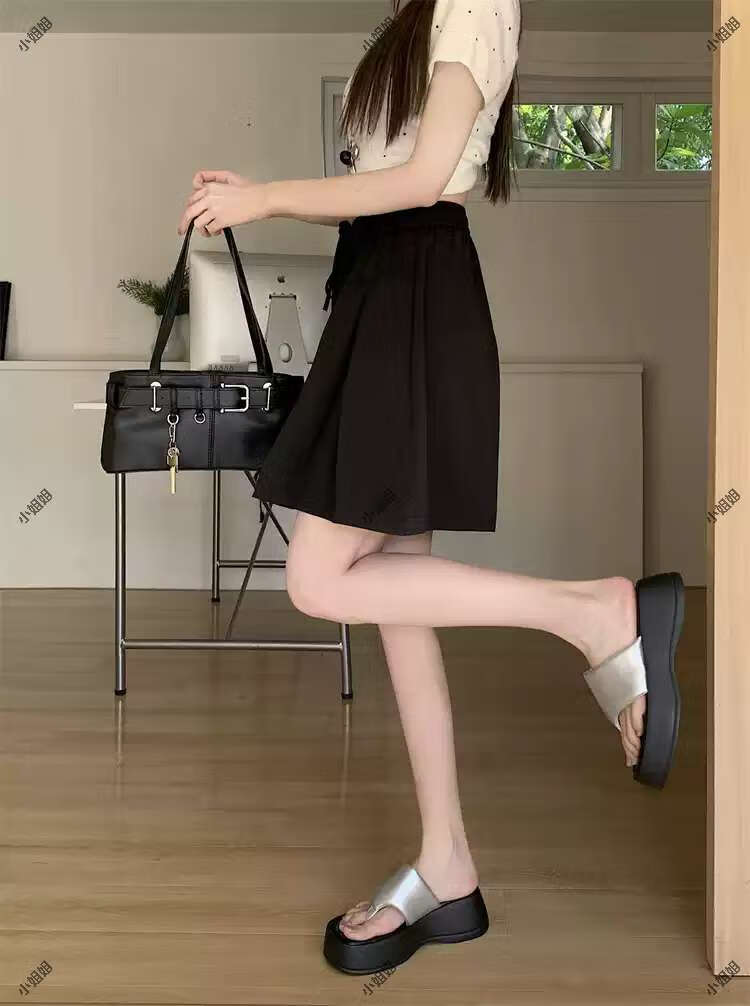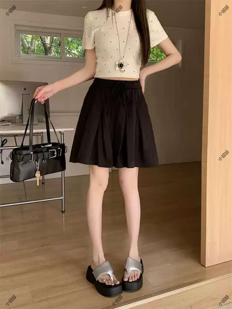 大码复古薄款休闲裤女2025新款夏季高腰阔腿裤胖MM显瘦五分短裤子 黑色 M M建议90100斤