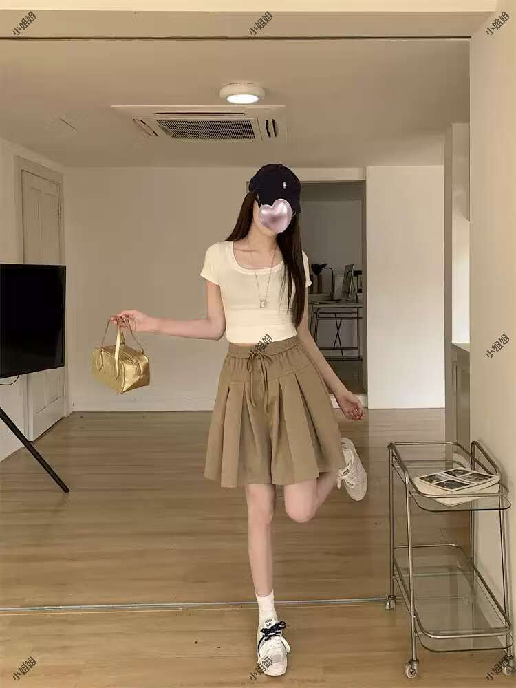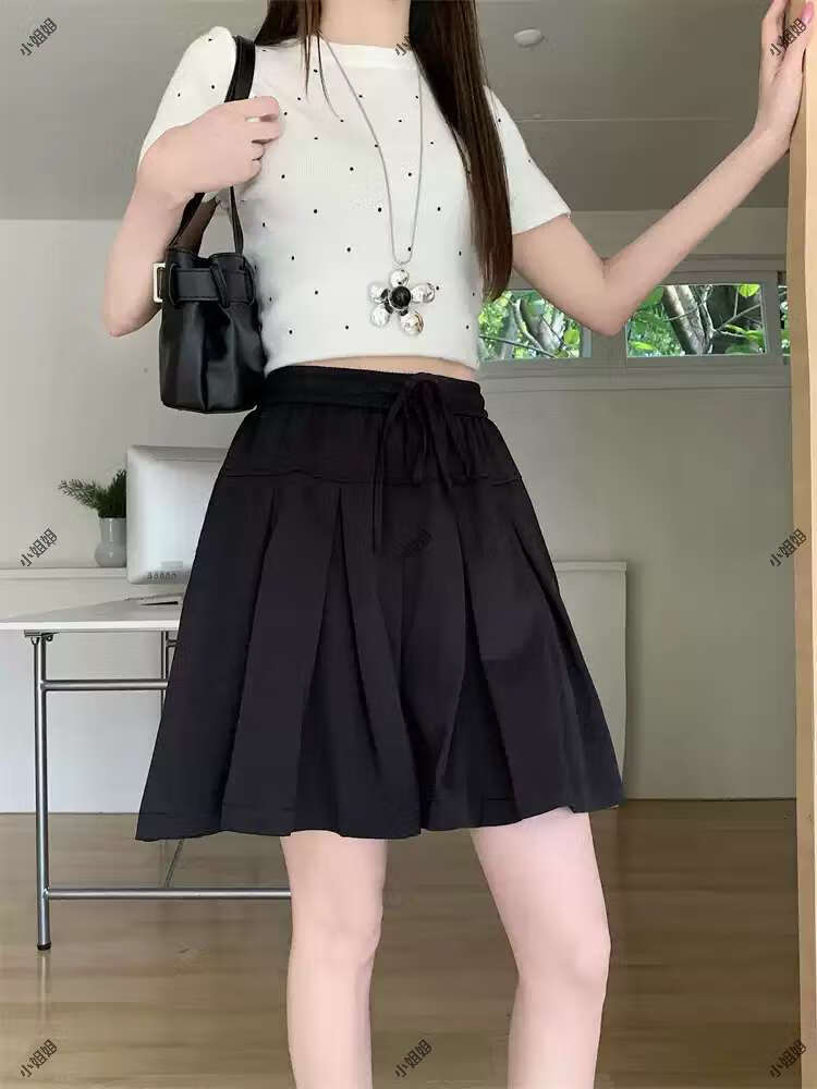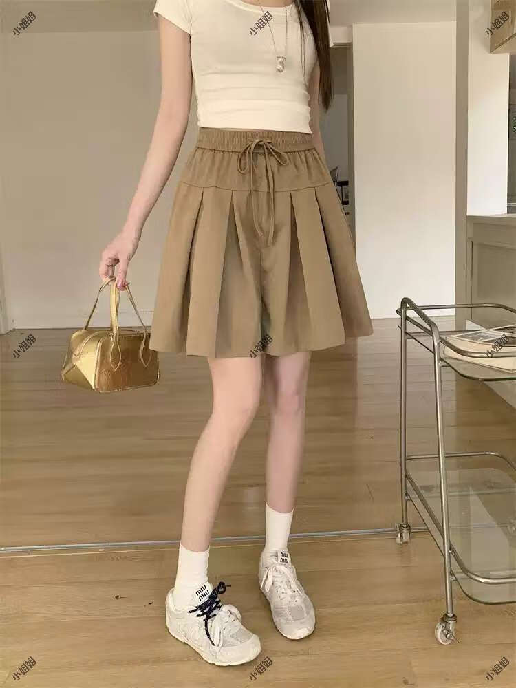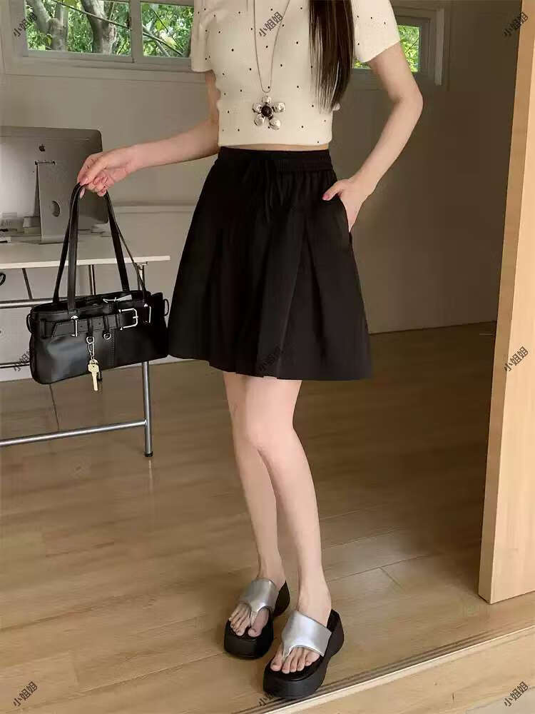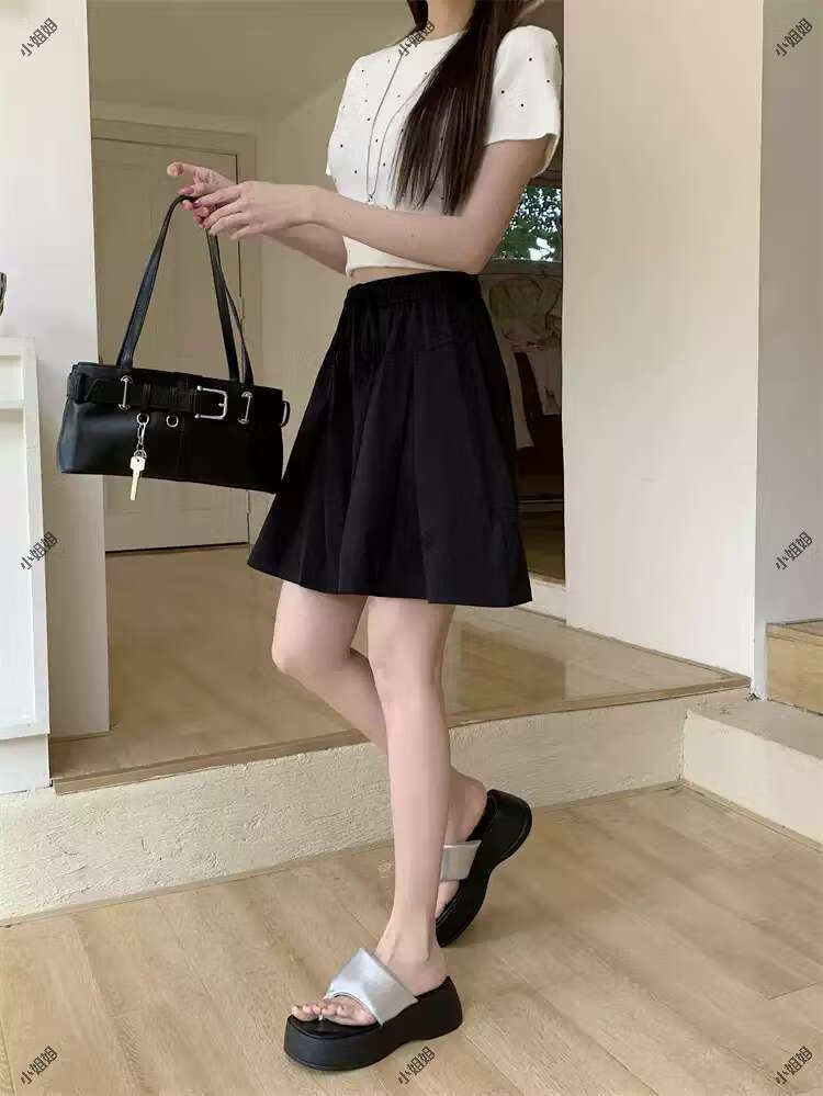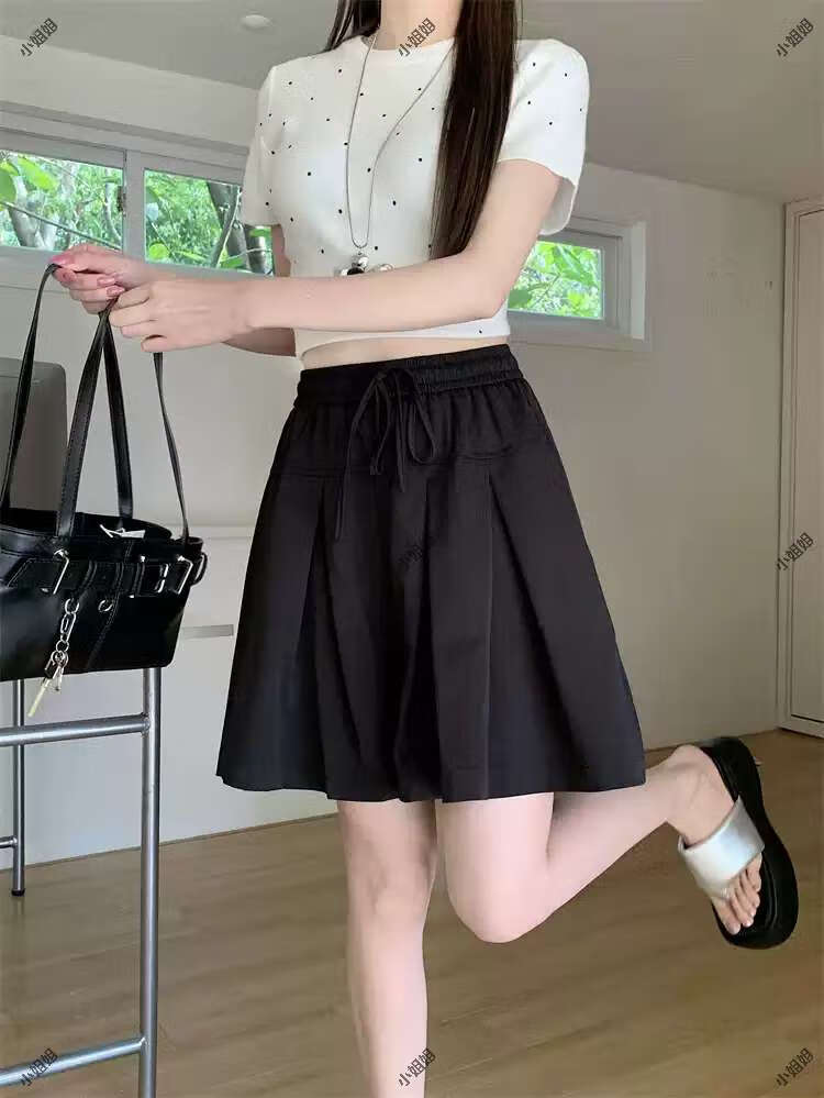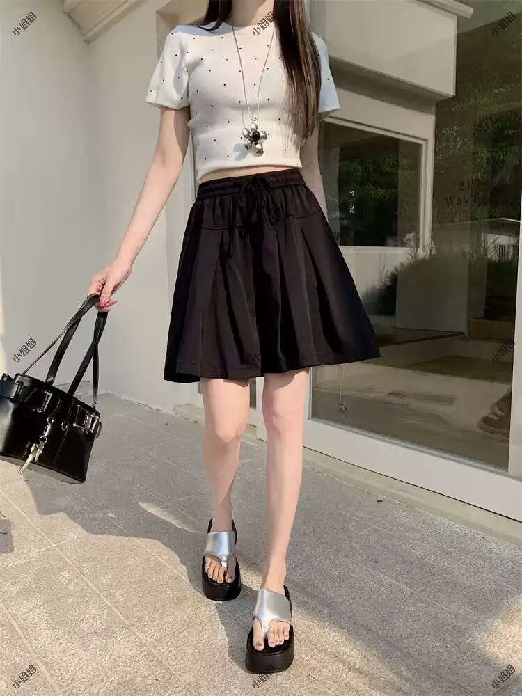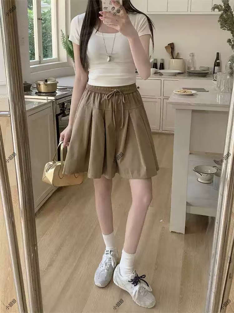 大码复古薄款休闲裤女2025新款夏季高腰阔腿裤胖MM显瘦五分短裤子 黑色 M M建议90100斤