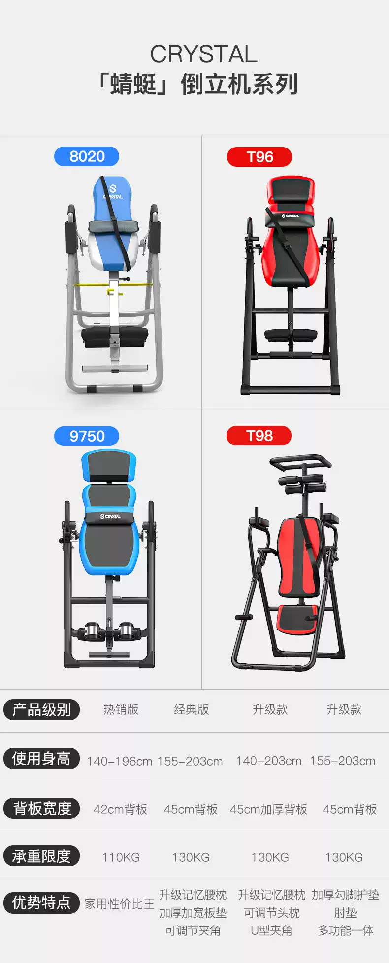 水晶运动倒立机家用多功能倒立神器瑜伽辅助健身材拉伸AllIT8 升级蓝色旗舰款移动滑轮+记忆靠垫+PU护脚角+靠枕可调
