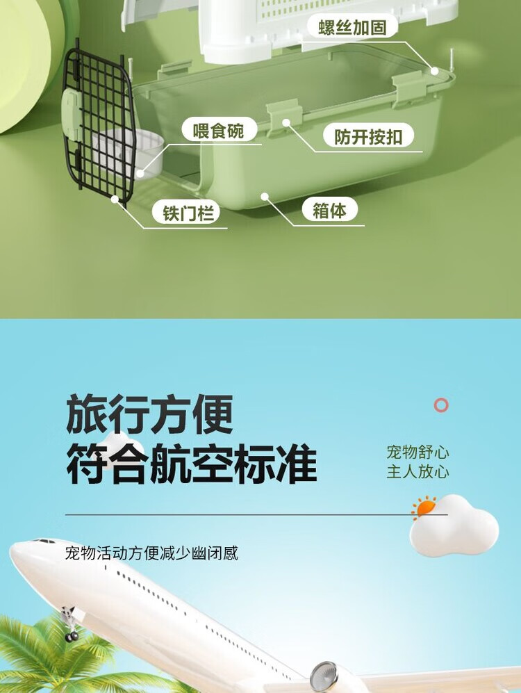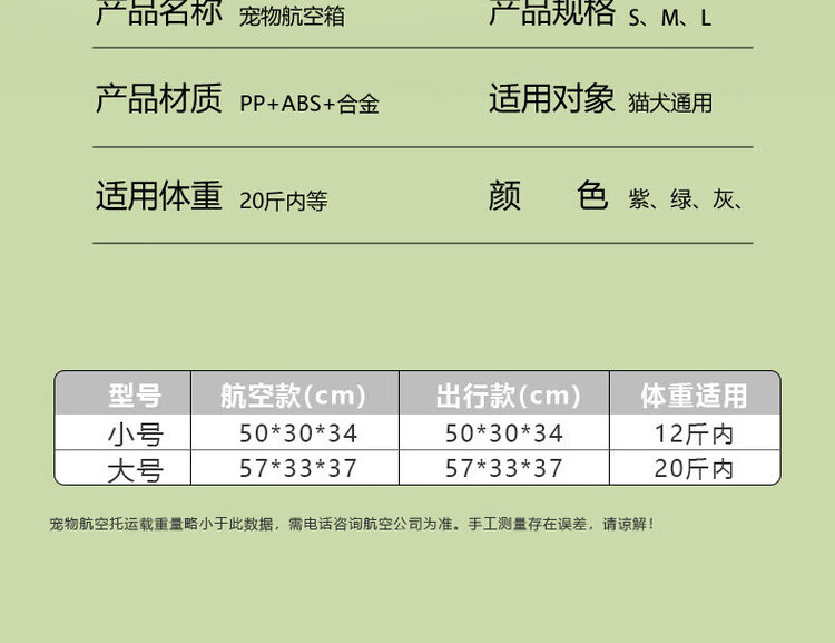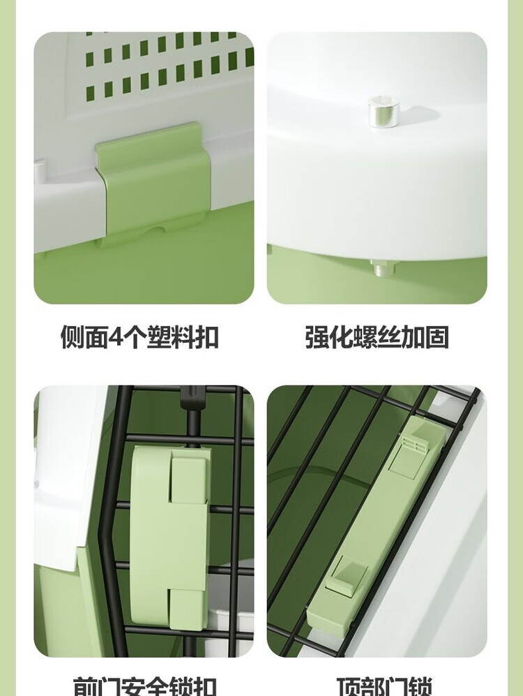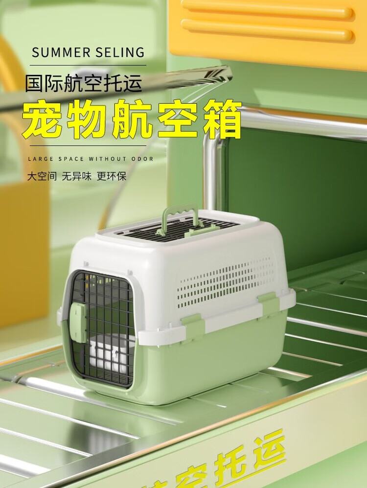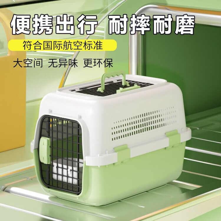 Haustier-Flugbox, Katzen-Checkbox, Hundeausflug, tragbarer, im Auto montierter Katzenkäfig, Katzentasche, kleiner, mittlerer und großer Hundekäfig, Avocadogrün, kariertes Modell NYG-1TY mittlerer Größe, druckfest und verschleißfest, verdickt und resistent gegen Stürze, kostenlose Windeln