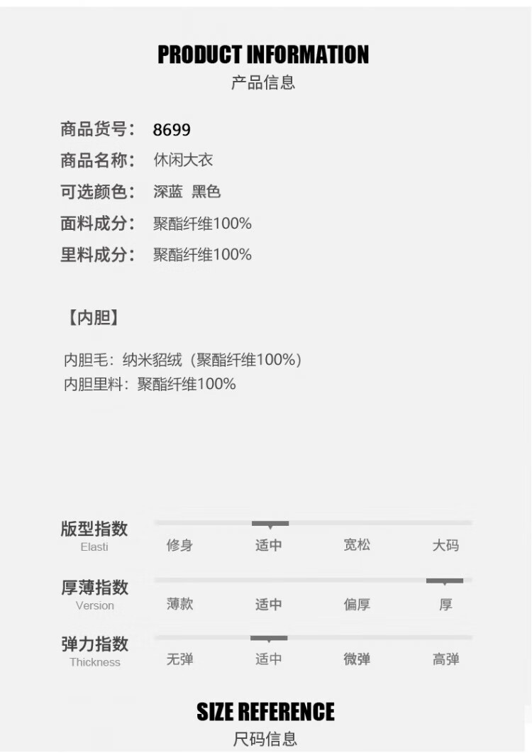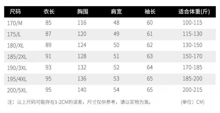 China (cm) 165 / 88-90 170 / 96-98 175 / 108-110 180 / 118-122 185 / 126-130