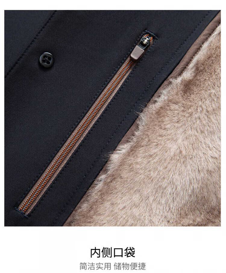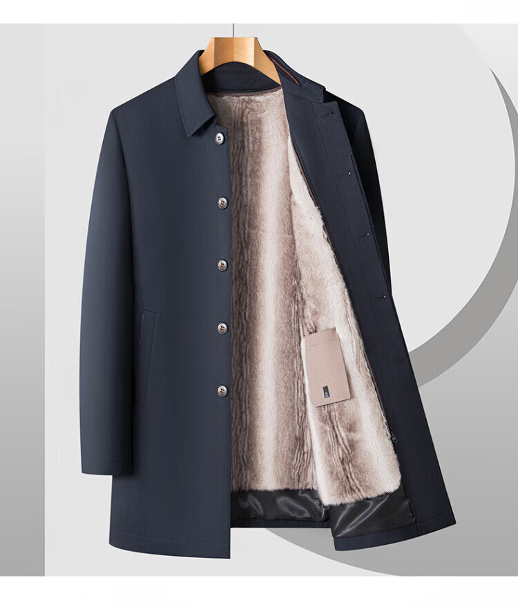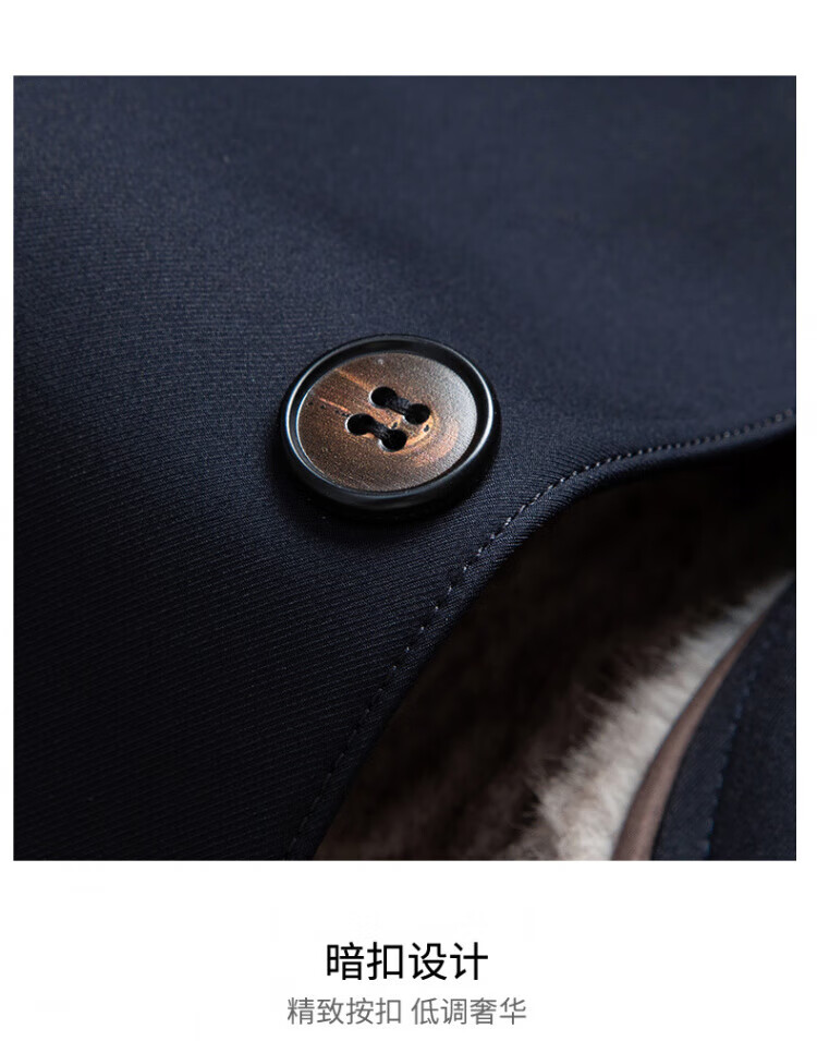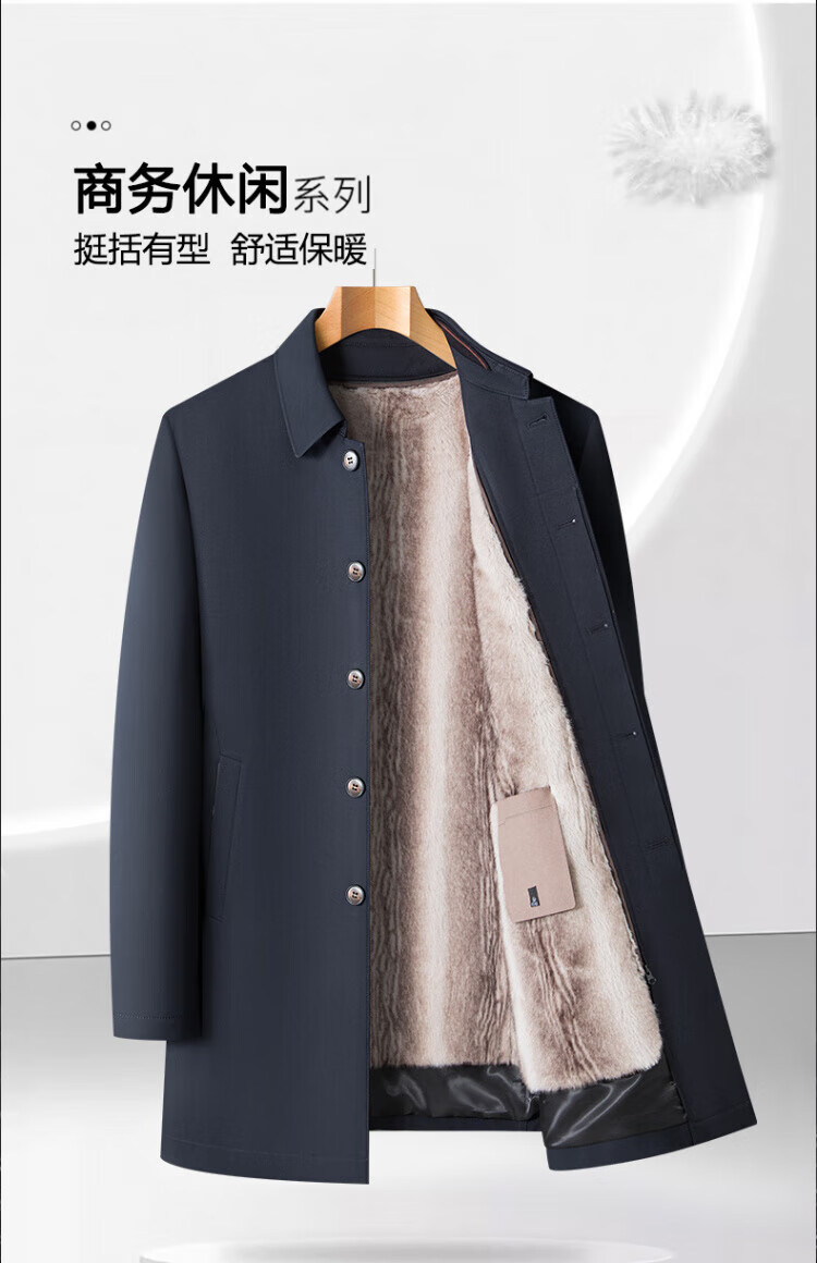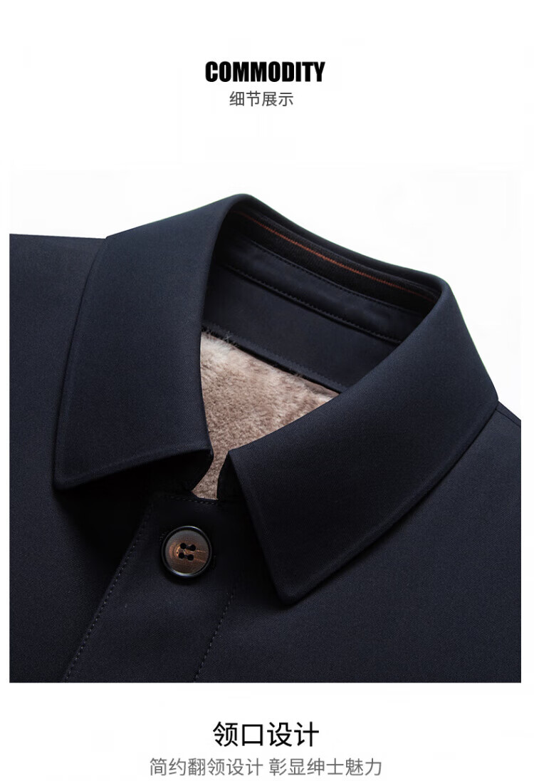 罗蒙(ROMON)加绒加厚可拆卸内胆风衣2025冬季新款中老年舒适休闲轻奢保暖外套 深蓝色 XL 建议130-150斤