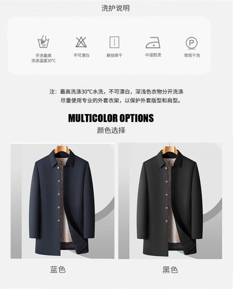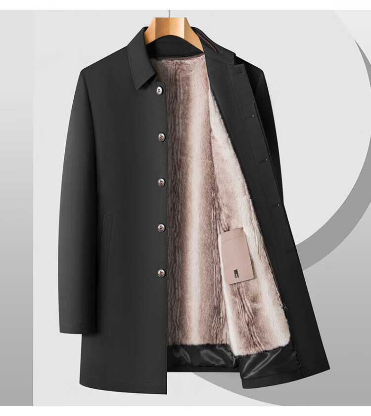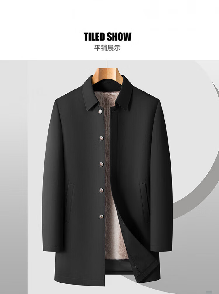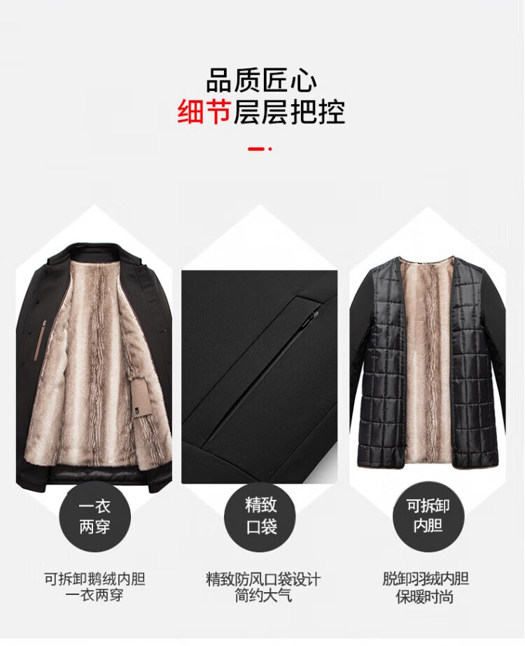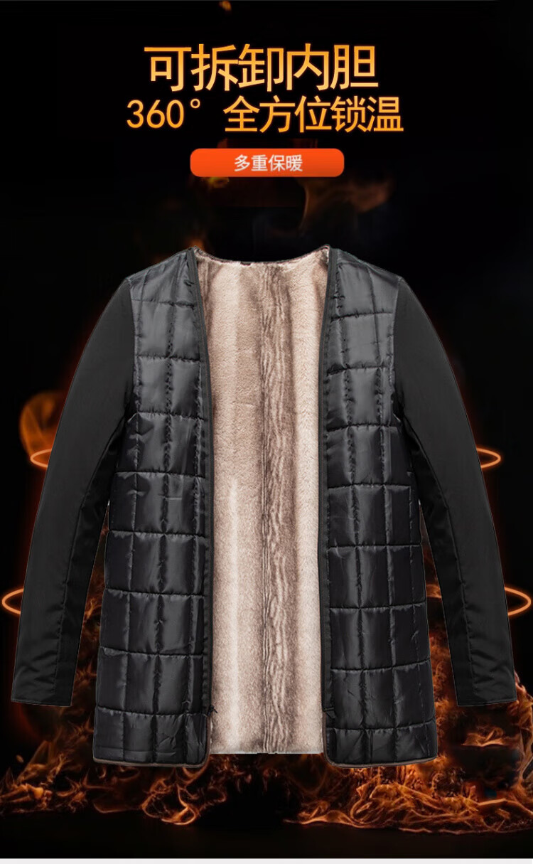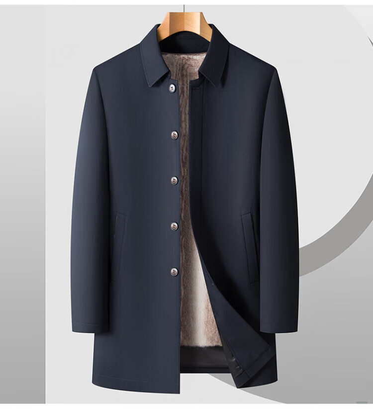 罗蒙(ROMON)加绒加厚可拆卸内胆风衣2025冬季新款中老年舒适休闲轻奢保暖外套 深蓝色 XL 建议130-150斤