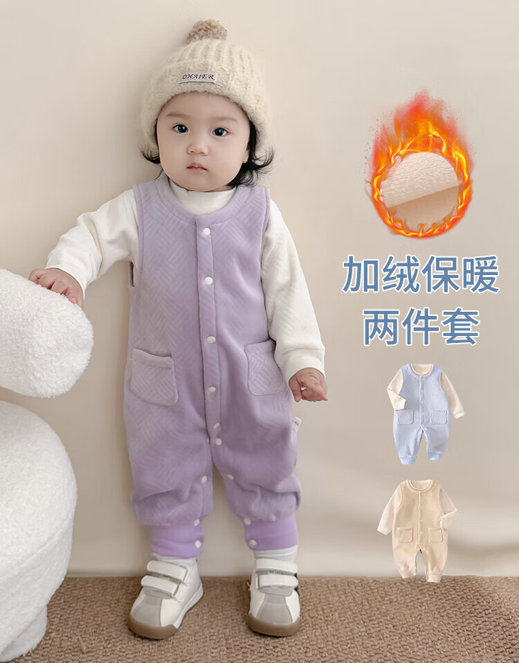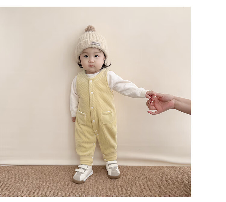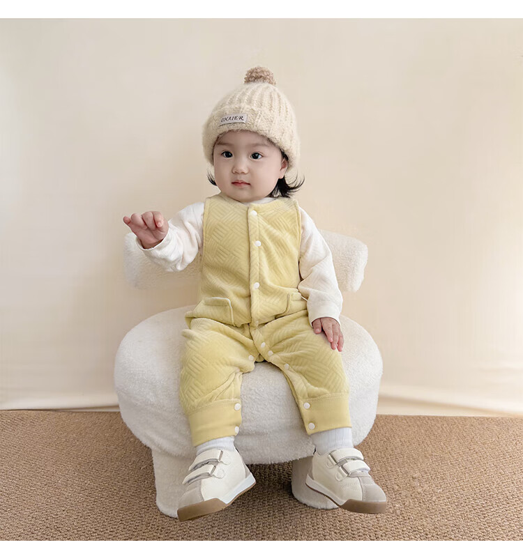 YEEHOO Ying's baby autumn and winter split set one-year-old infant overalls for boys and girls plus velvet to keep warm when going out baby sprout green plus velvet to keep warm_two-piece set 66 cm_recommended 2-4 months_weight 10-13Jin Jin equals 0.5 kg