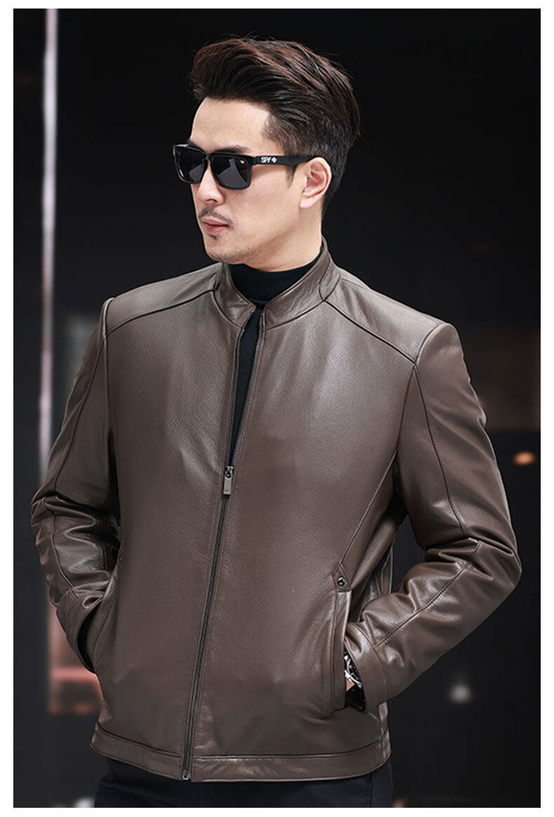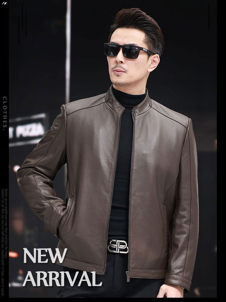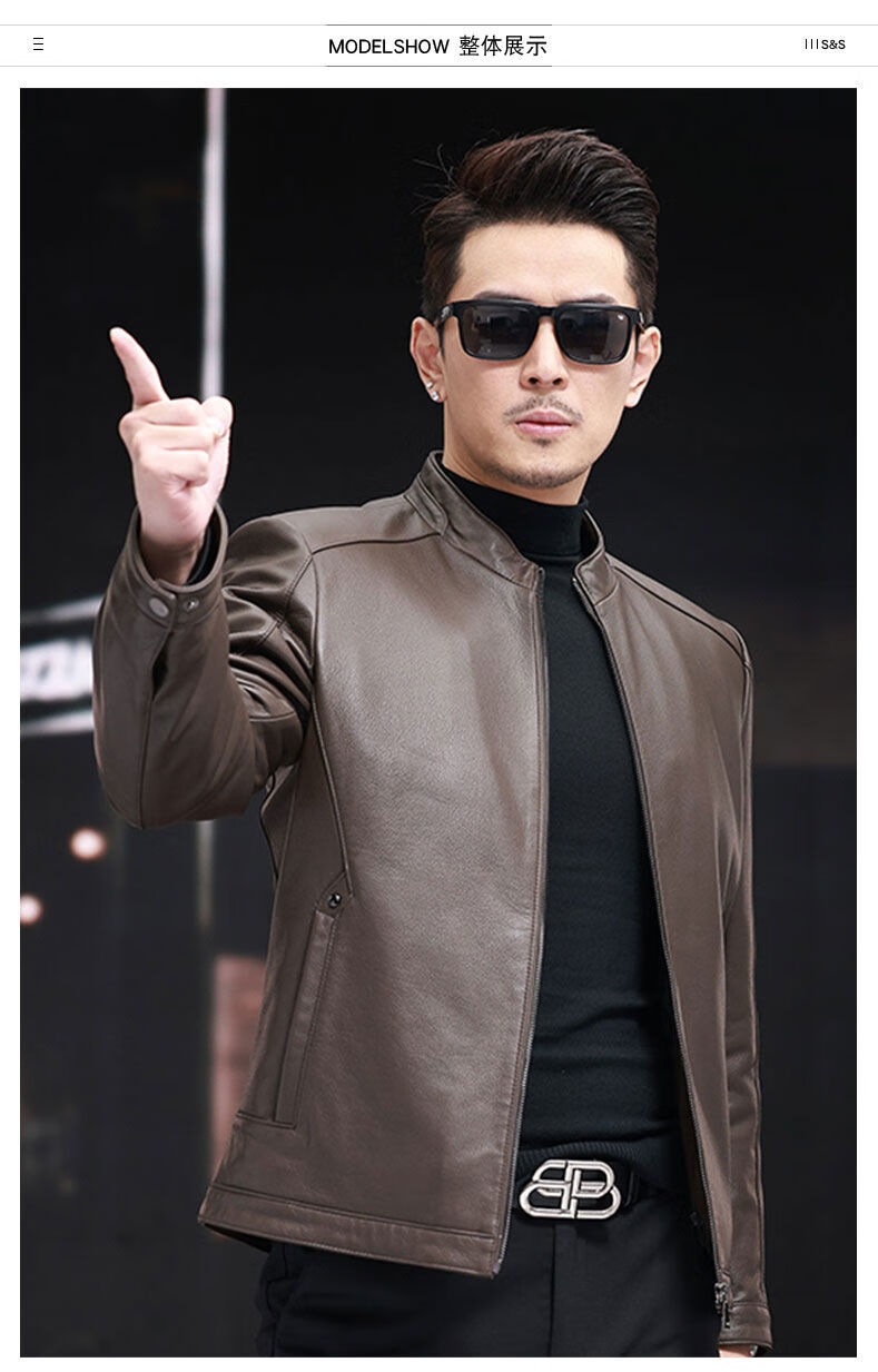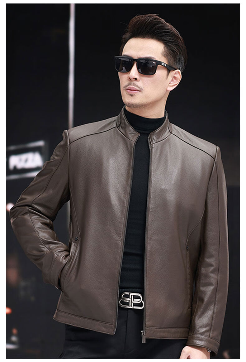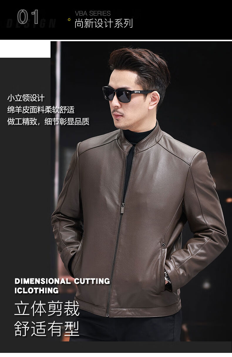 VBA first-layer sheepskin Haining genuine leather jacket men's new casual stand-up collar genuine leather jacket slim autumn coat black M M95-105Jin Jin equals 0.5 kg