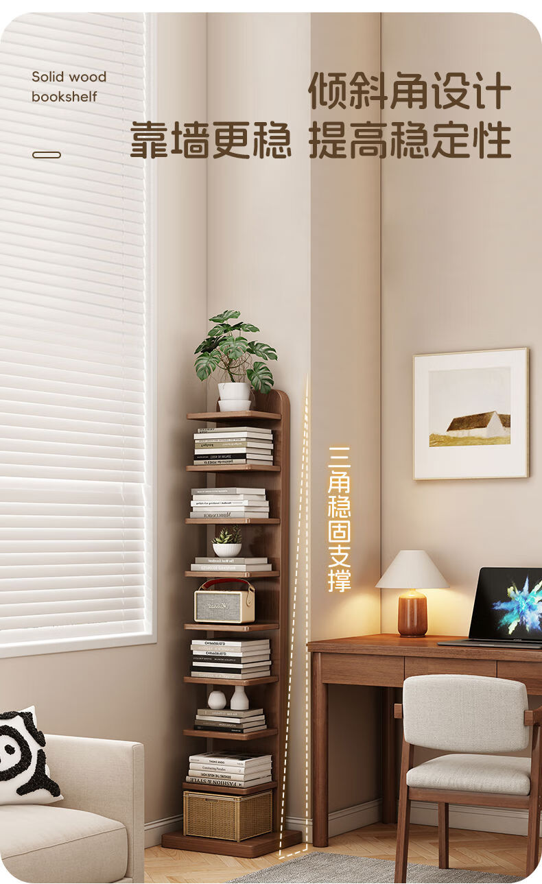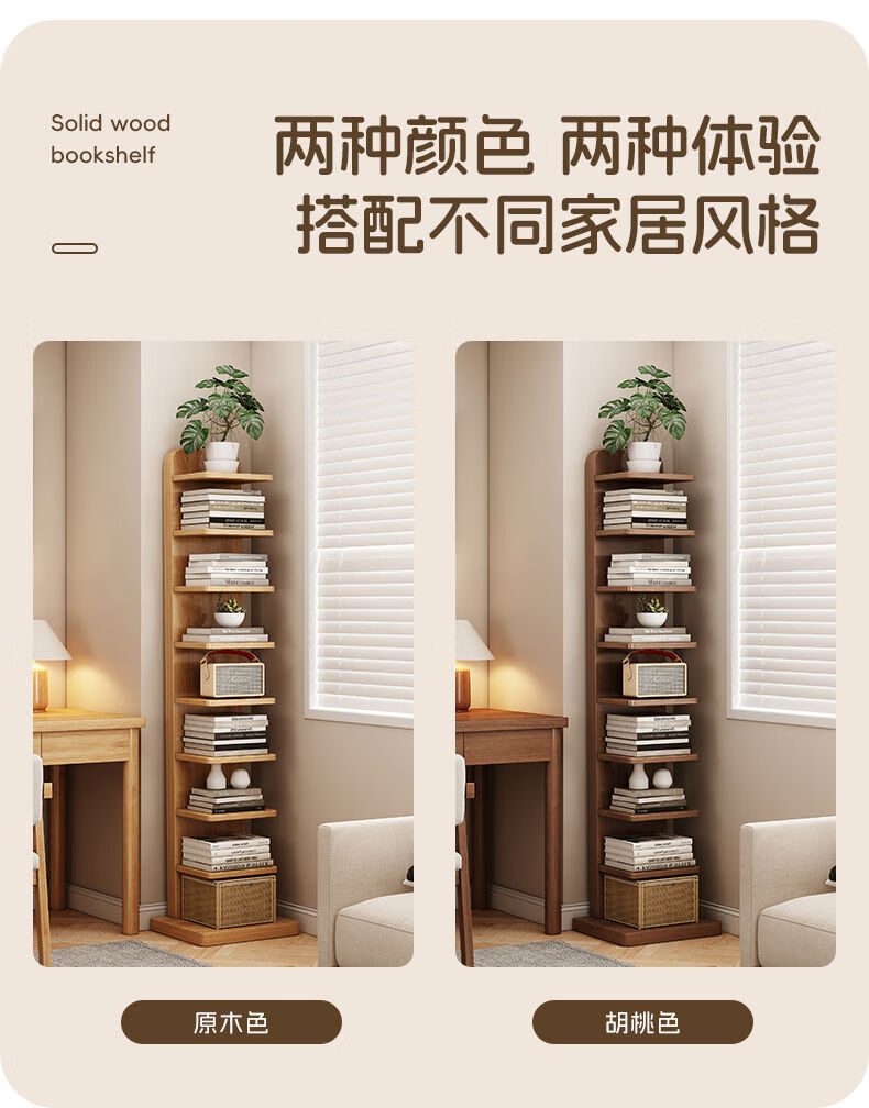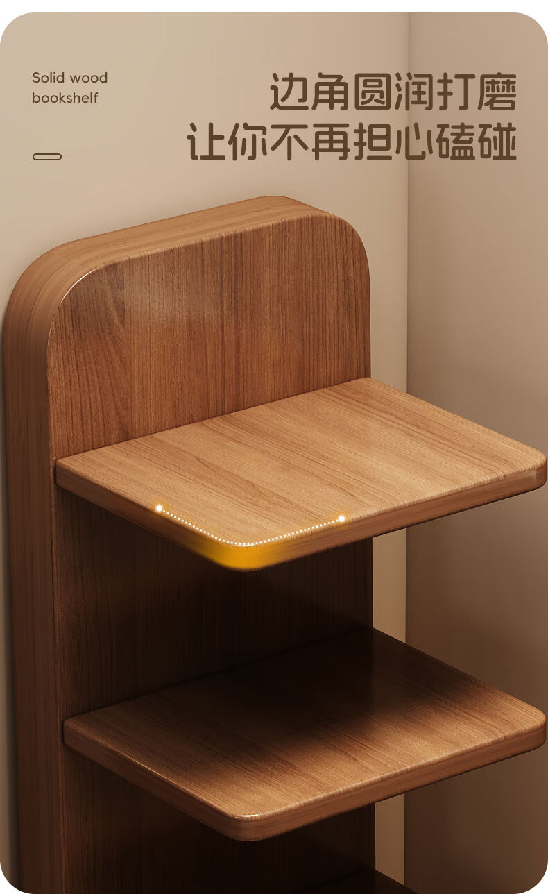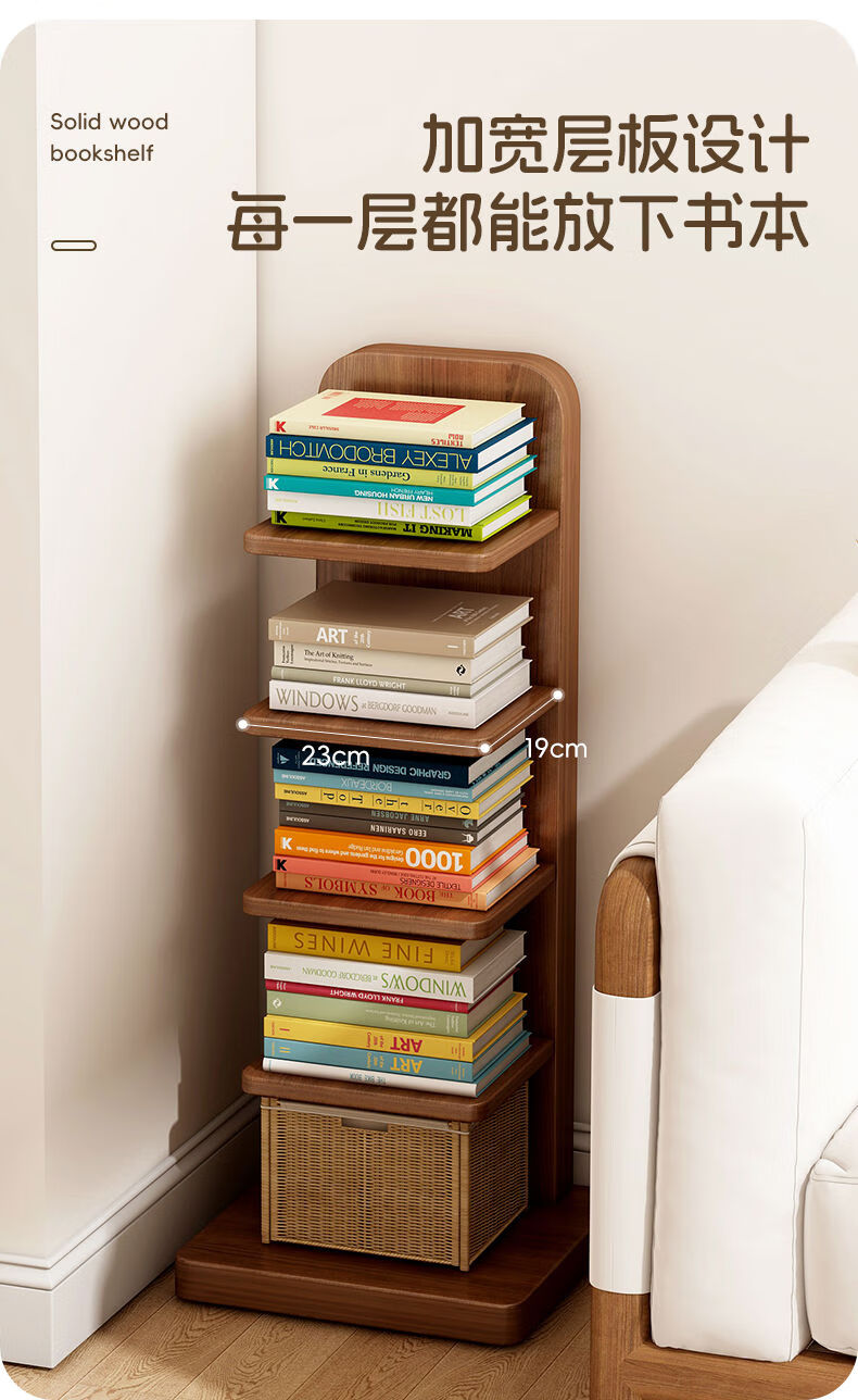 半厘全实木书架立式隐形置物架客厅防倾倒收纳架子家用靠墙窄缝小书柜 全实木原木色-5层隐形书架