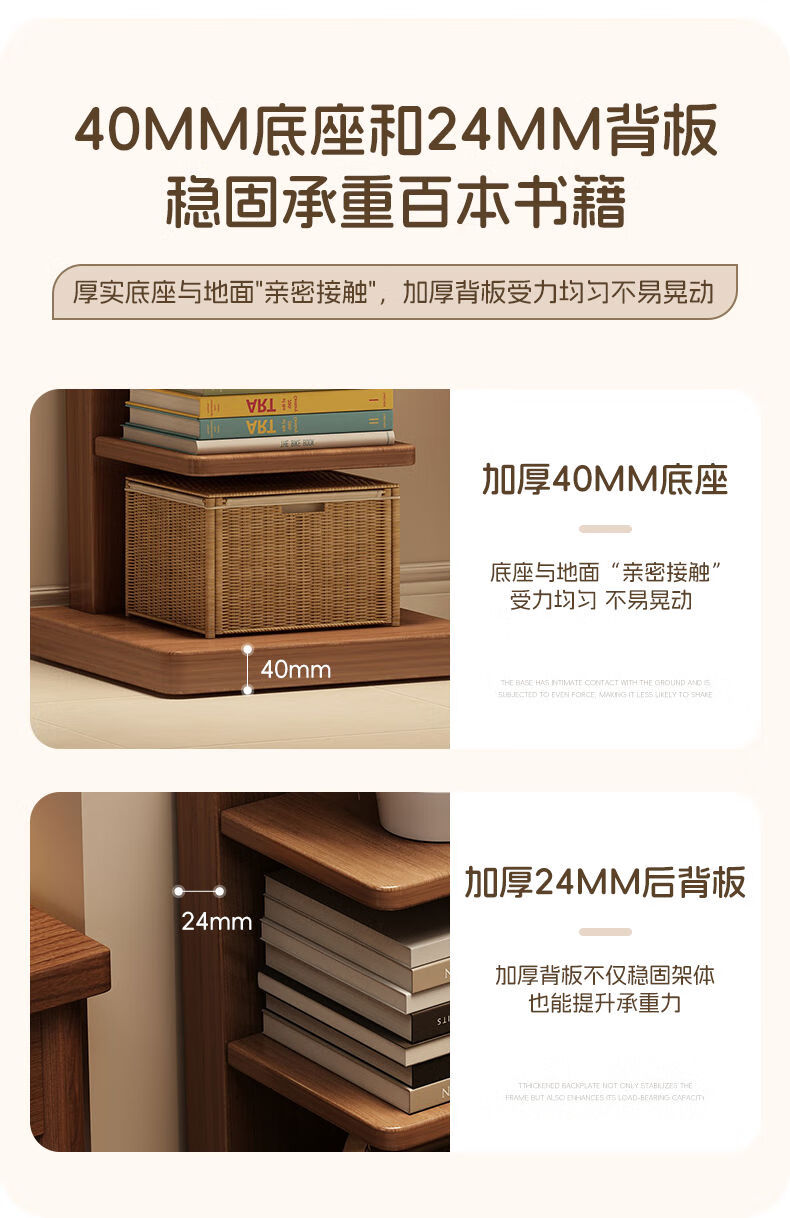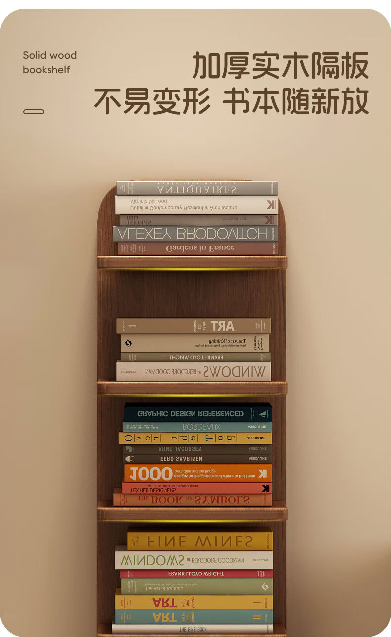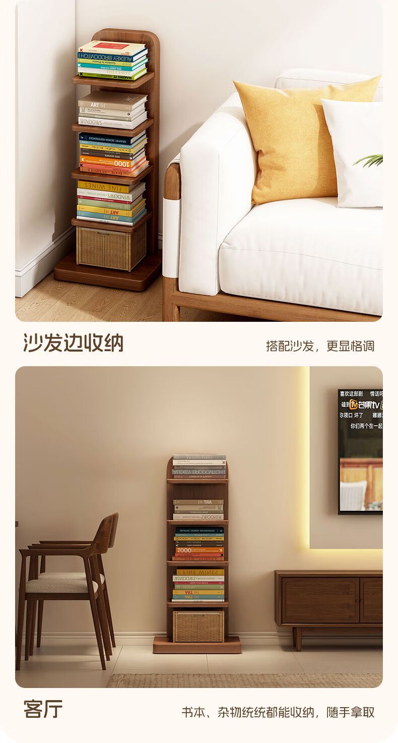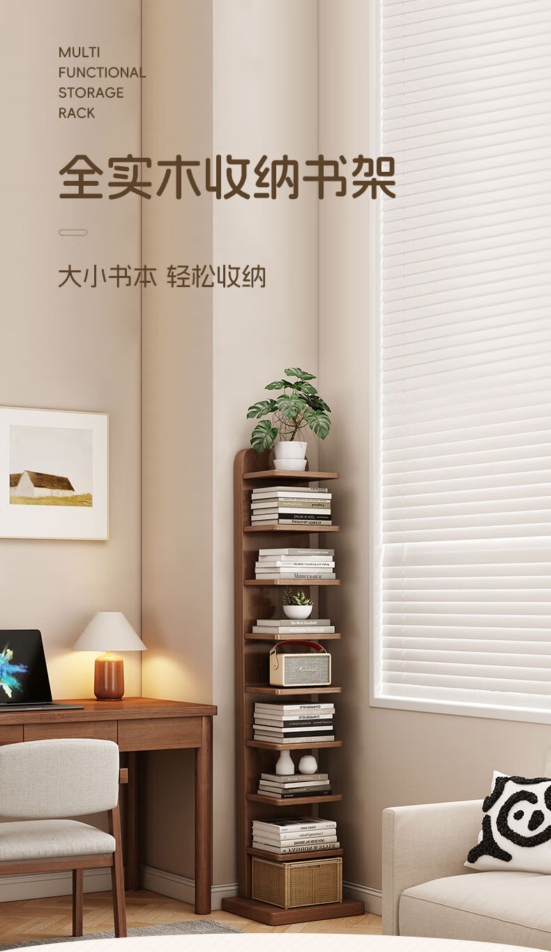 半厘全实木书架立式隐形置物架客厅防倾倒收纳架子家用靠墙窄缝小书柜 全实木原木色-5层隐形书架