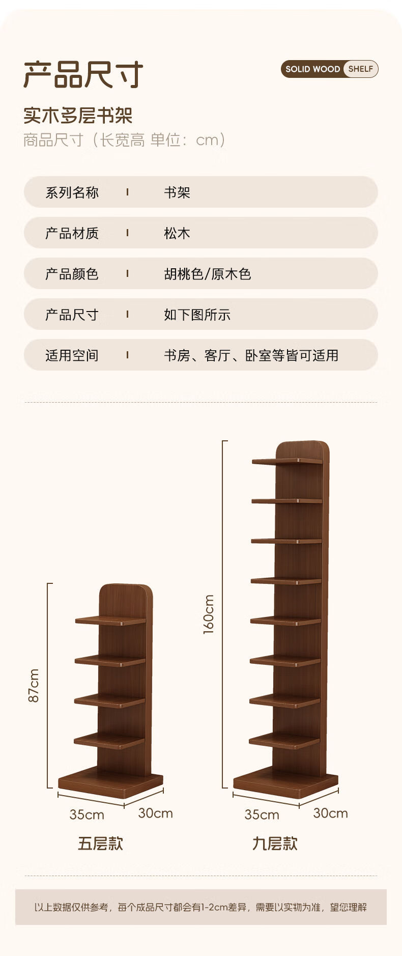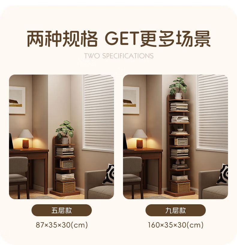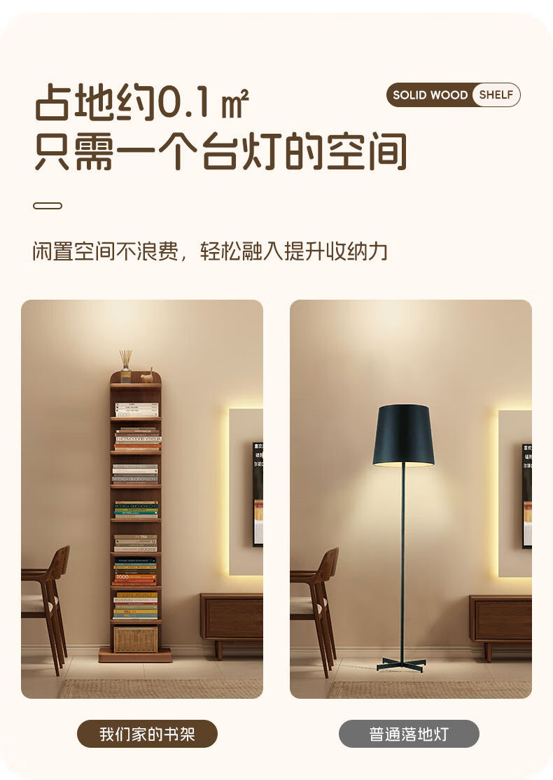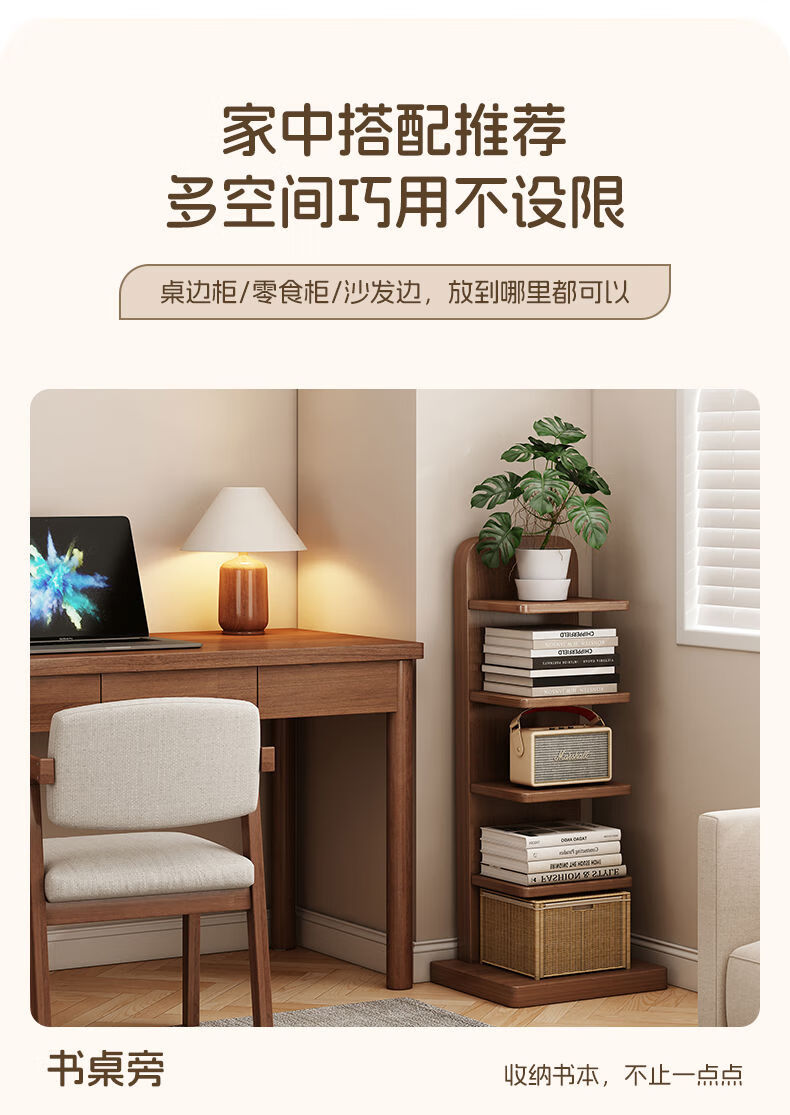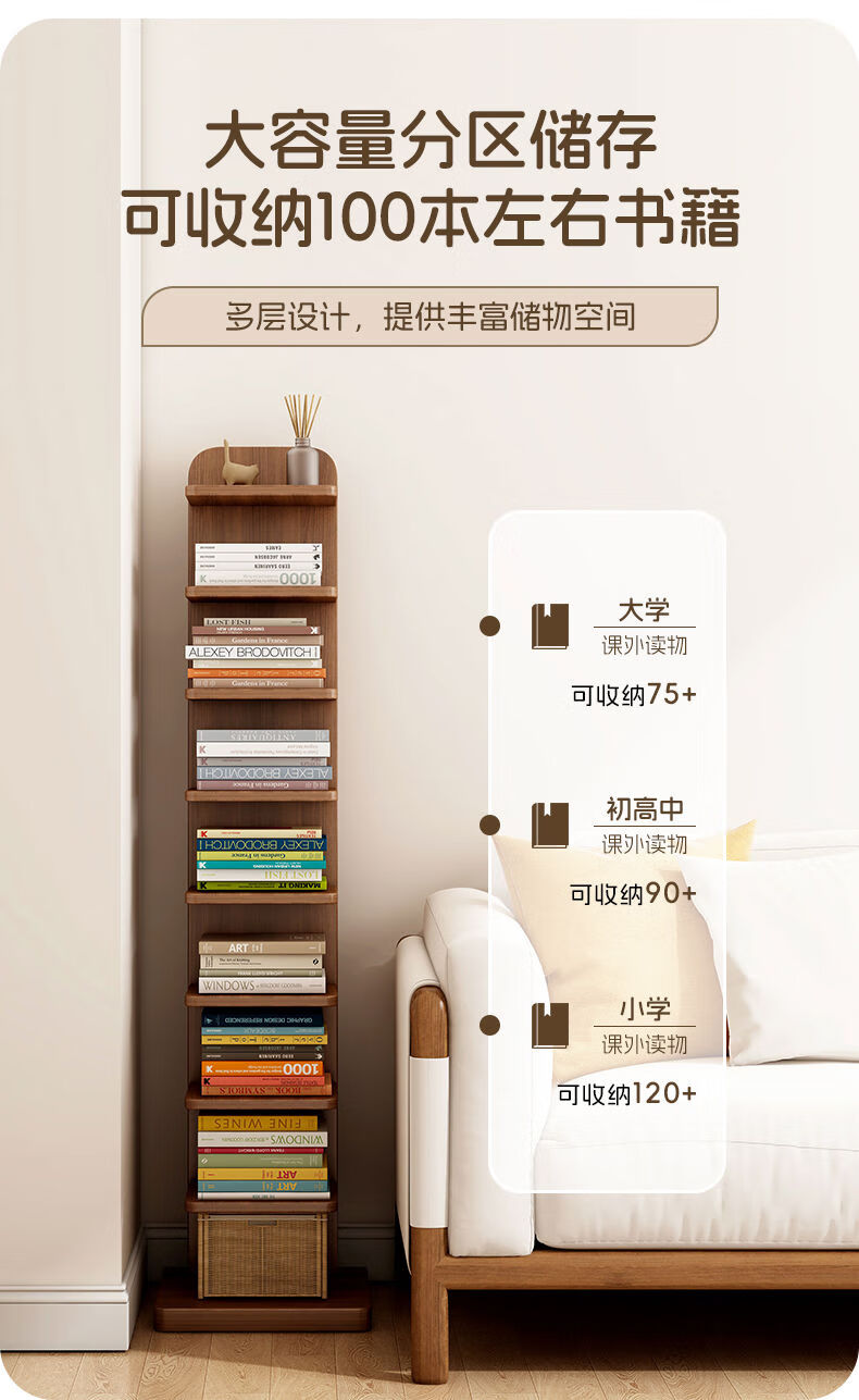 半厘全实木书架立式隐形置物架客厅防倾倒收纳架子家用靠墙窄缝小书柜 全实木原木色-5层隐形书架