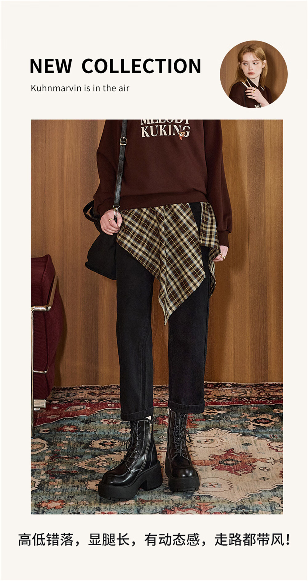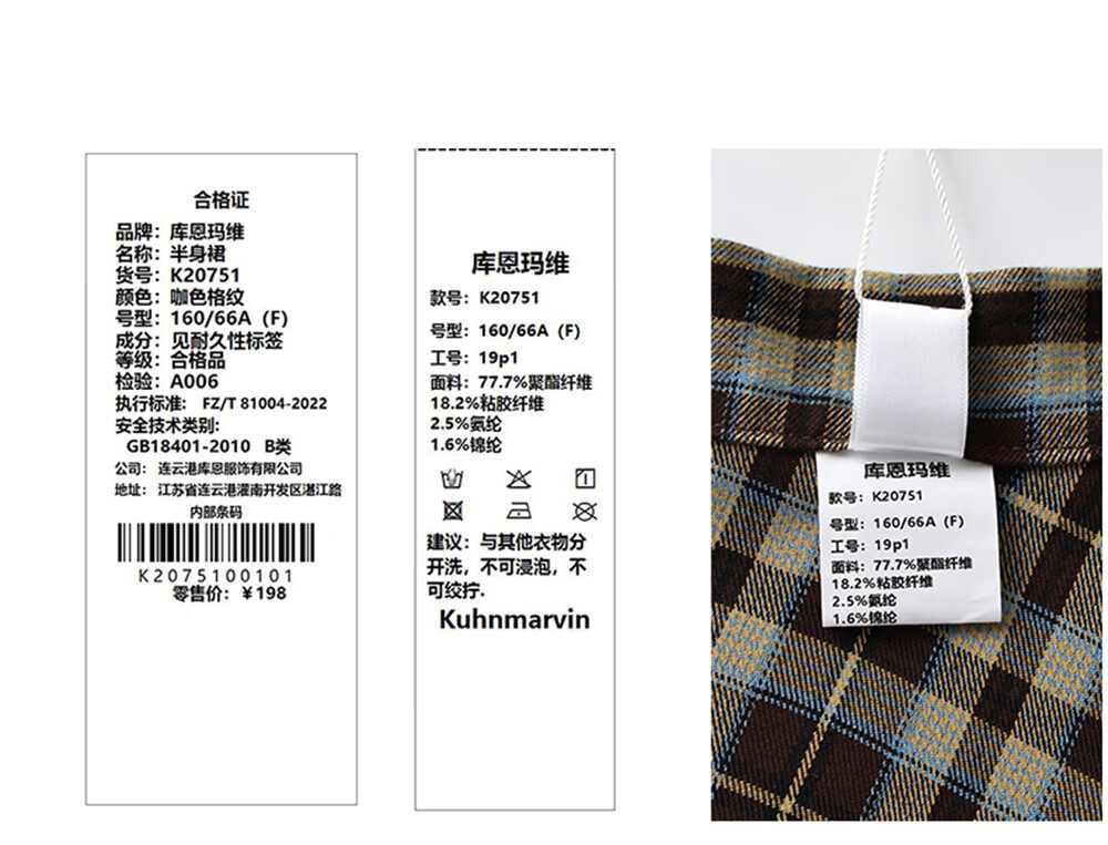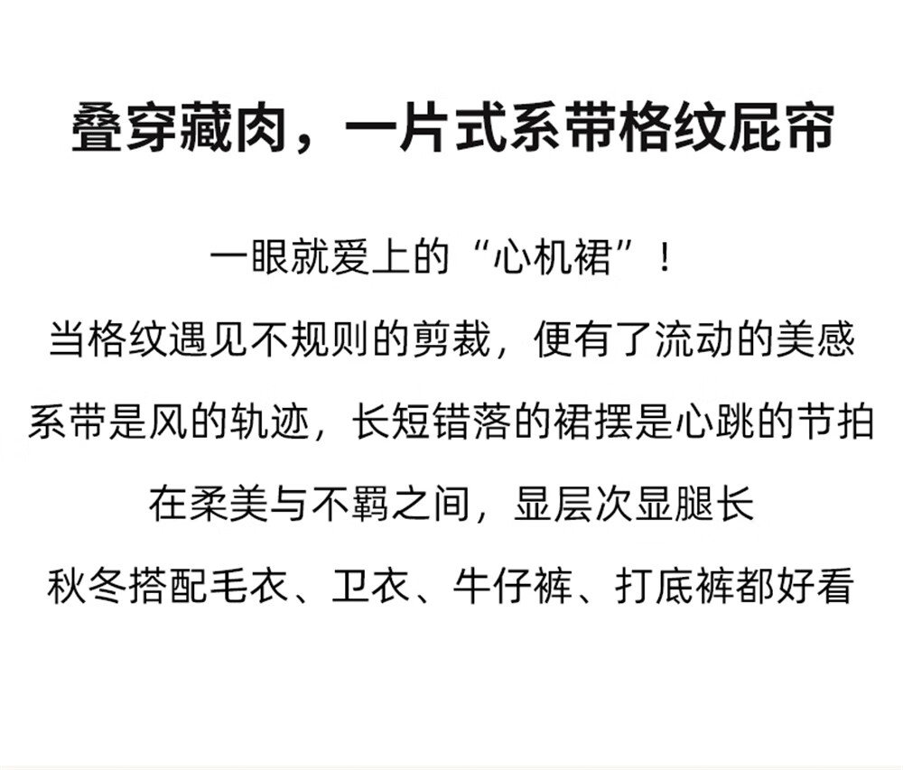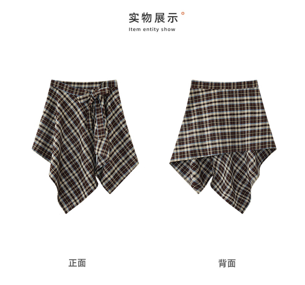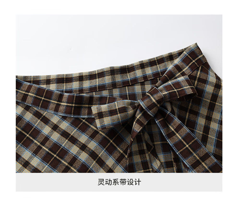 库恩玛维(KUHNMARVIN)咖色格纹一片式系带半身裙女2025年冬季新款叠穿不规则裙K20751 咖色格纹 均码