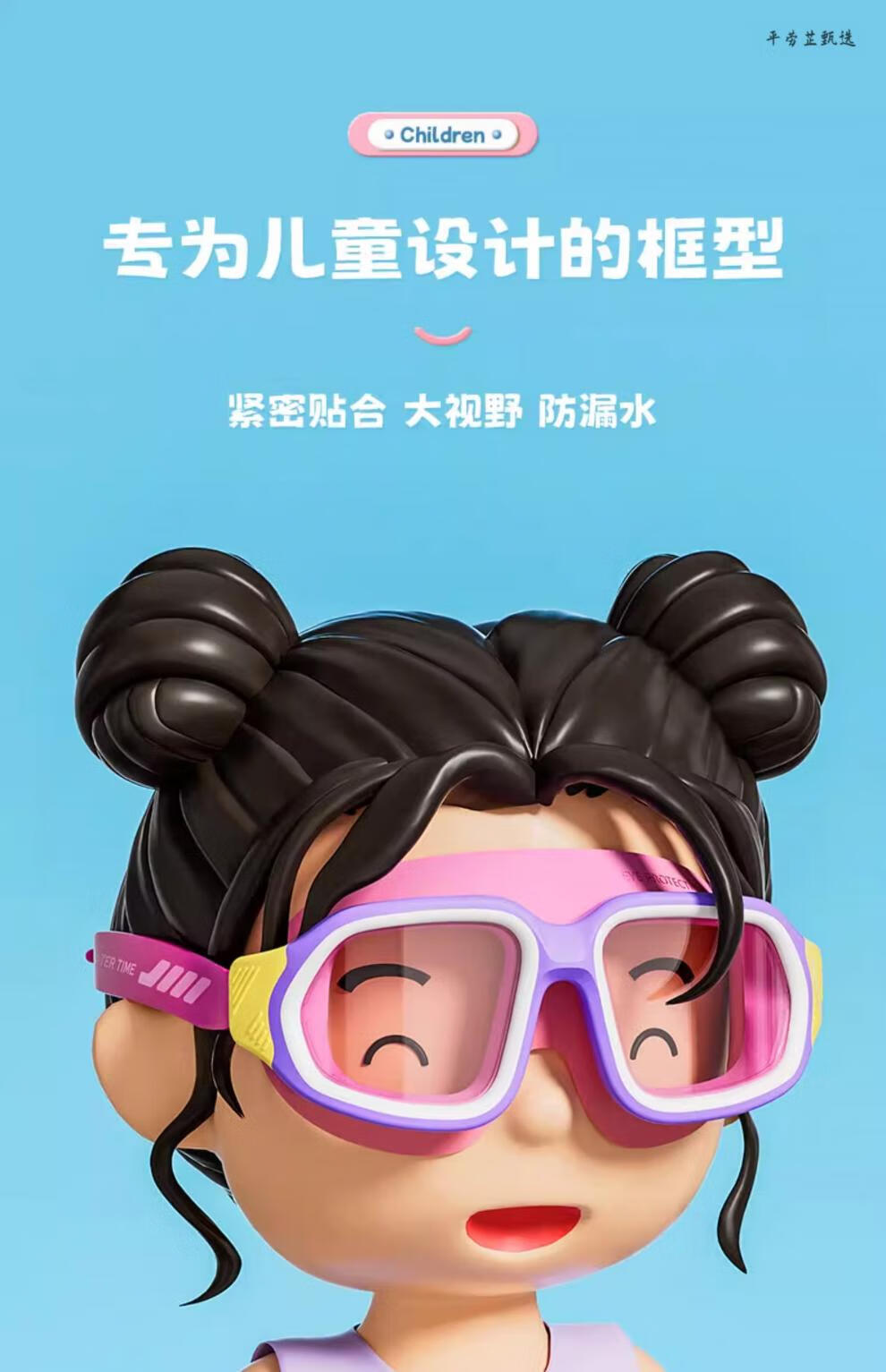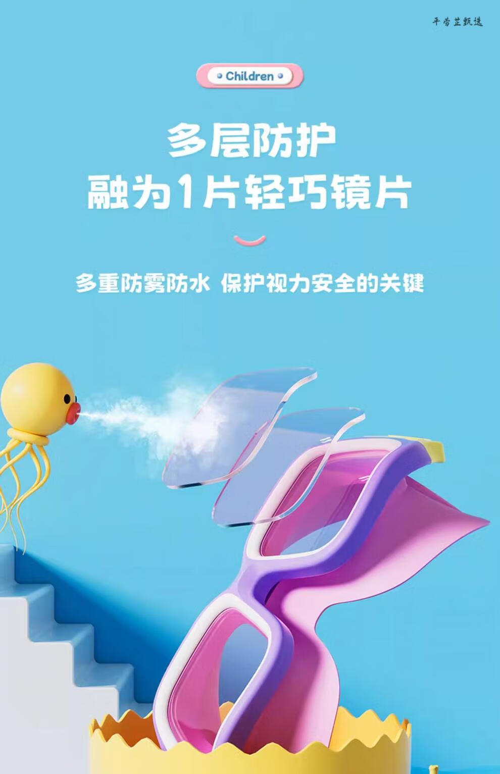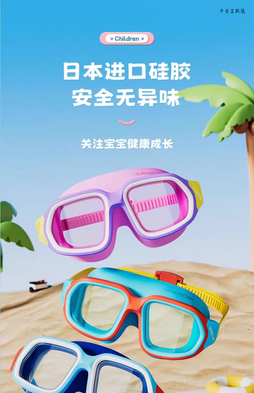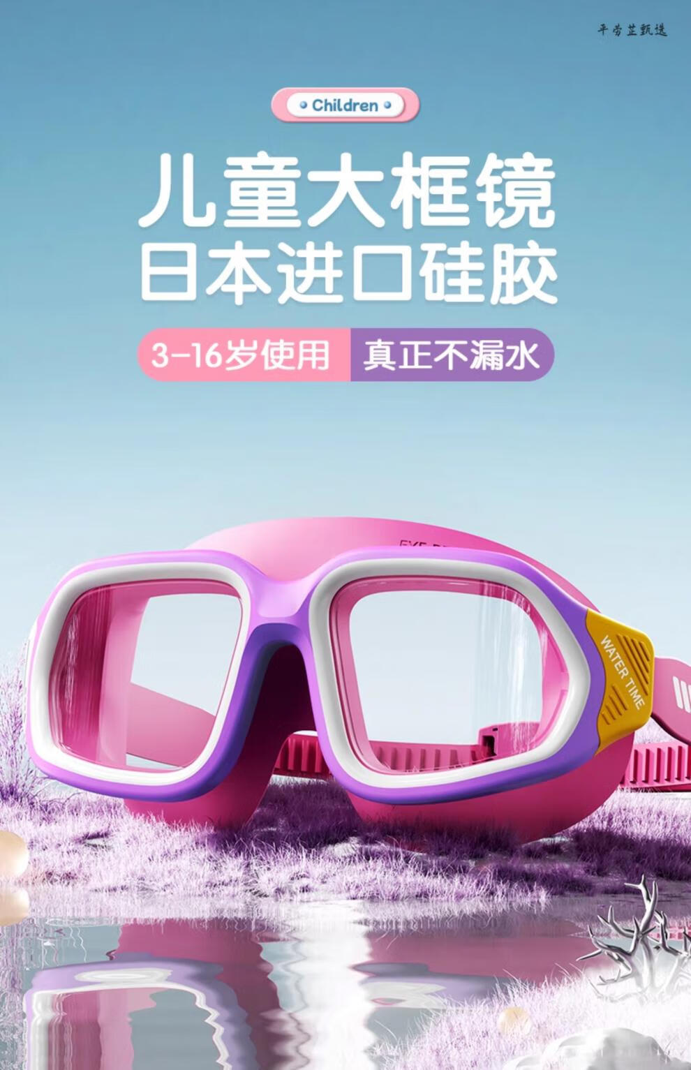 WATERTIME swimming goggles for children and girls, waterproof, anti-fog, HD, boys' large-frame swimming goggles, diving goggles, quicksand purple, material_baby health (applicable to 3-16 years old), flat
