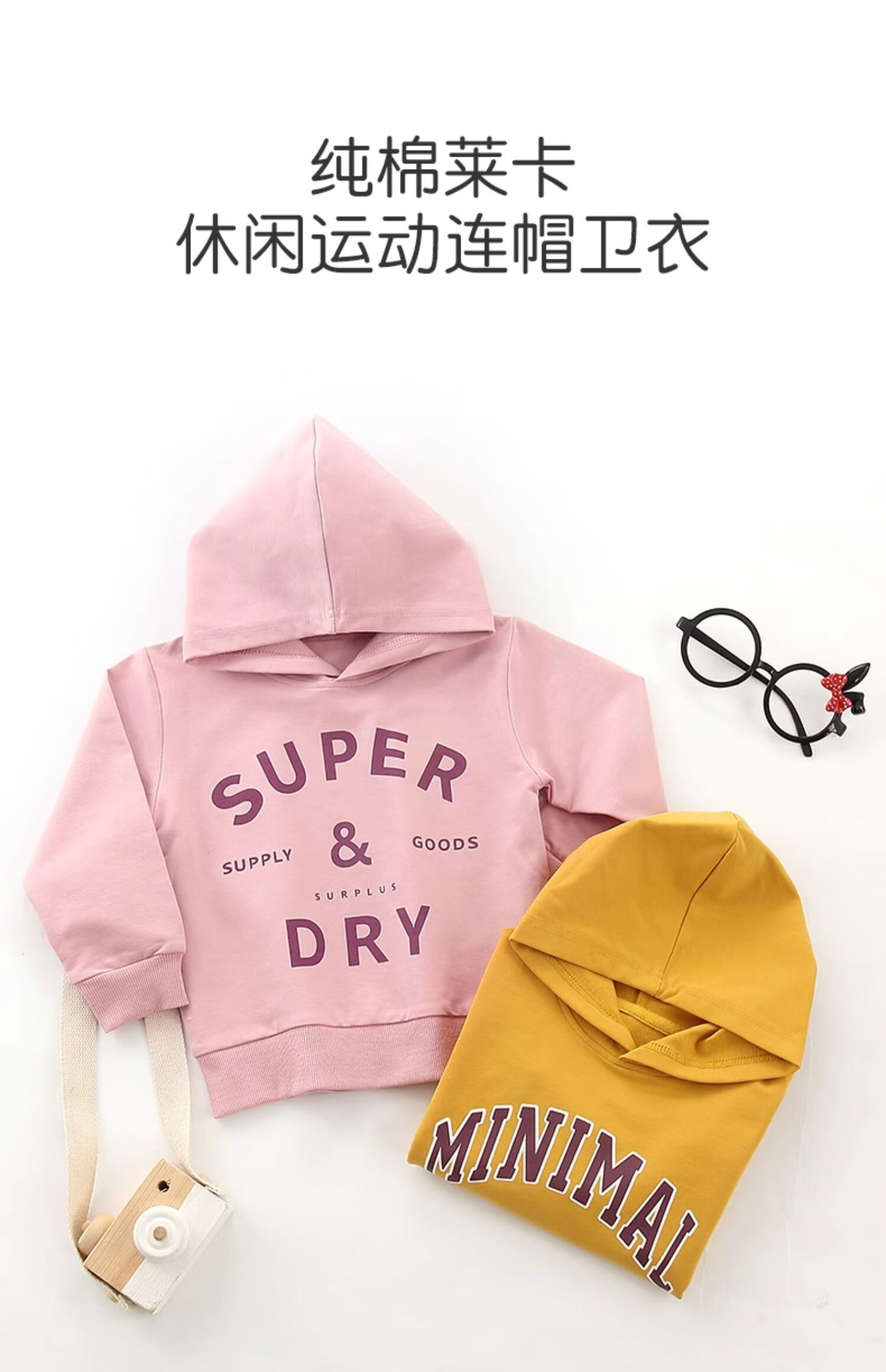 春秋新款男童女童字母印花连帽卫衣儿童韩版潮百搭宝宝上衣 黄色 80 80cm建议73-80cm