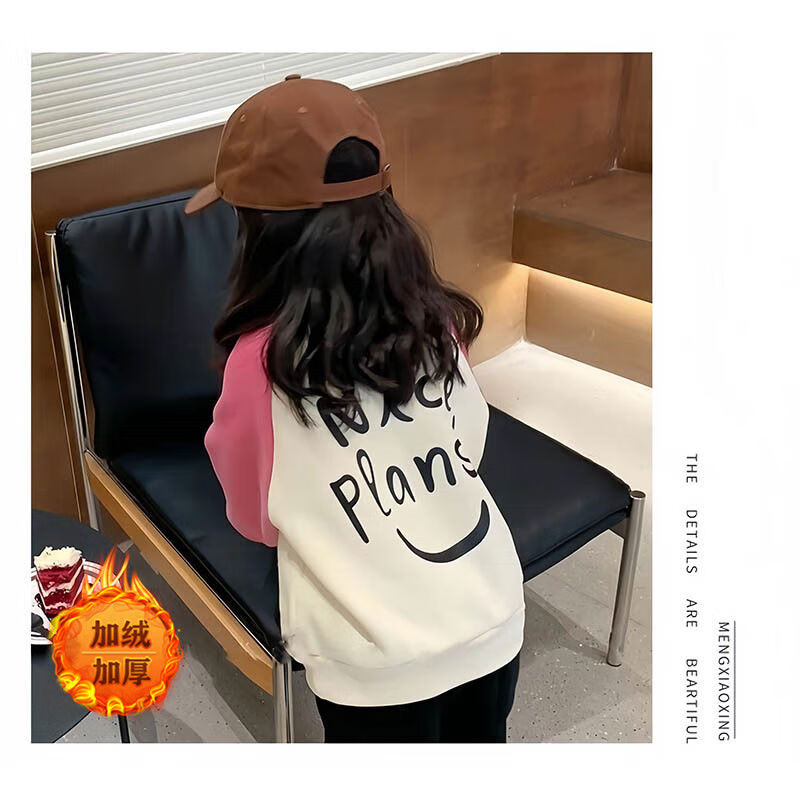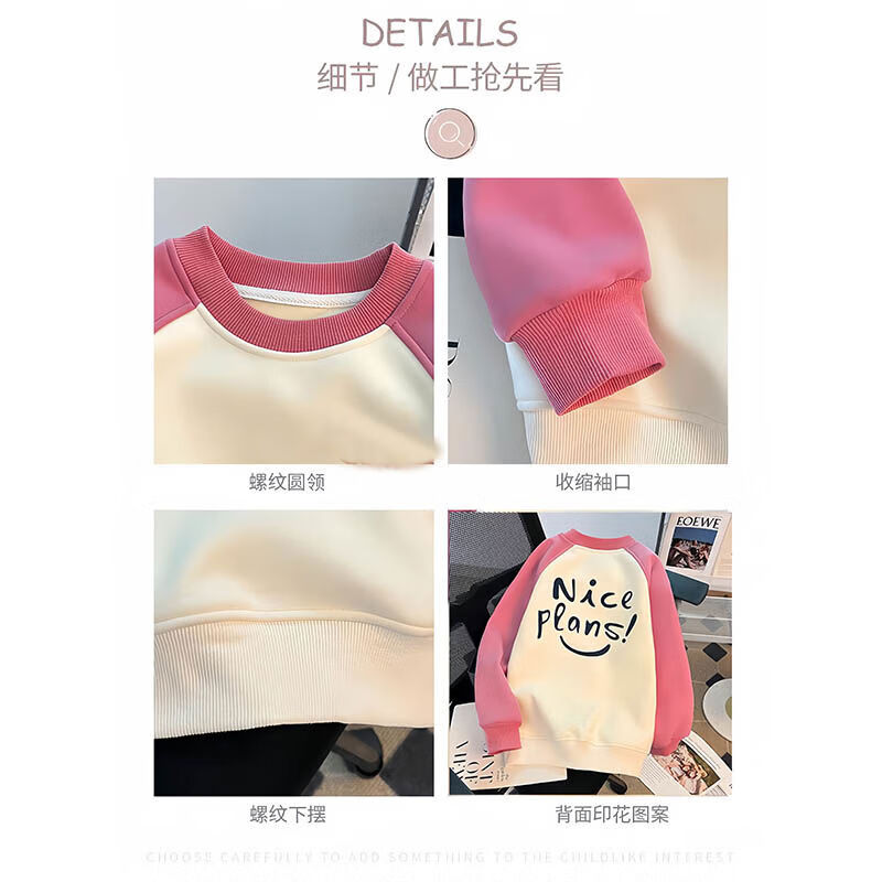 Girls sweatshirt 2025 new fashionable color matching autumn and winter children's wear student tops pink cute and versatile regular style pink 85 90cm recommended around 75-85cm