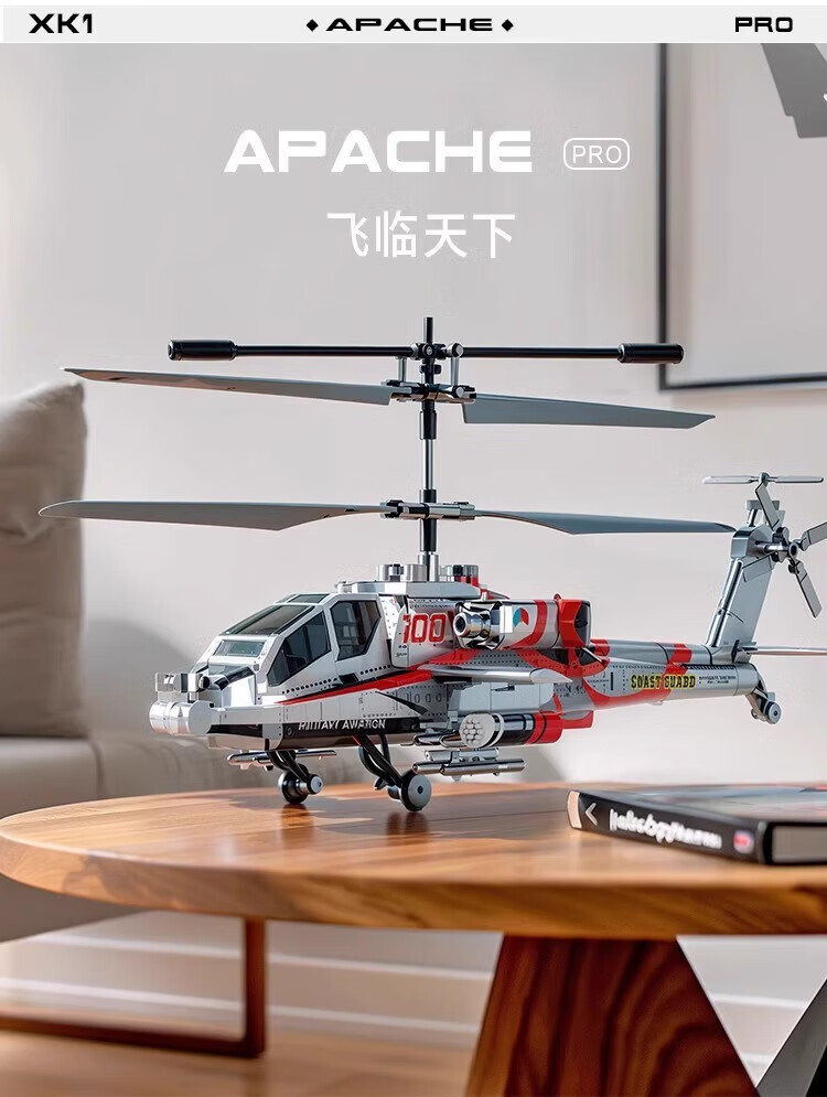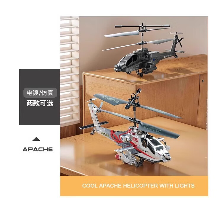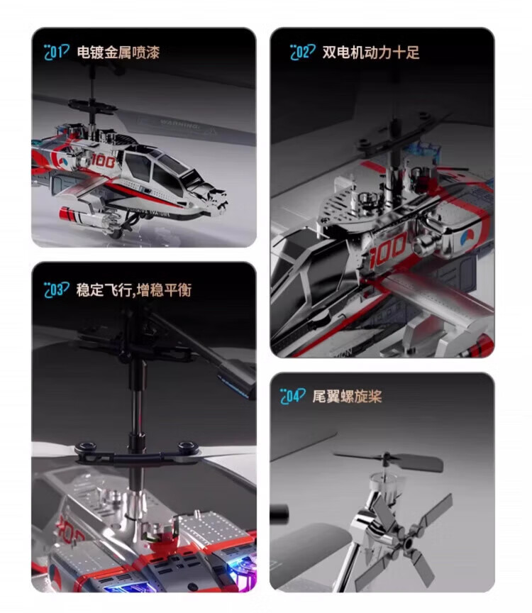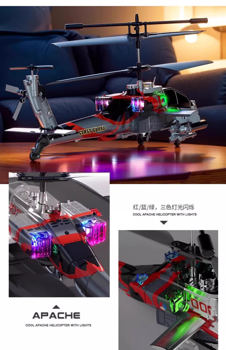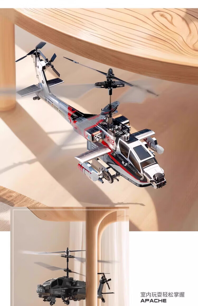 MDNG阿帕奇武装直升飞机遥控定高充电炫酷灯光悬停孩子礼物生日玩具 武装直升机-闪光银【智能定高 2.4G 一键起飞】 基础款【1组电池+充电线】