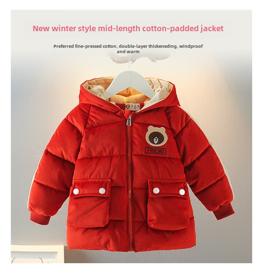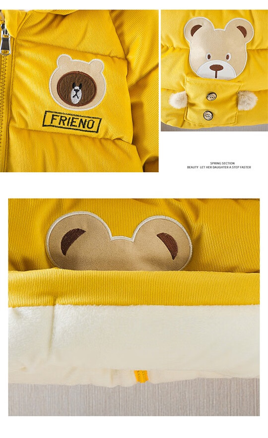 Xiaohongshus beliebtestes Kaufprodukt, mit Baumwolle gefütterter Jungenmantel, extra dicker mit Baumwolle gefütterter Mädchenmantel, Baby-Wintermantel, verdicktes und gelbes Baby-Samtfutter, Größe 3 cm, Samtfutter, doppelte Schicht für Wärme 90