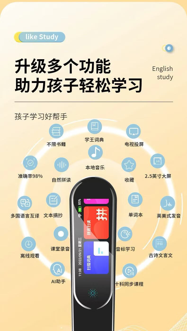 贝铂智能点读笔中英日韩离线扫描翻译投屏词典笔扫读笔学习机笔 黑色旗舰版