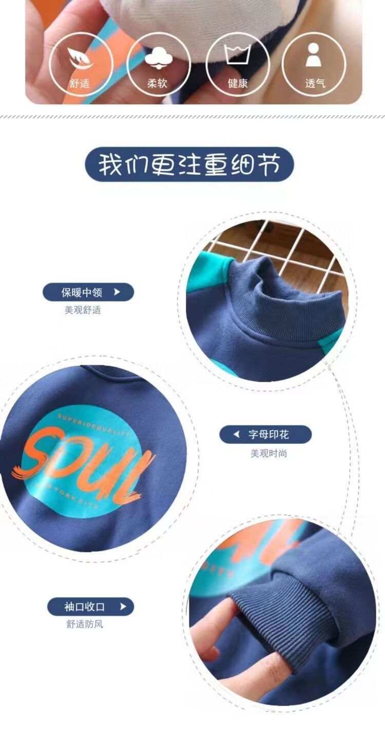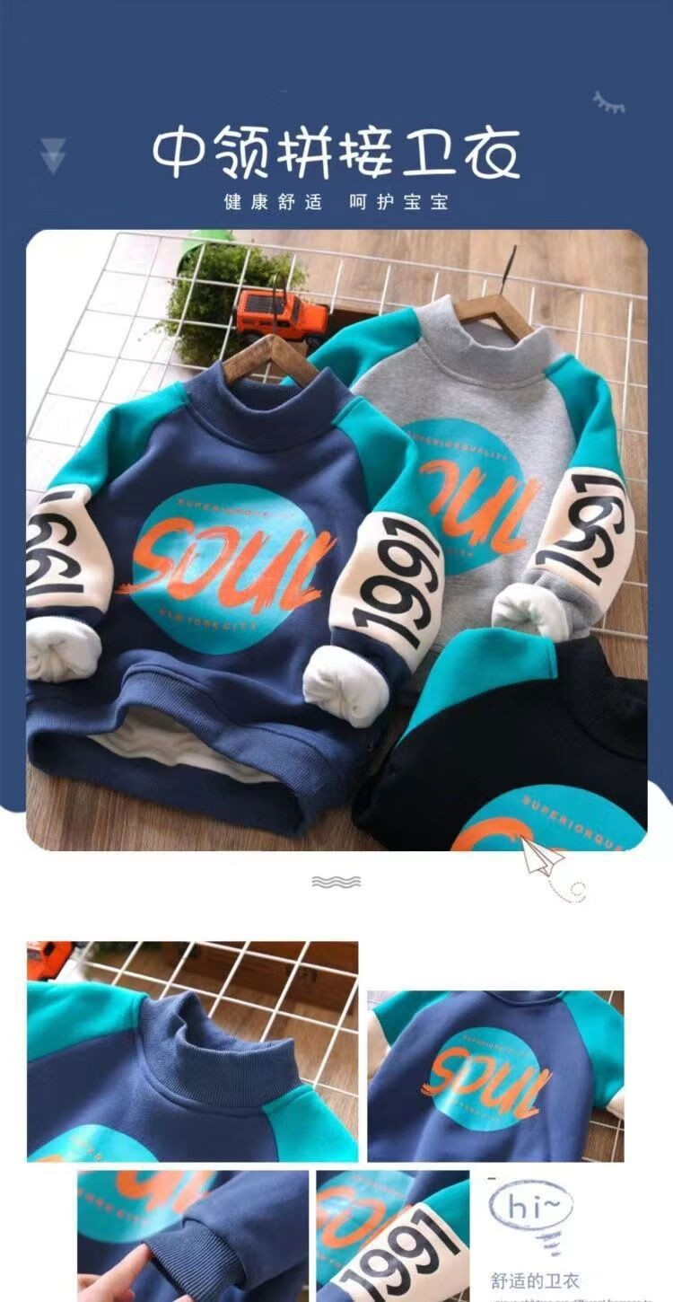 男童加绒卫衣冬季半高领2025新款韩版中大童加厚上衣儿童装打底衫 黑色卫衣加绒款 110 110cm
