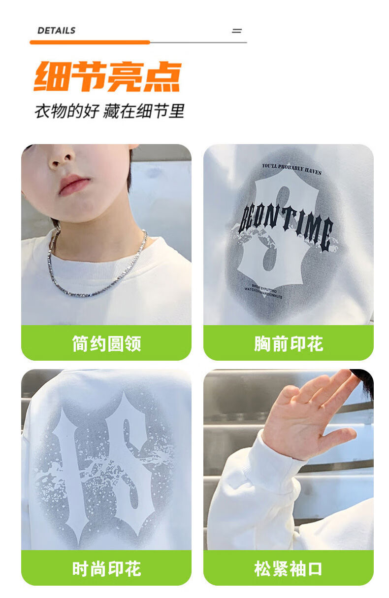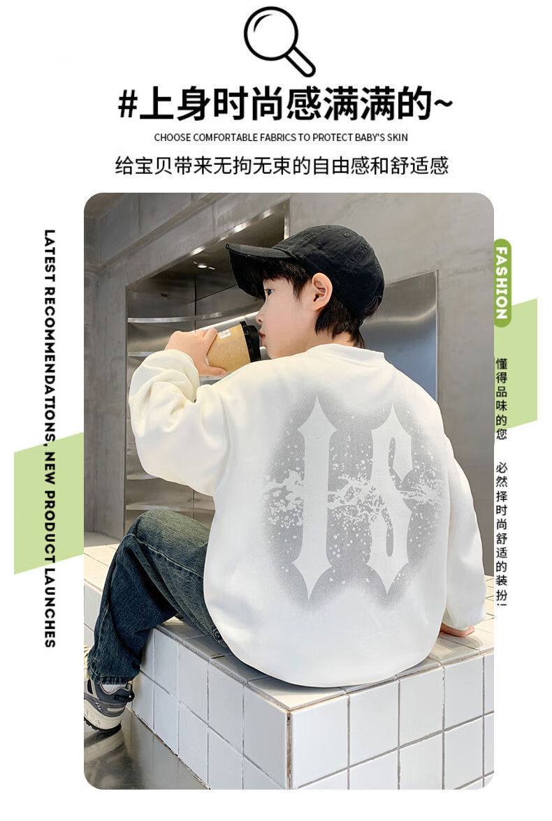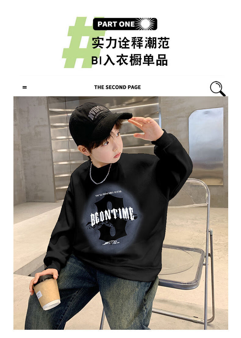 男童卫衣春装2025新款洋气中大童春秋季休闲运动打底衫长袖上衣潮 黑色 120 120cm
