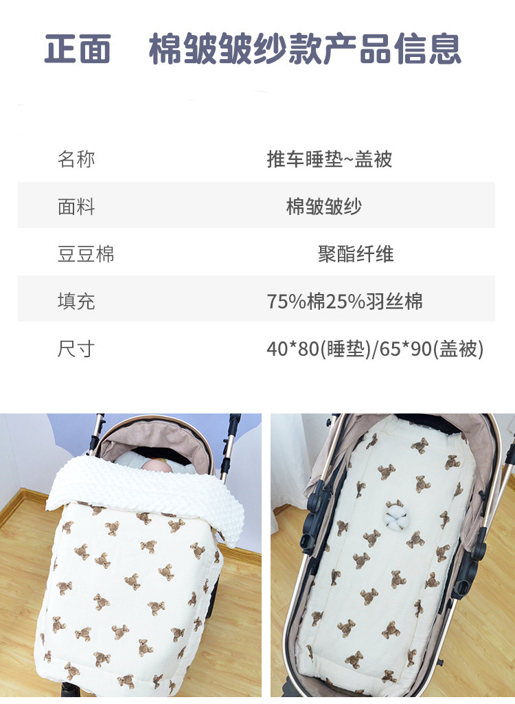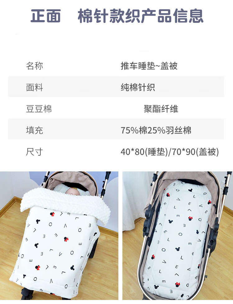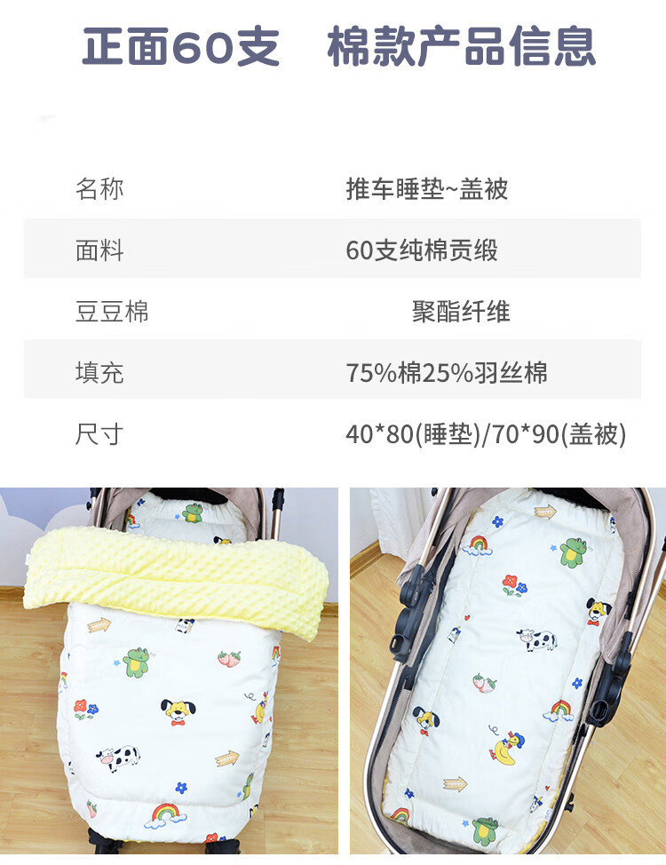 山头林村推车坐垫秋冬婴儿车垫子小褥子豆豆绒被子摇篮睡篮内垫棉垫尿布台 小牛小鸭3D安抚豆豆睡垫