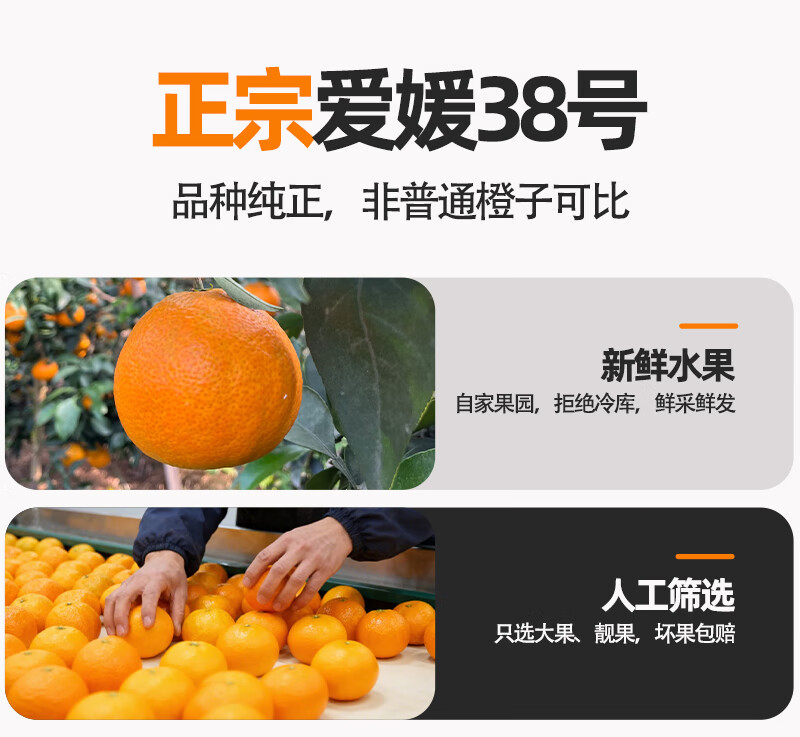 今鲜果四川爱媛38号果冻橙新鲜水果应季现摘柑橘子手剥橙孕妇水果 统货直发(普通快递) 爱媛果冻橙净重8斤直装/单果65mm+