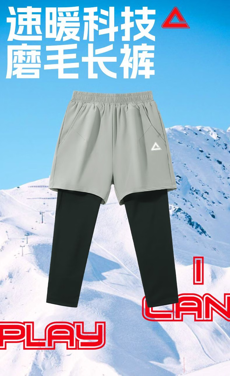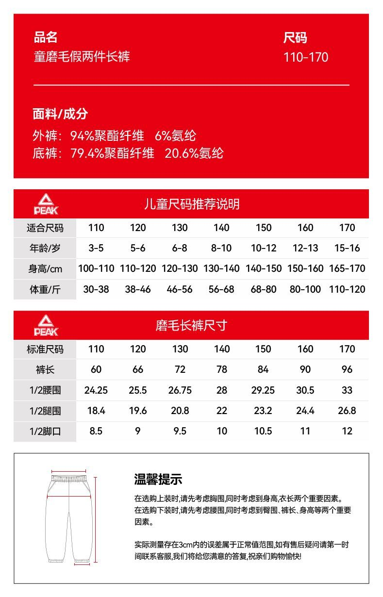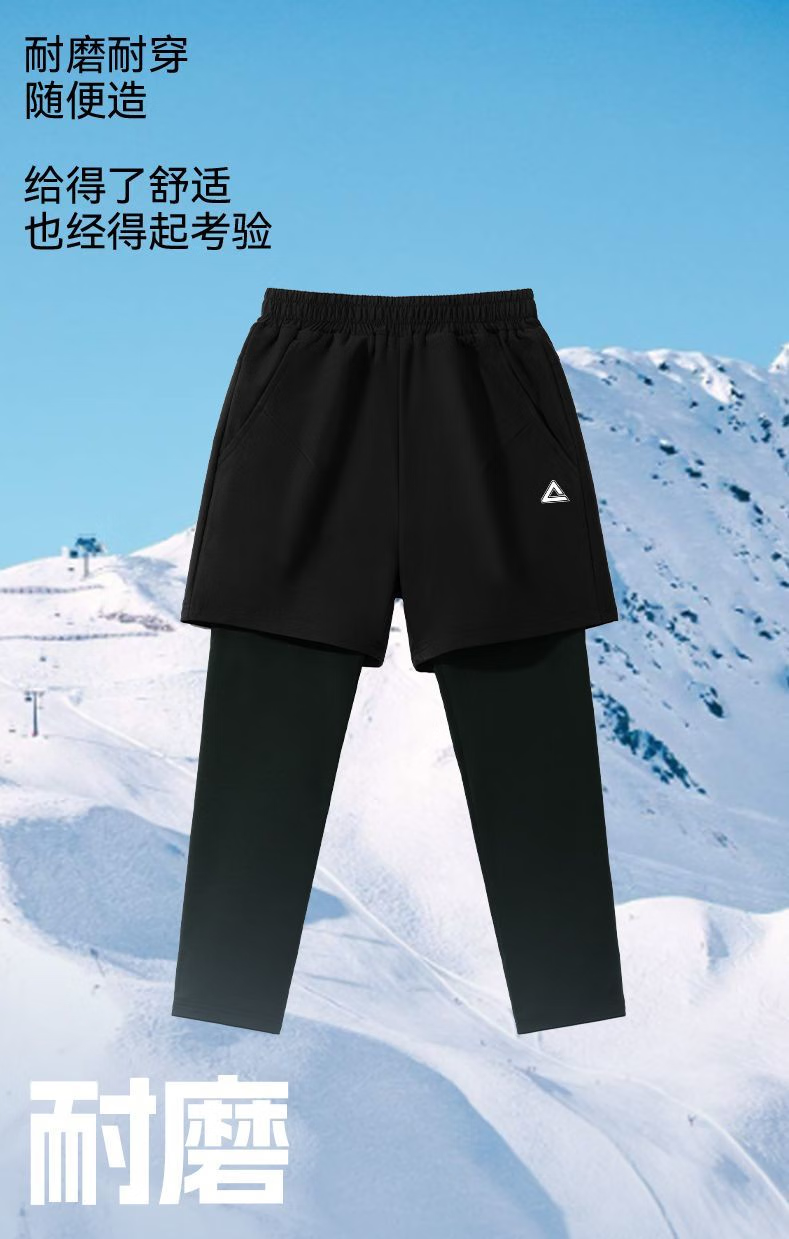 匹克童装儿童裤子秋冬款2025新款男童假两件长裤冬季运动裤女童保暖裤 【运动假两件长裤】黑 110