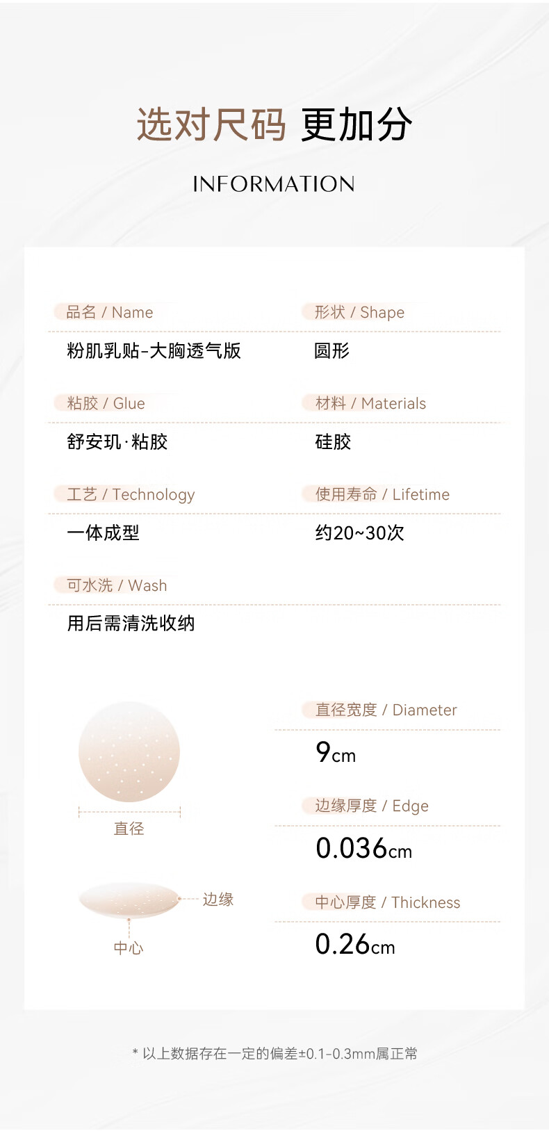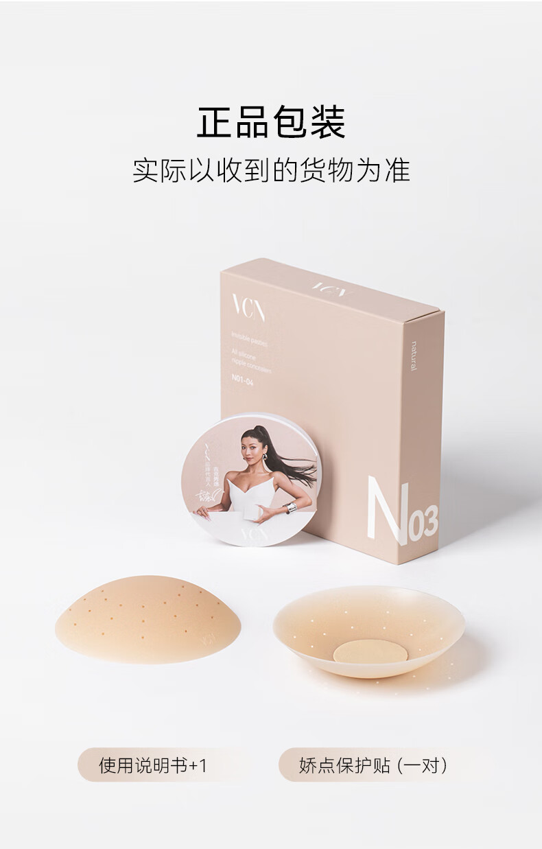vcn透气大胸乳贴女硅胶胸贴防凸可重复使用免穿内衣乳头贴无痕 01#瓷白肤Cream 单对装