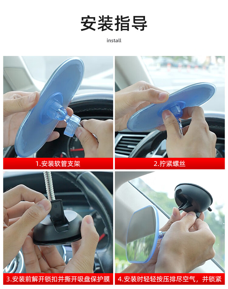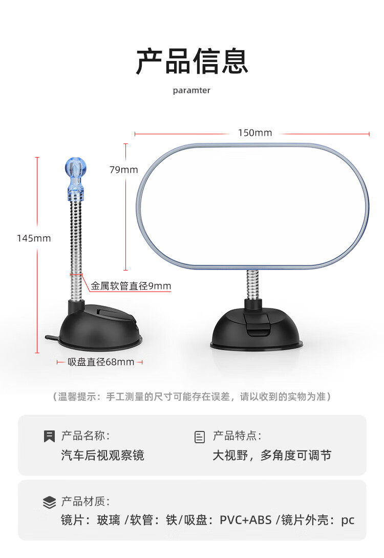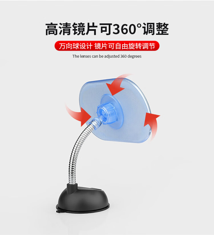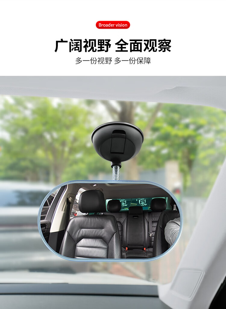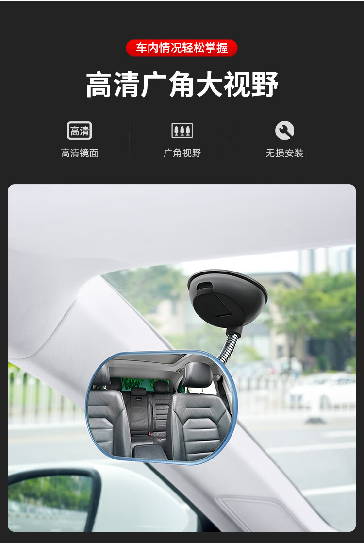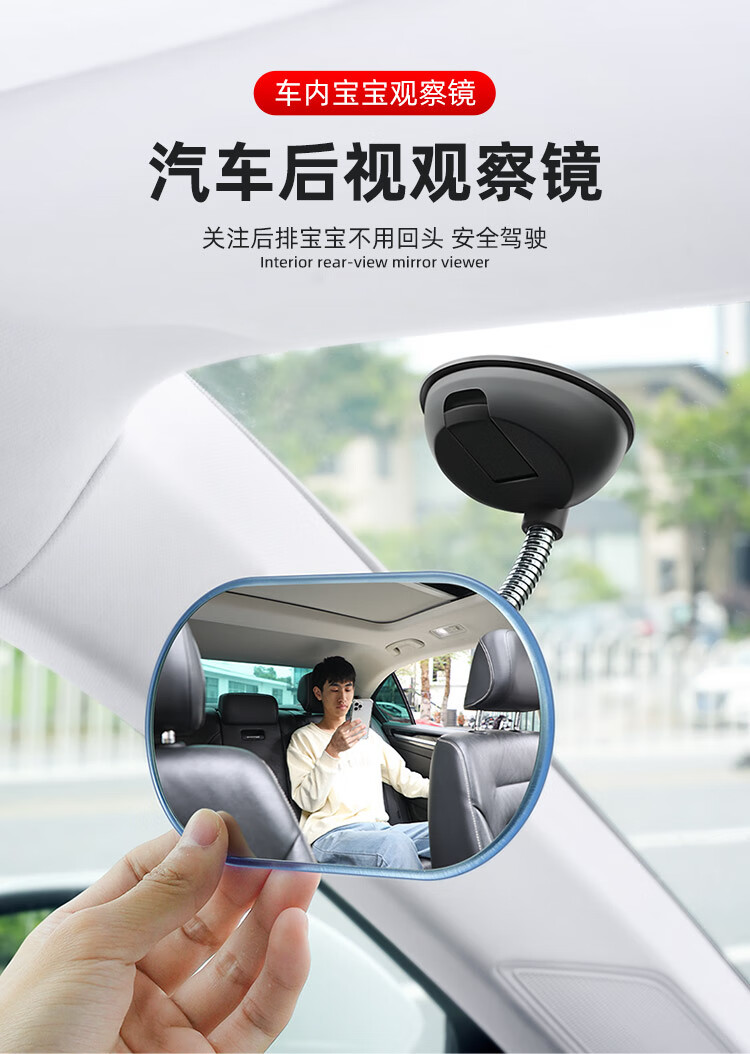 A set of suction cup type car interior rearview mirror, large field of view, curved surface reflective reversing mirror, rear baby observation mirror auxiliary, suction cup type metal hose bracket, oval shape 1 piece