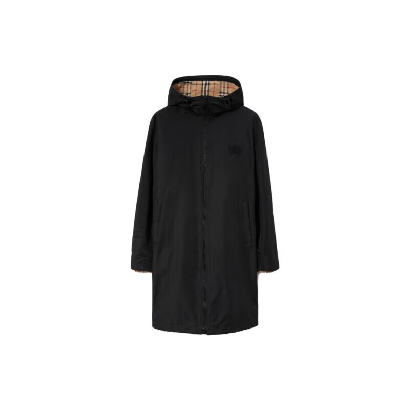 博柏利(BURBERRY)FW23CH纯色连帽拉链长袖中长款风衣男款黑色 黑色 L 原装礼盒