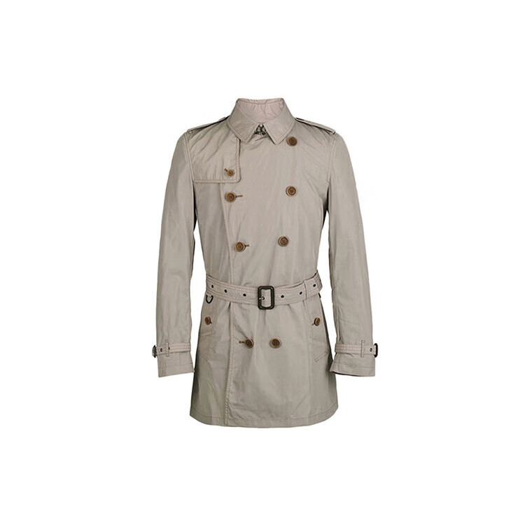 博柏利(BURBERRY)纯色双排扣翻领长袖中长款风衣男款 浅棕色 2XL