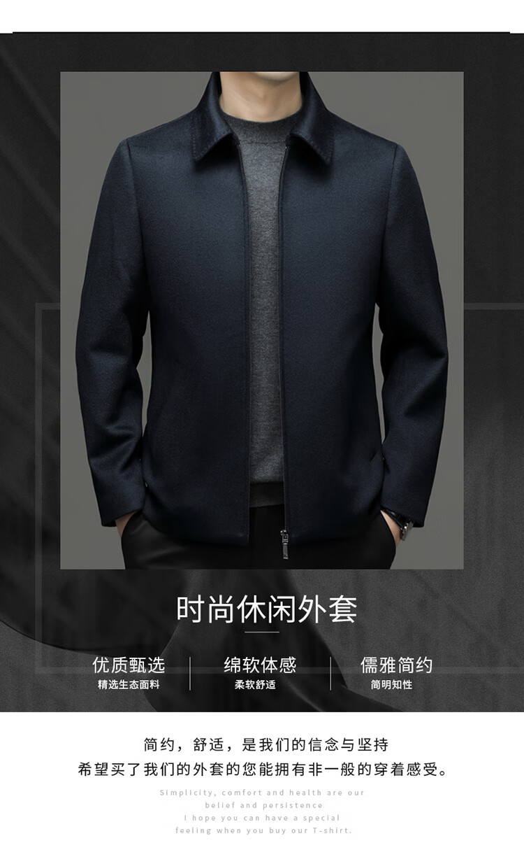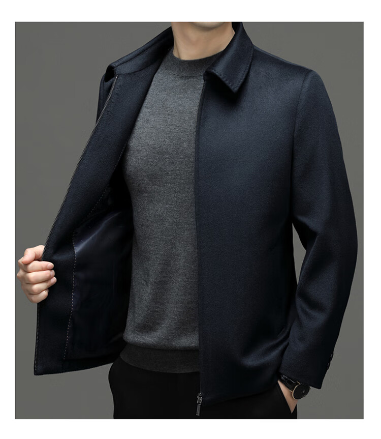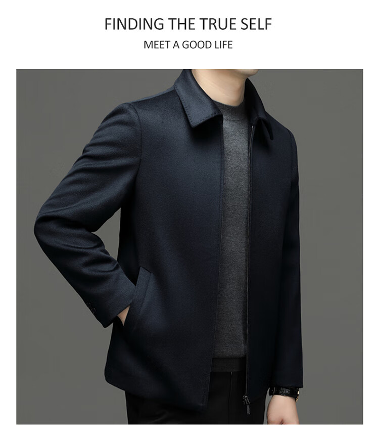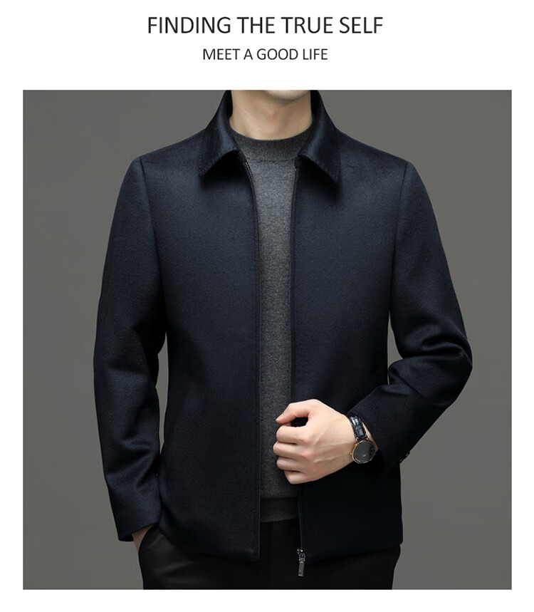Manteau en laine de luxe léger de marque haut de gamme internationale de Milan pour hommes 25 hiver manteau de laine de soie de mûrier mi-long d'affaires d'âge moyen Astaxanthine 8901 Zipper XL 180140-160Jin Jin équivaut à 0,5 kg