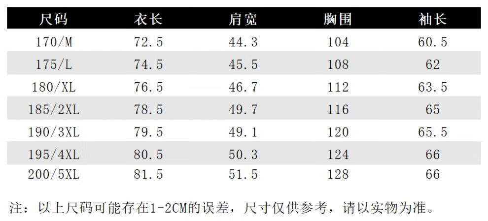 China (cm) 165 / 88-90 170 / 96-98 175 / 108-110 180 / 118-122 185 / 126-130