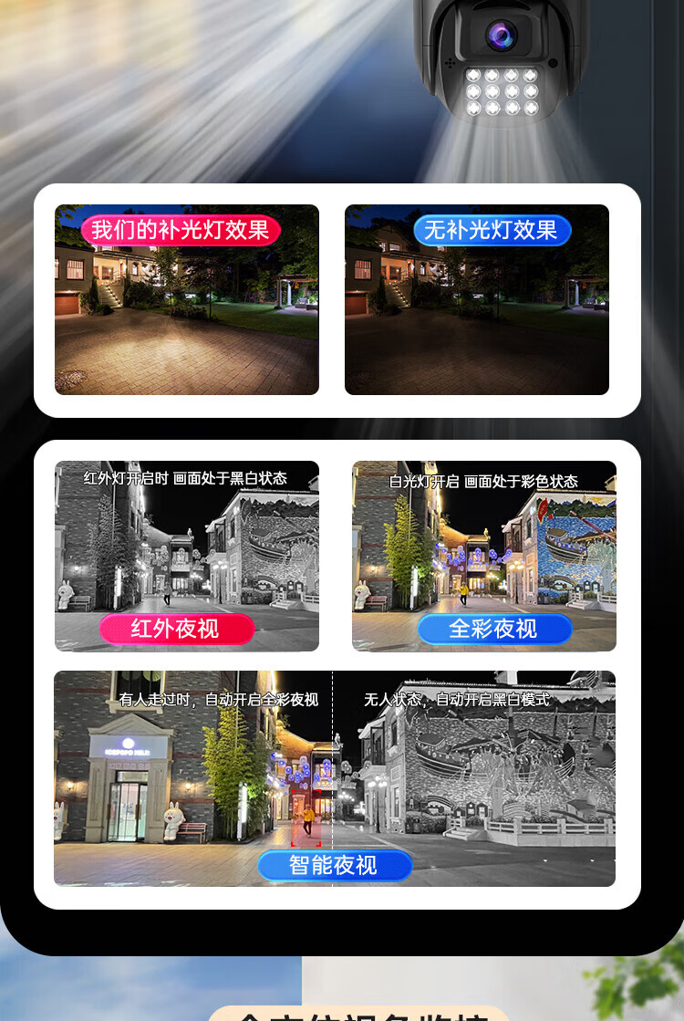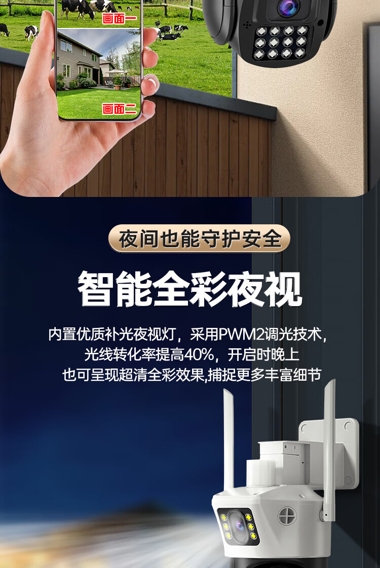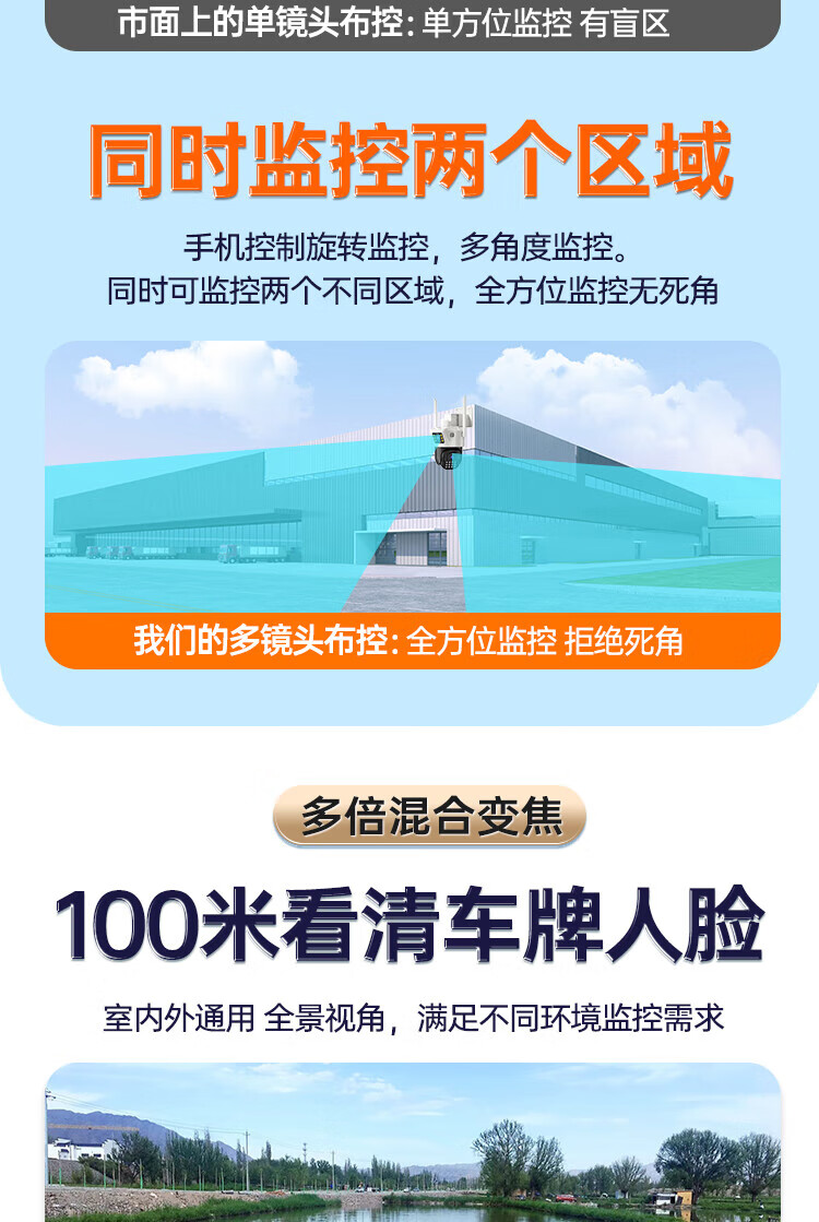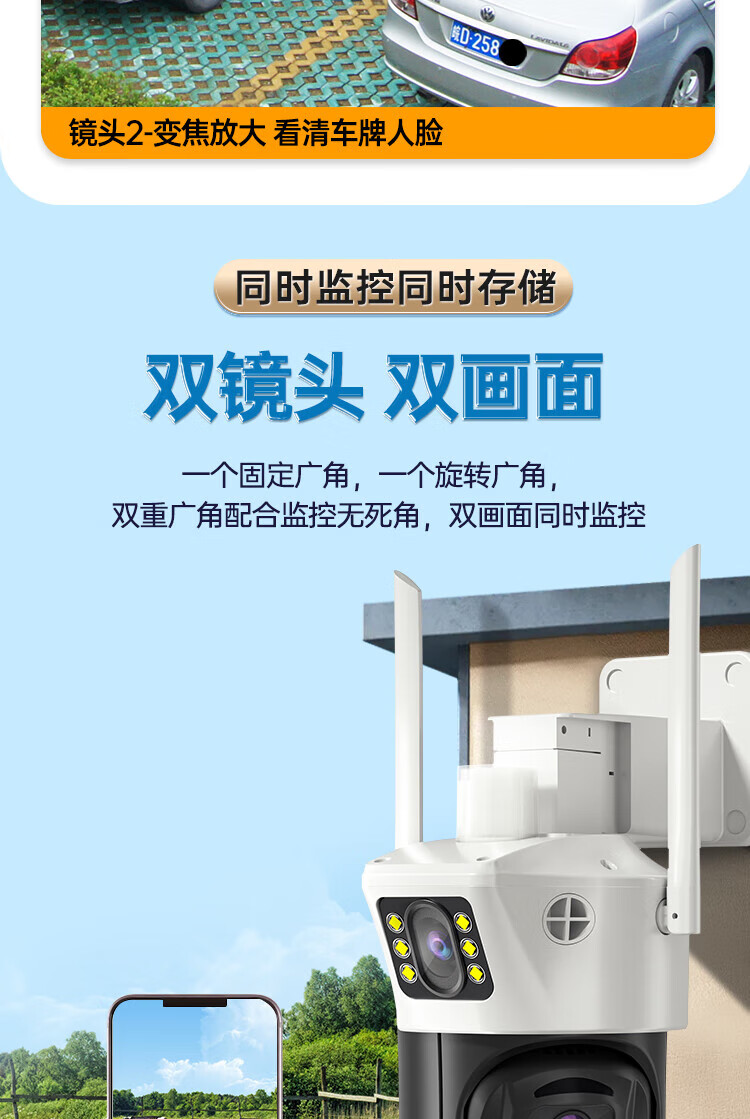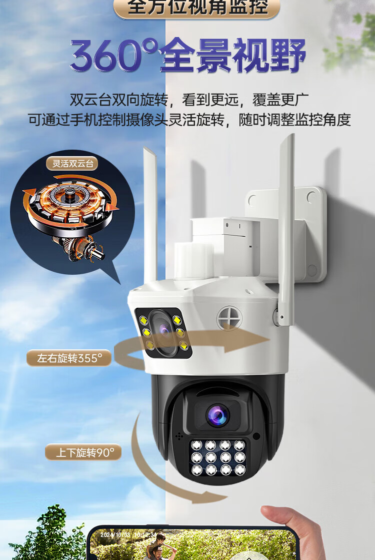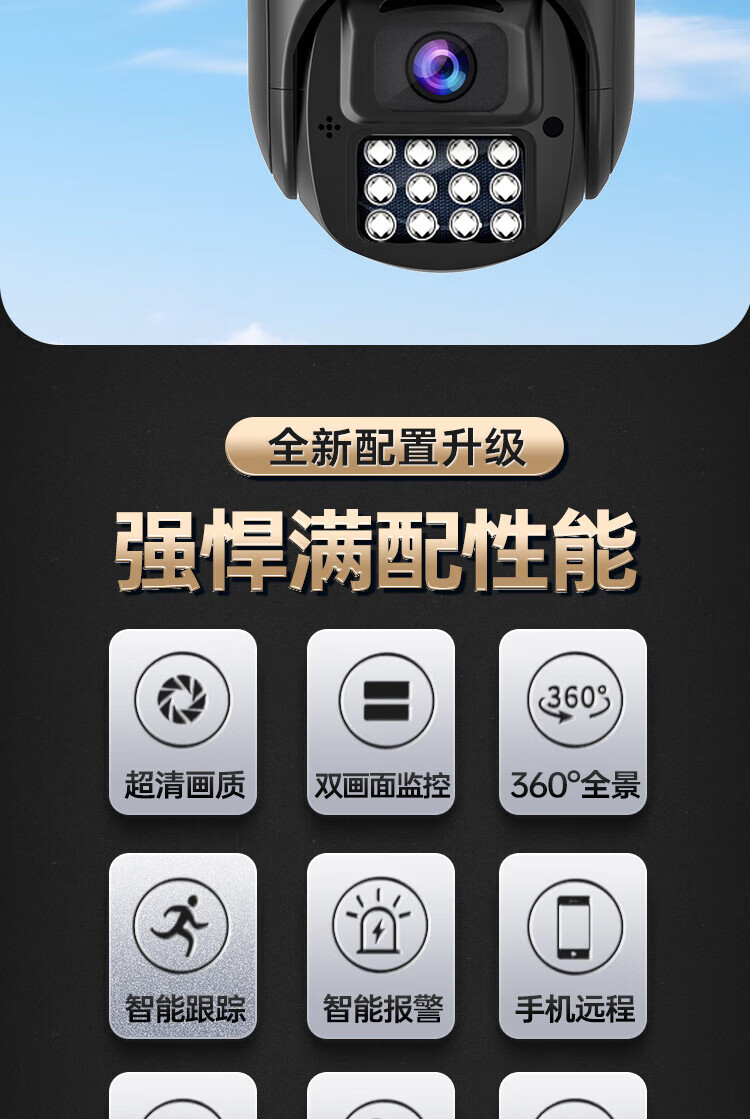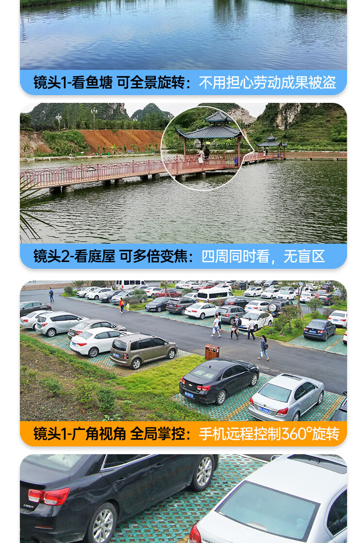 Sorit surveillance camera for home outdoor 360-degree no blind spots with night vision panoramic view life-long flow-free rural outdoor no wifi mobile phone remote no network required high-definition waterproof WiFi single screen + 4K ultra-clear + wide angle 15-day loop video card