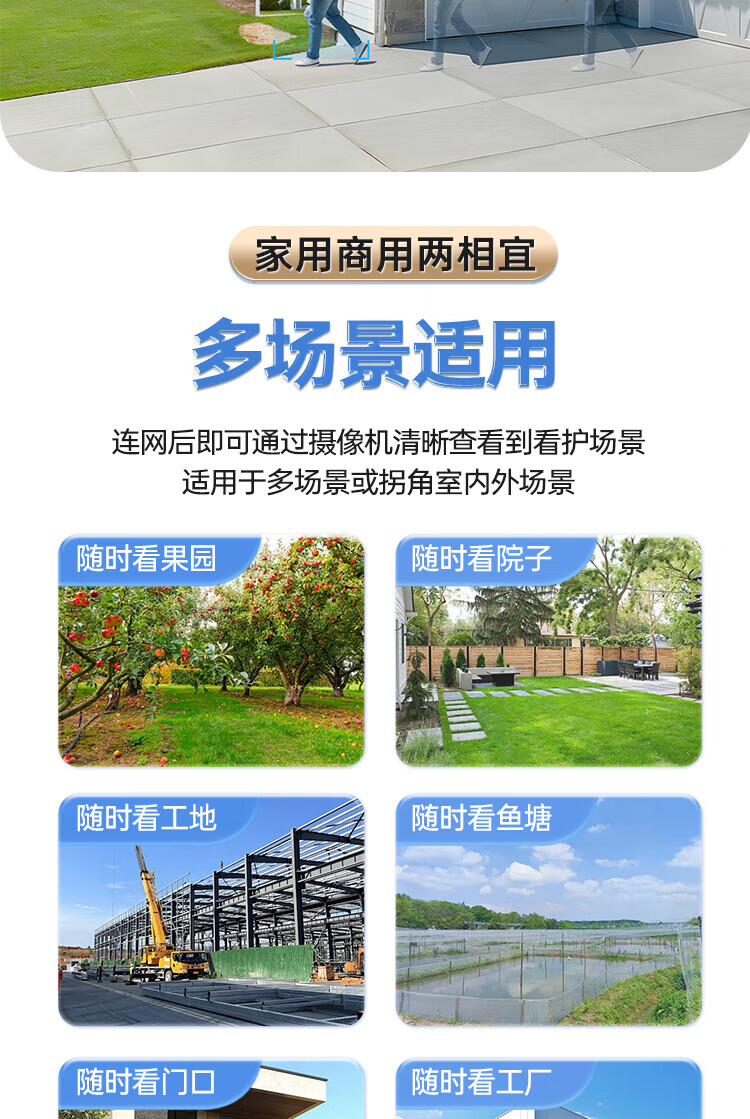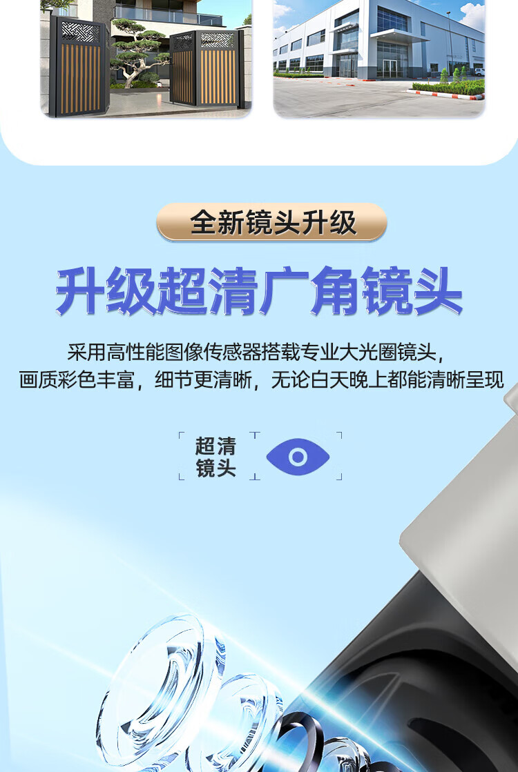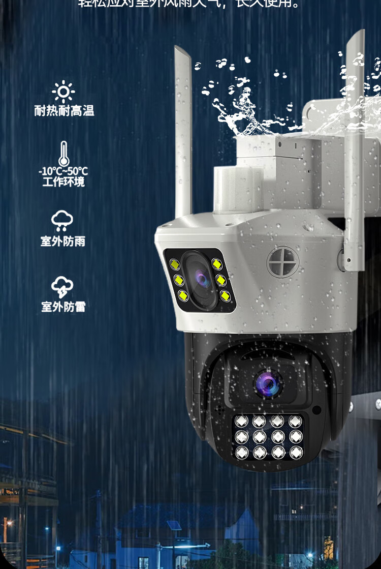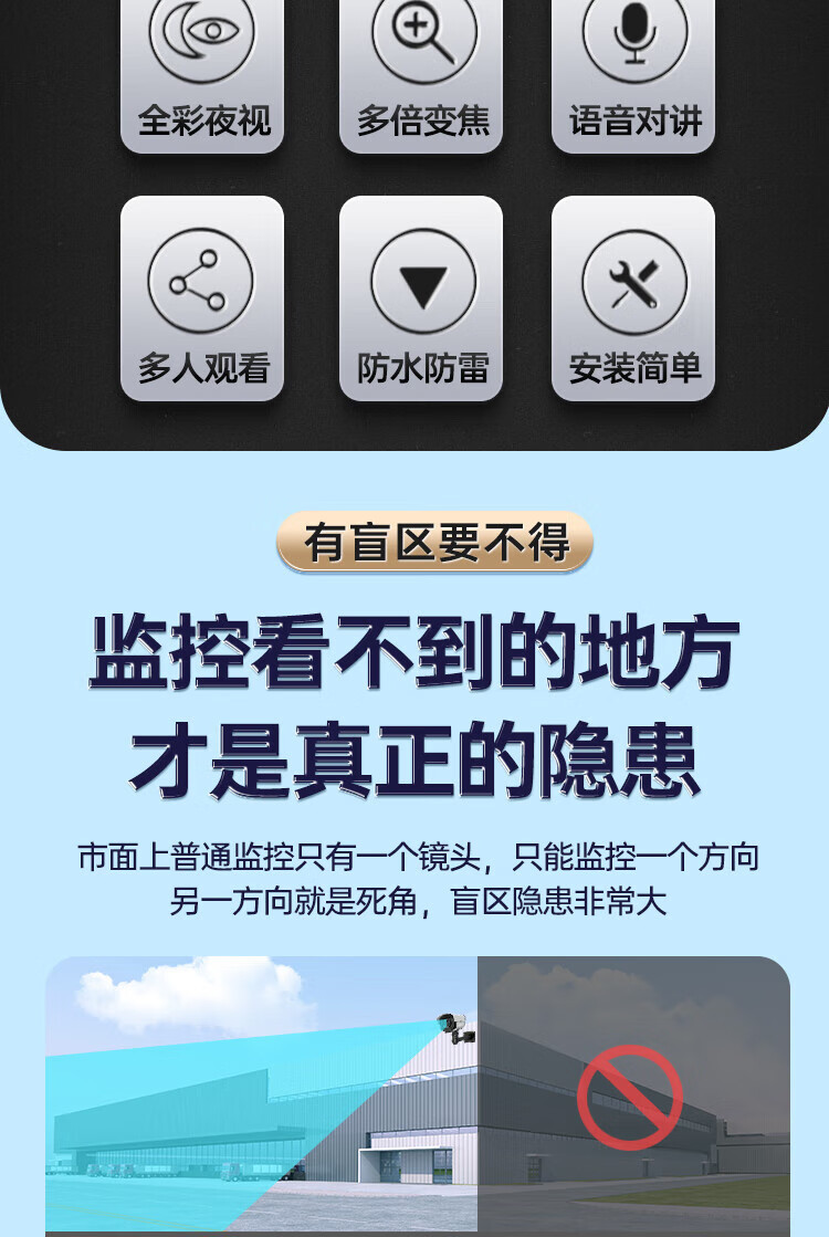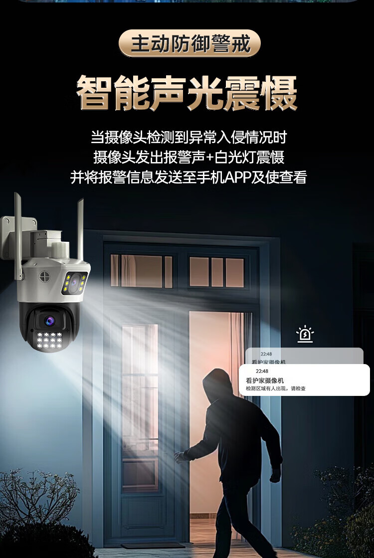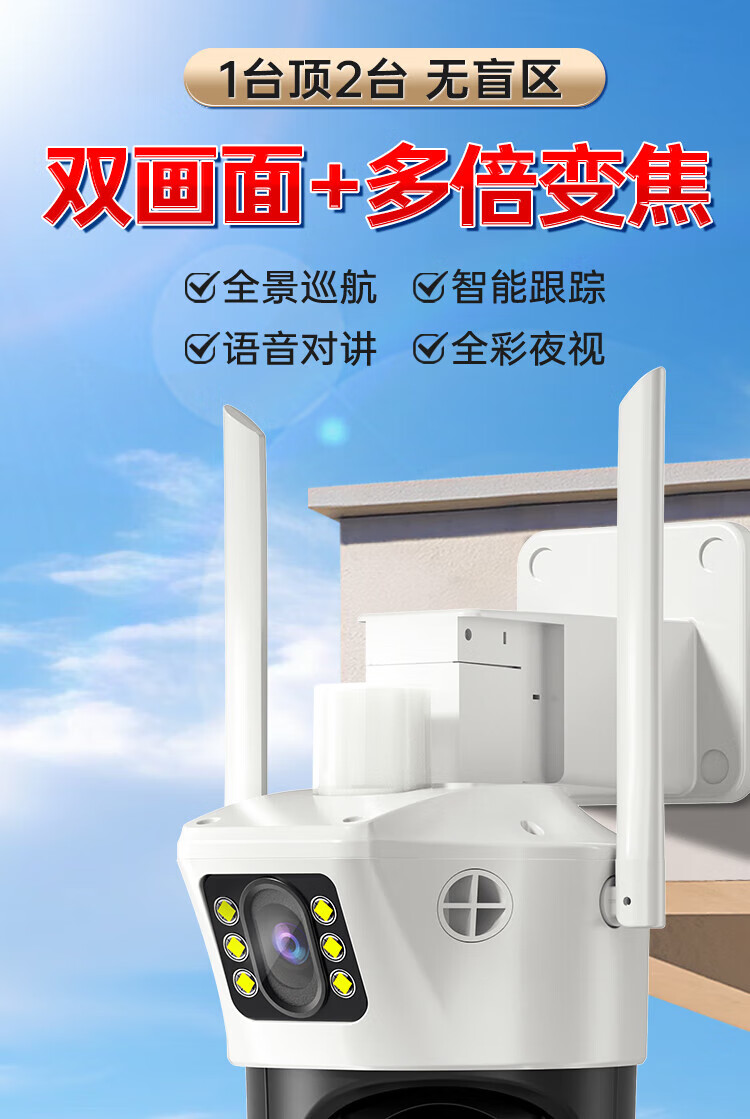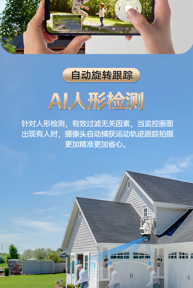 Sorit surveillance camera for home outdoor 360-degree no blind spots with night vision panoramic view life-long flow-free rural outdoor no wifi mobile phone remote no network required high-definition waterproof WiFi single screen + 4K ultra-clear + wide angle 15-day loop video card