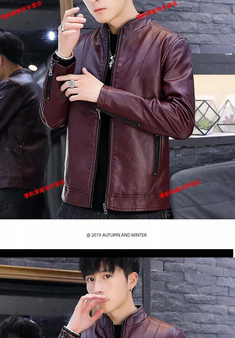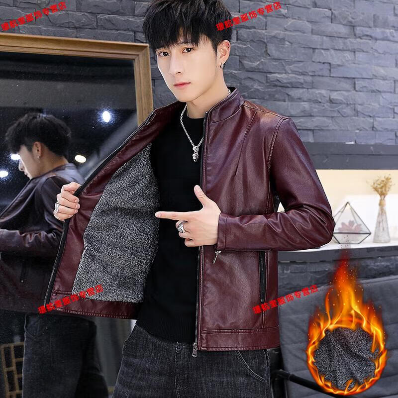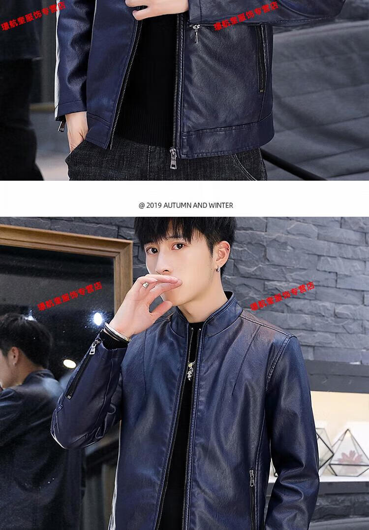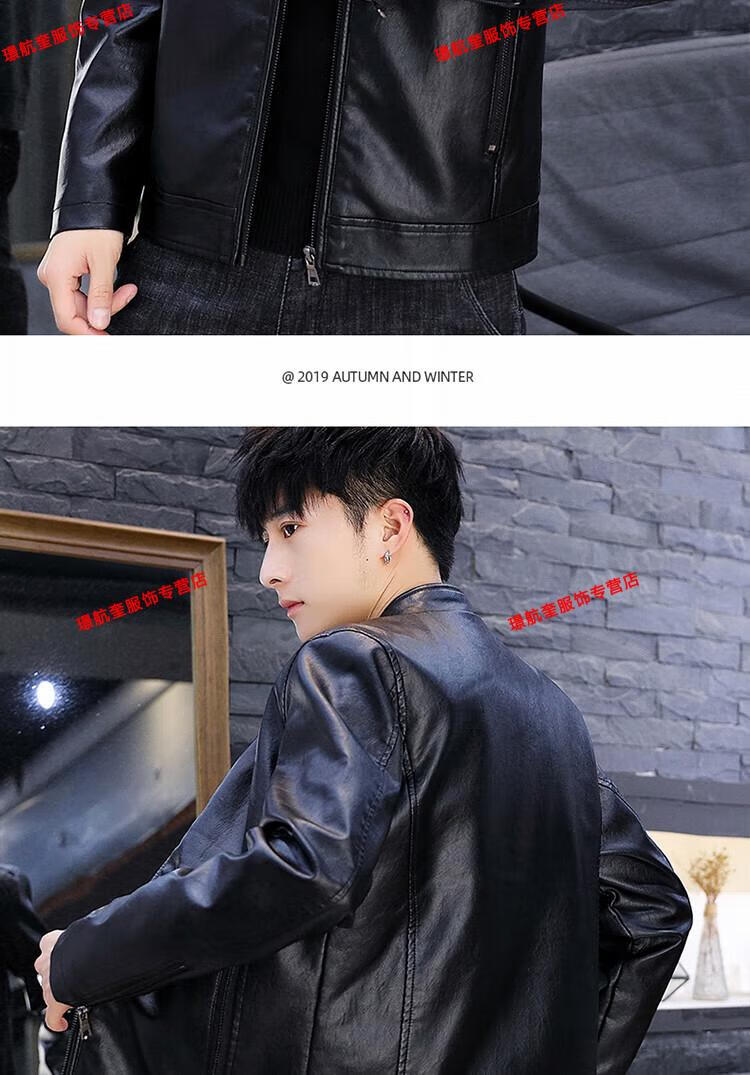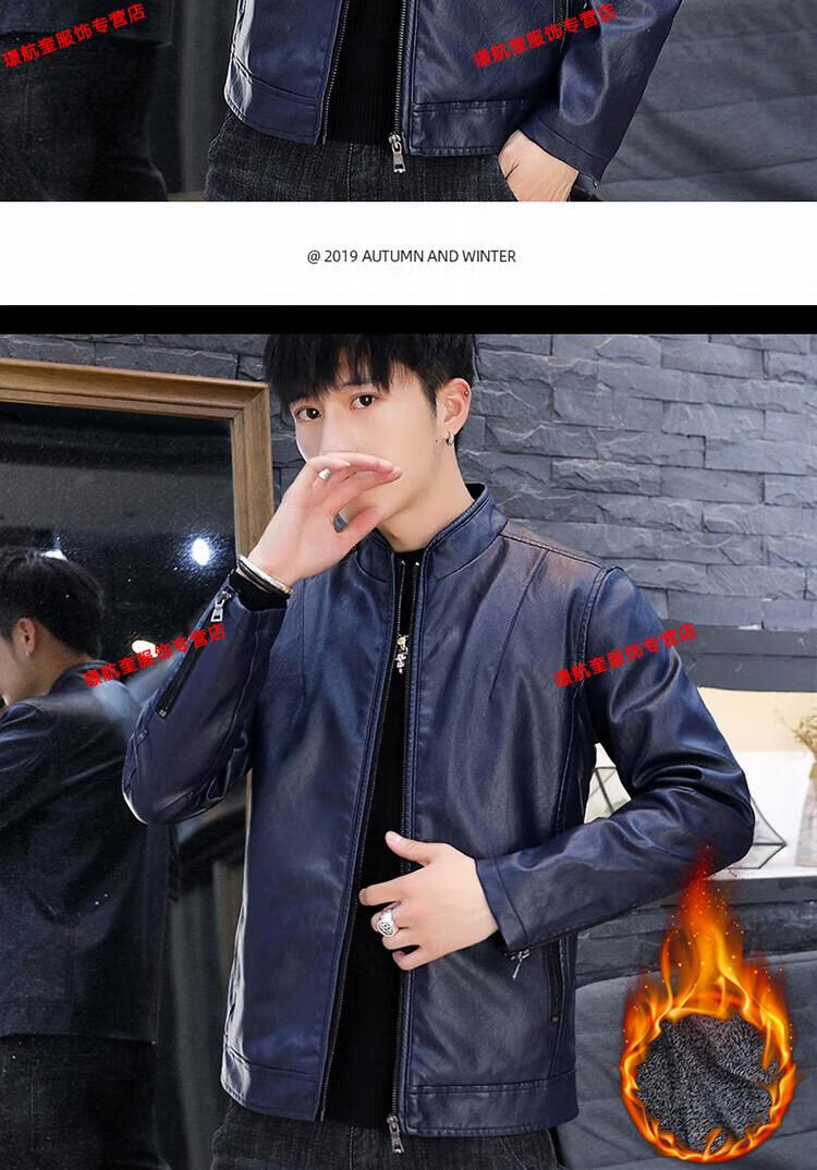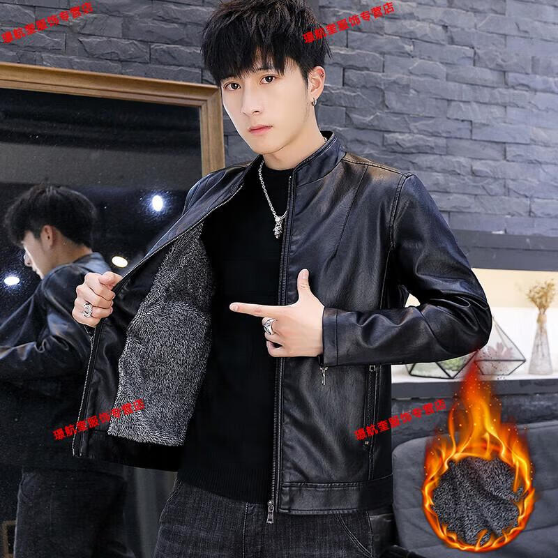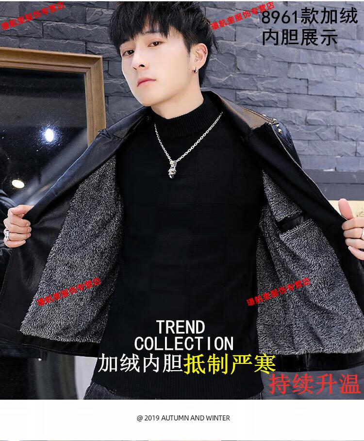 Playboy brand Haining leather jacket men's slim Korean version autumn and winter velvet thickened motorcycle quality soft leather jacket youth jacket trend A8961 black velvet L 105-120Jin Jin equals 0.5 kg