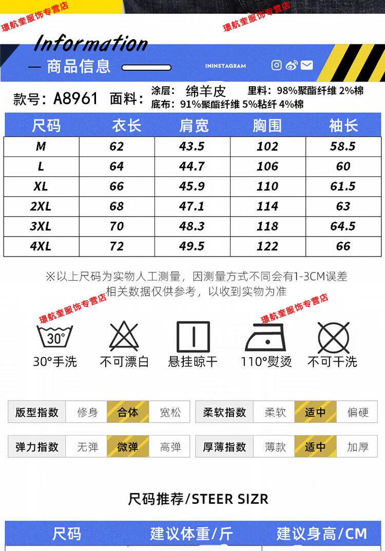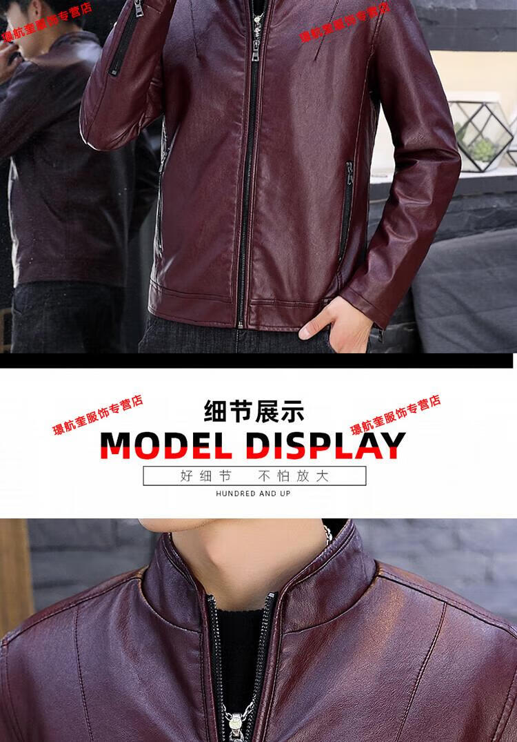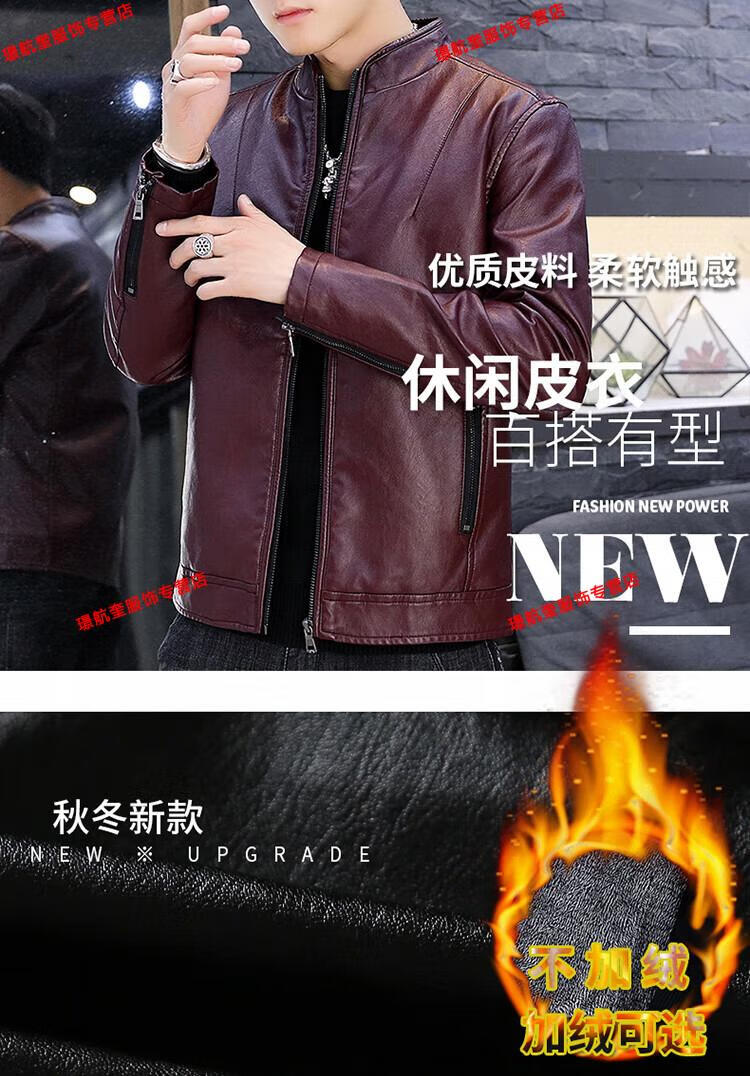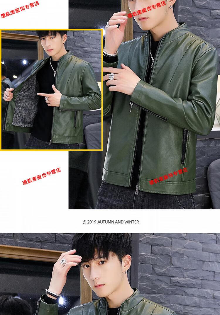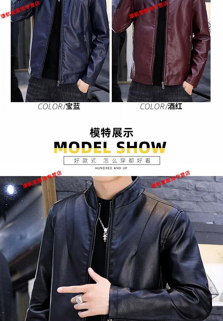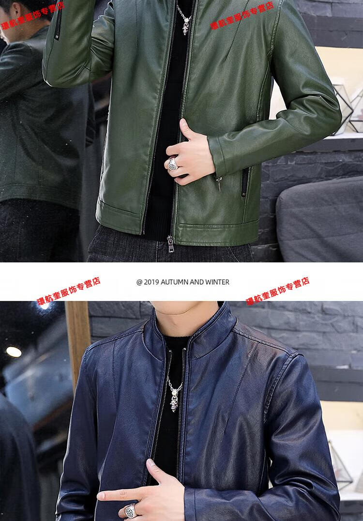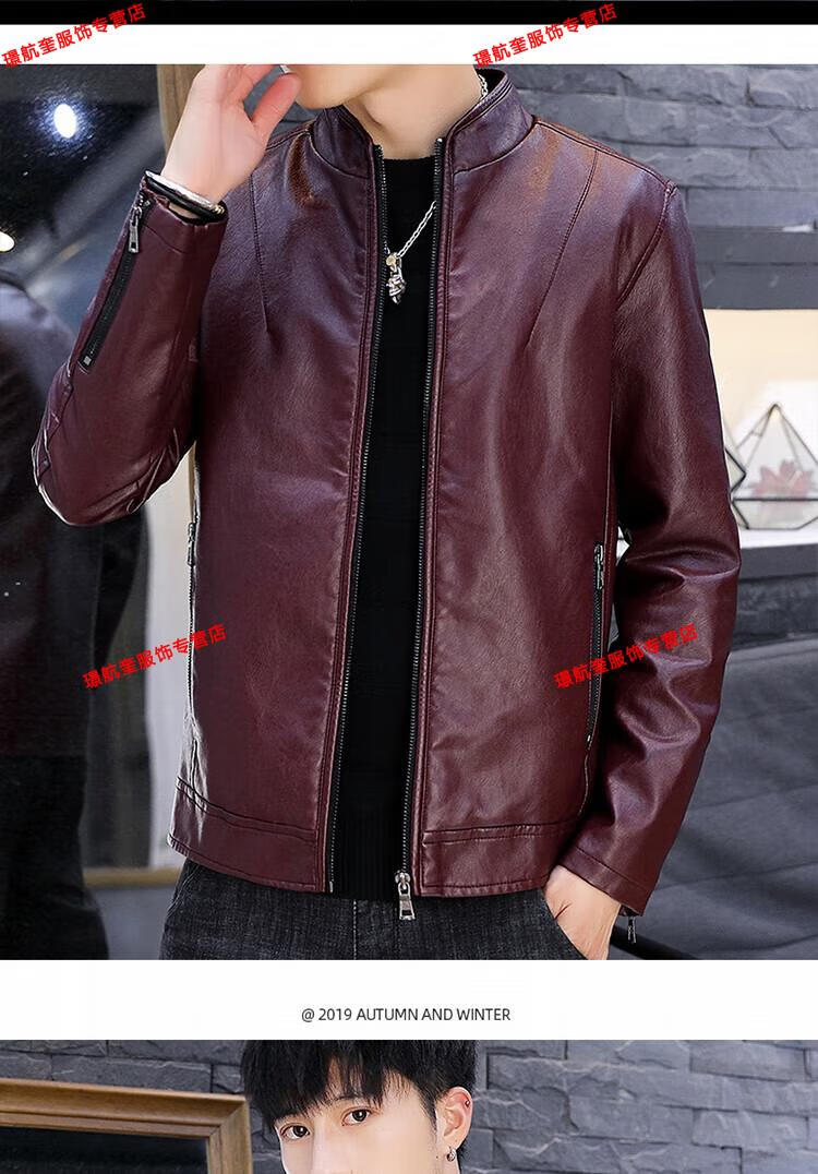 Playboy brand Haining leather jacket men's slim Korean version autumn and winter velvet thickened motorcycle quality soft leather jacket youth jacket trend A8961 black velvet L 105-120Jin Jin equals 0.5 kg