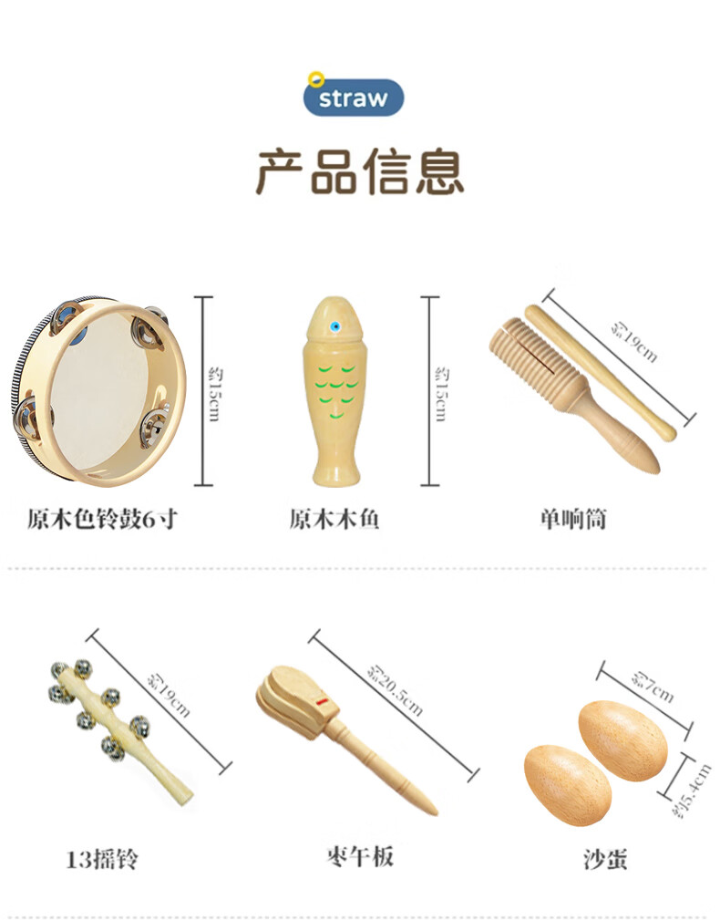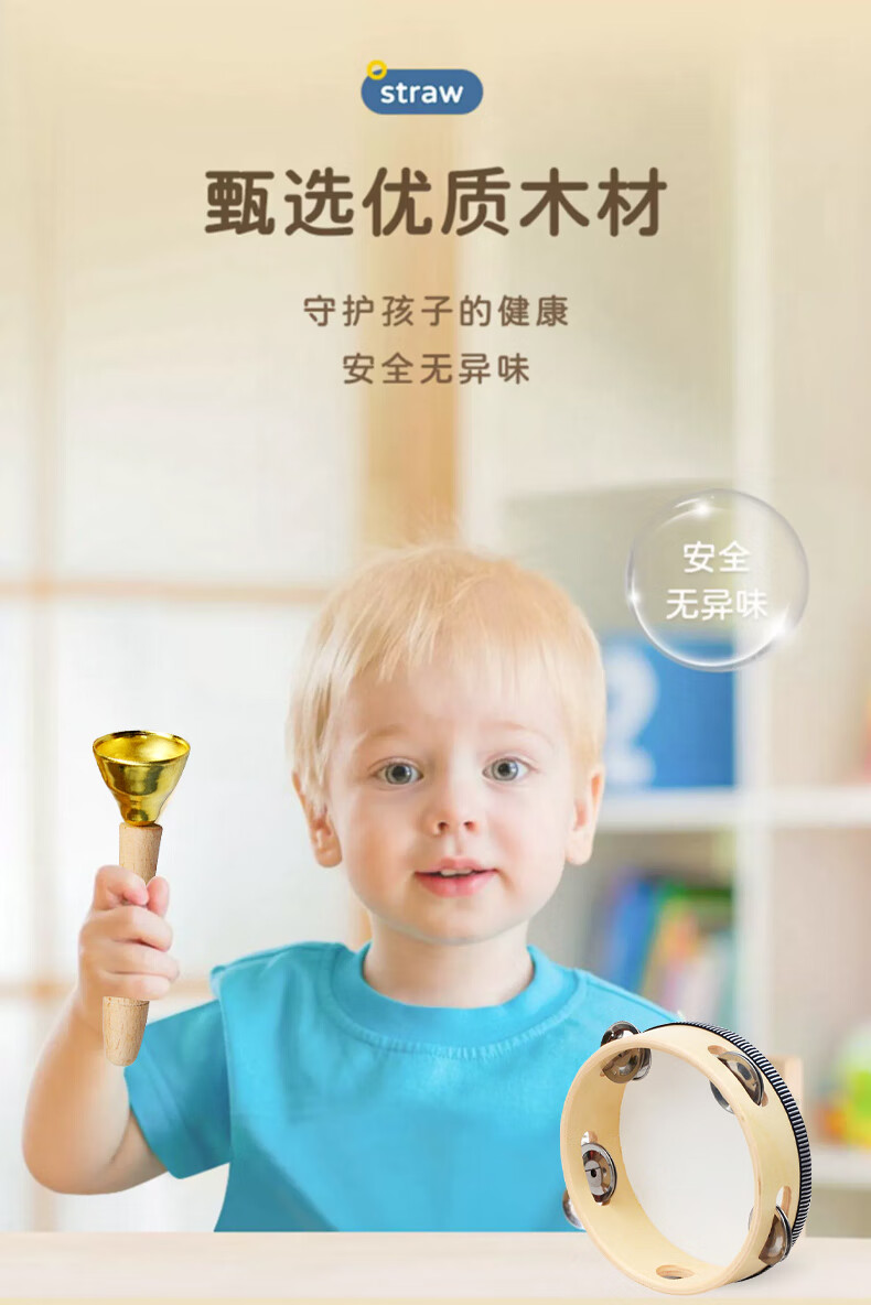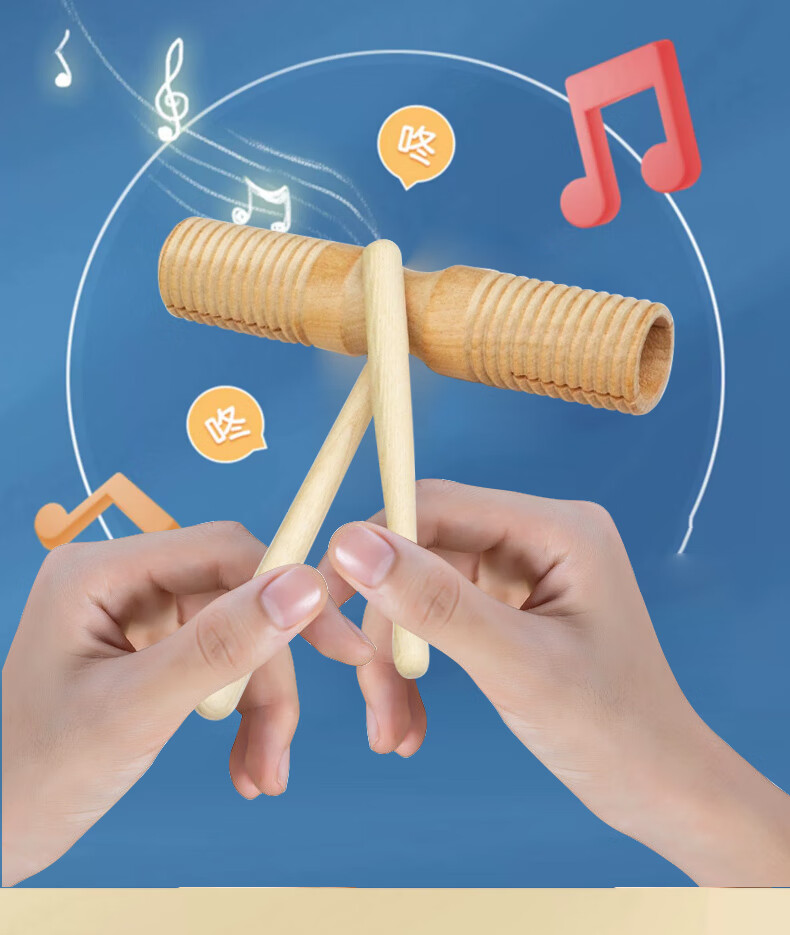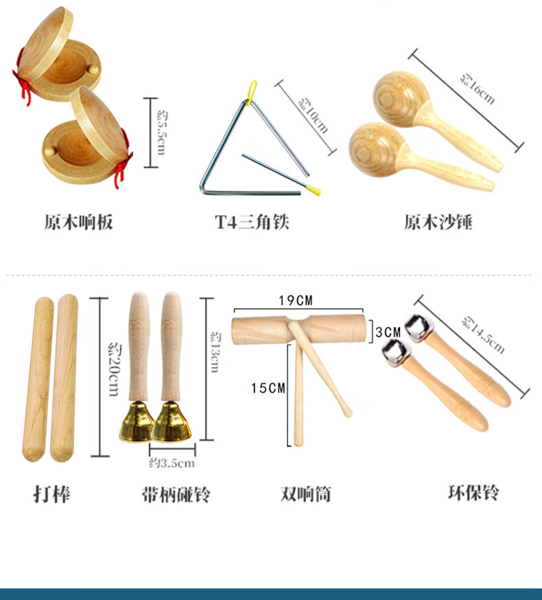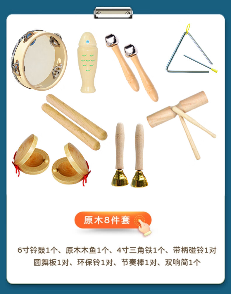 网童奇贝幼儿园奥尔夫打击乐器原木套装音乐教具响板沙锤铃鼓三角铁双响筒 原木响板1个