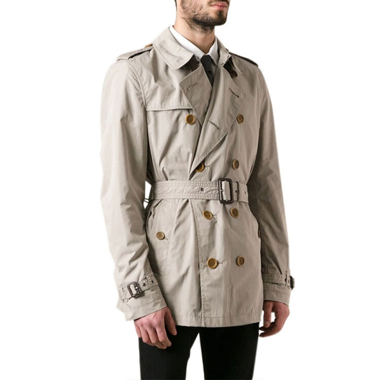 博柏利(BURBERRY)新年礼物Burbrry纯色双排扣翻领腰带风衣男款卡其色 卡其色男女同款 均码 48