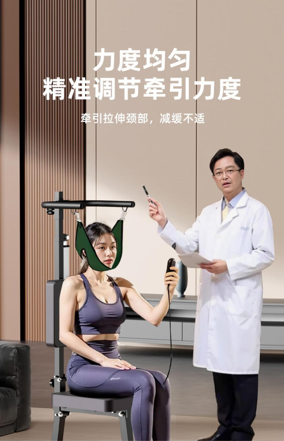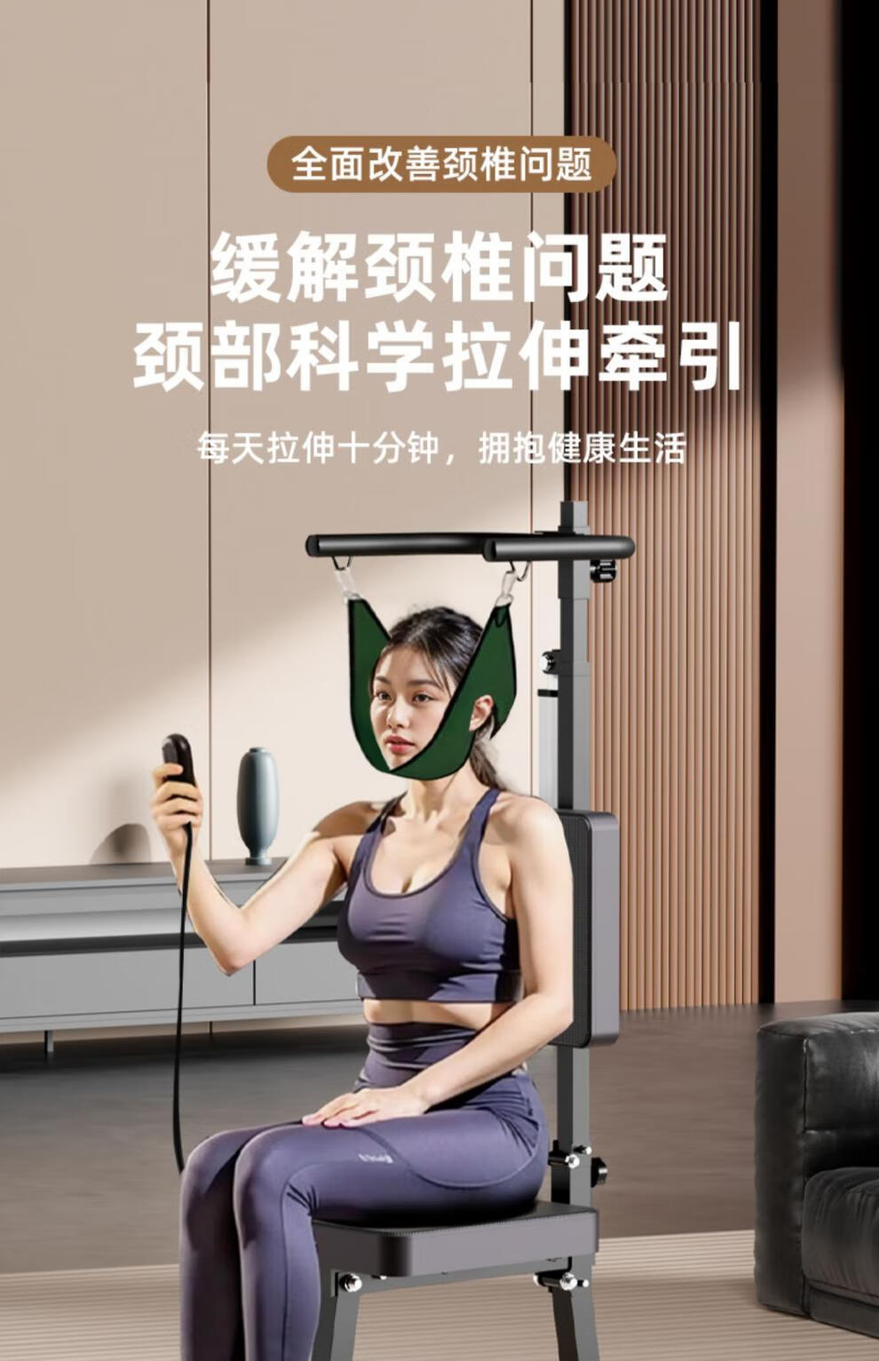 电动颈椎牵引椅脊椎医家用锻炼护颈部吊脖子腰椎抗阻拉伸神器 二合一升款黑红电动颈椎牵引椅【电动调节/可练倒立】