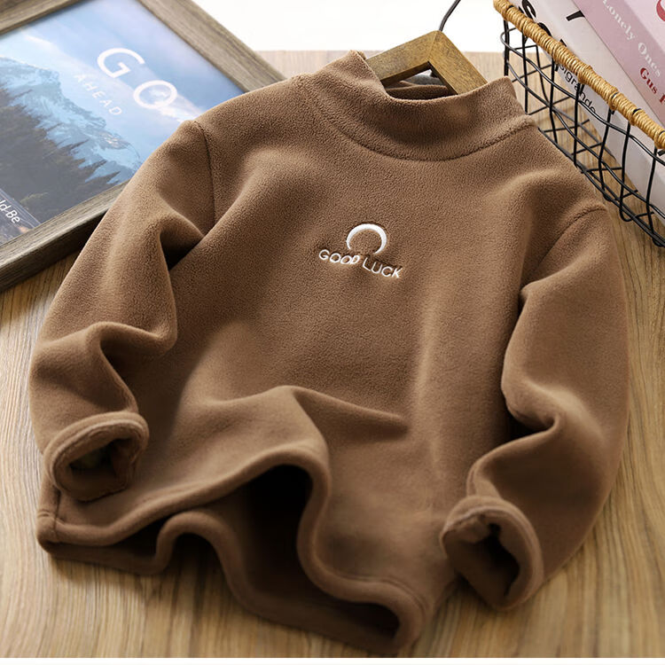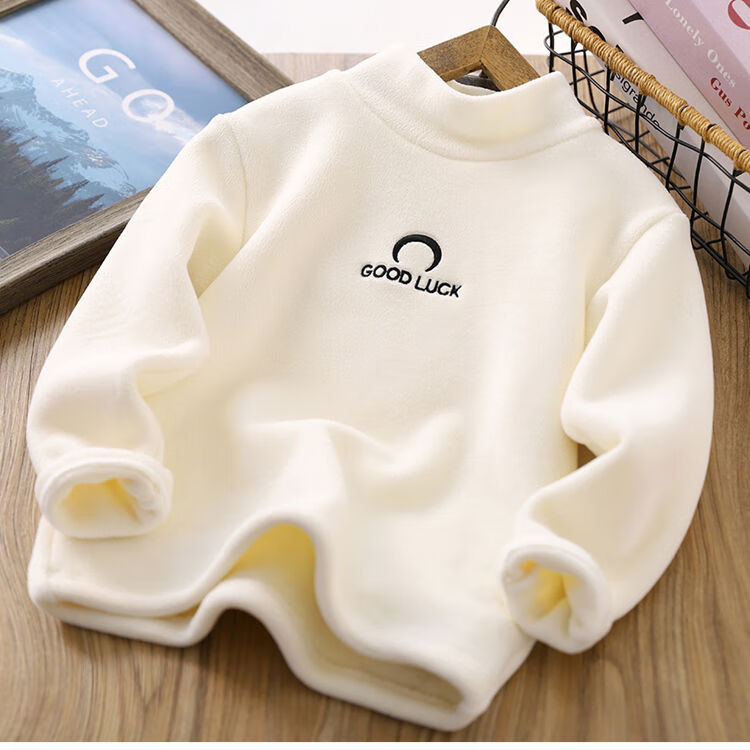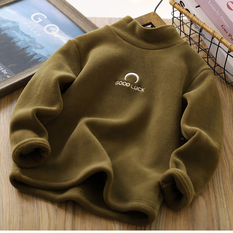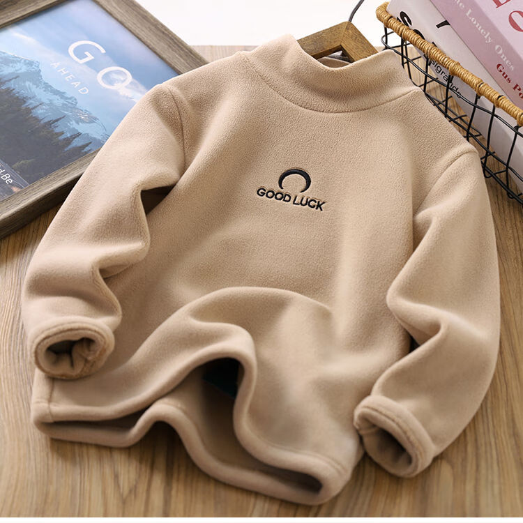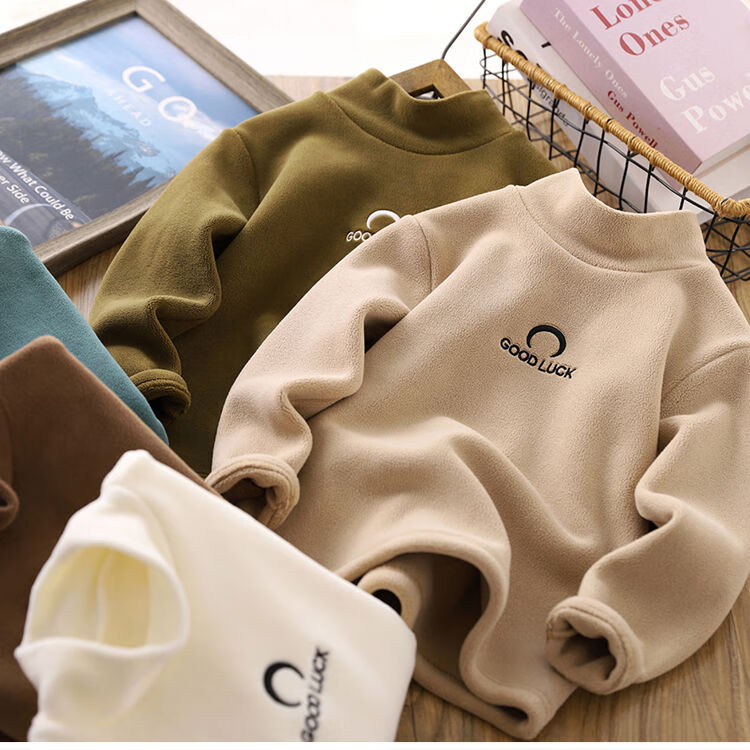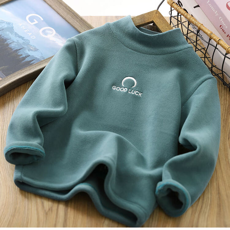 男童半高领双面绒打底衫秋冬2025新款儿童奥粒绒加厚保暖长袖T恤 蓝色 110 110cm
